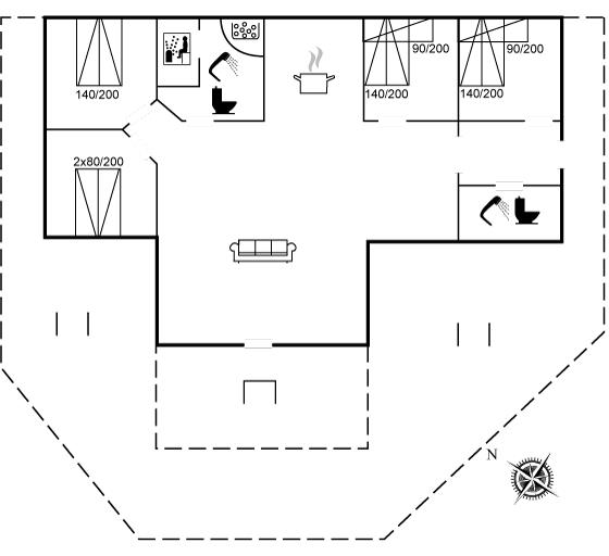 Der er i alt 4 soveværelser. Sovepladserne fordeler sig på: 8 sovepladser i dobbeltsenge. 2 sovepladser i køjeseng. Derudover er der 1 stk. barneseng.