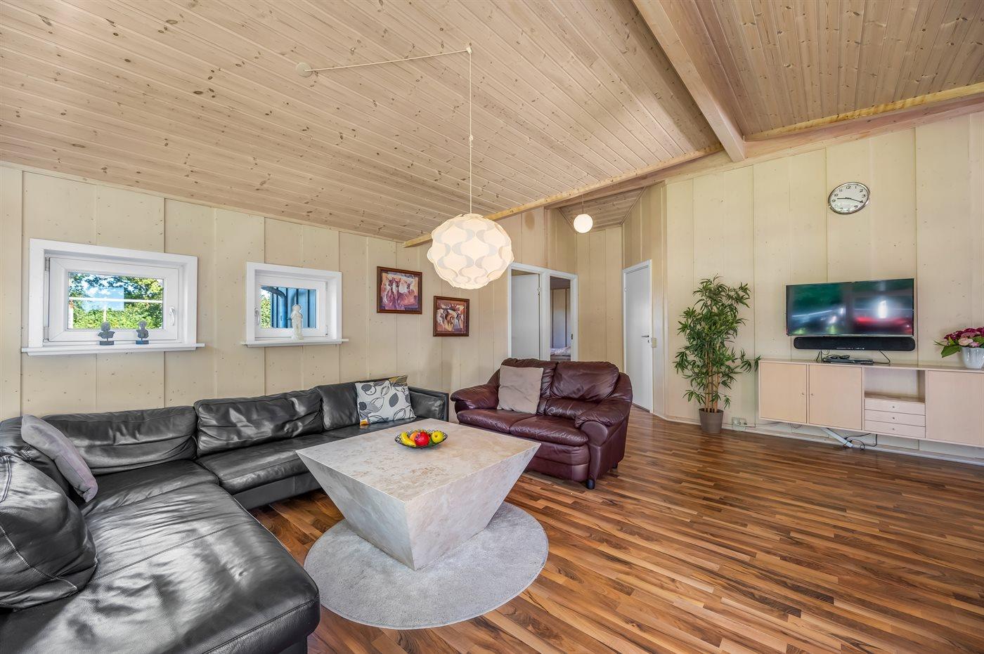 Sommerhus beliggende på en velplejet og delvis lukket grund, med god plads til boldspil og leg, for enden af en blind vej. Huset ligger i rolige omgivelser med udsigt udover det skønne naturområde, der grænser op til grunden.