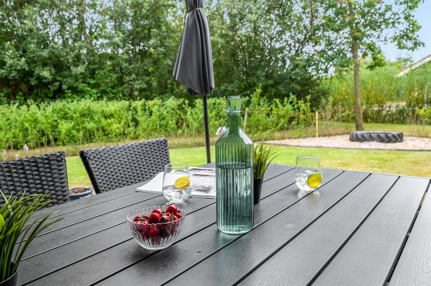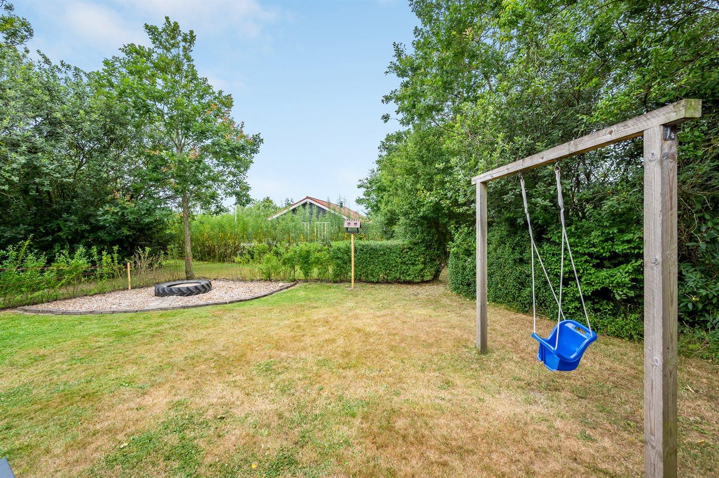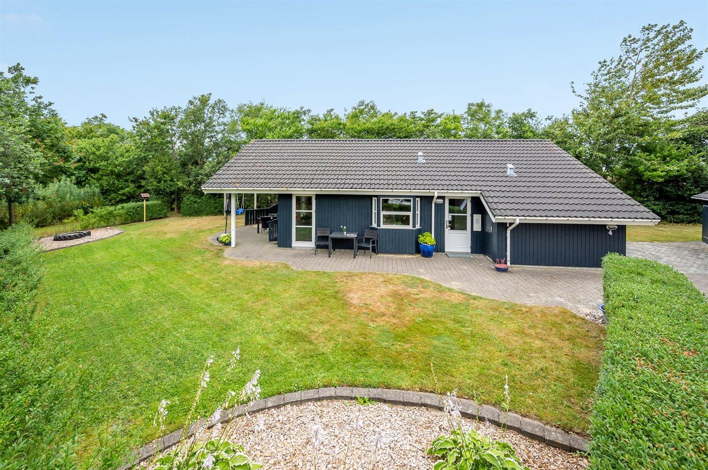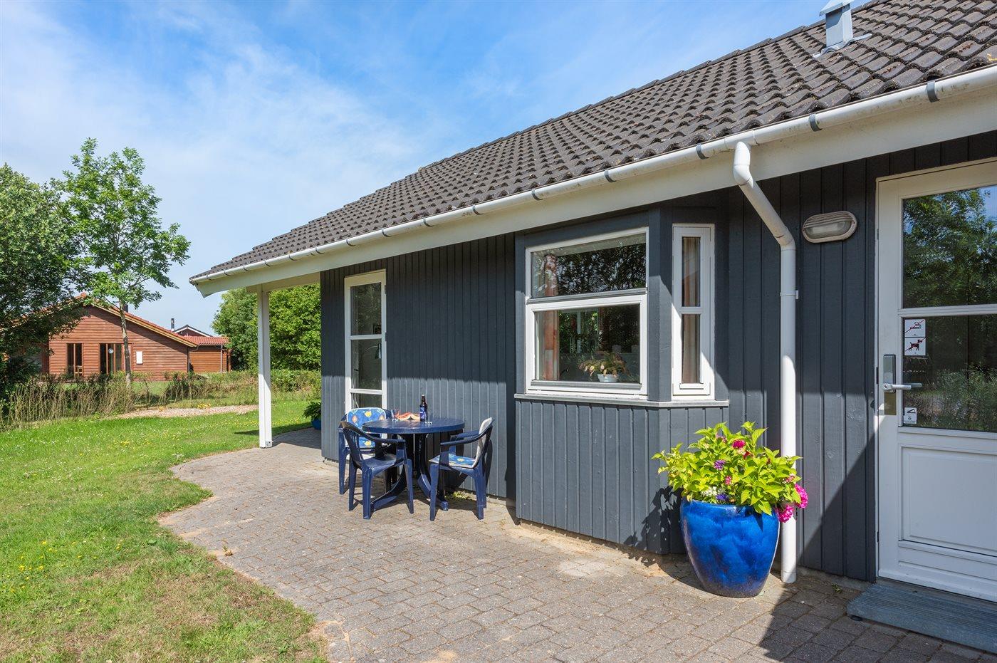 Ferieboligen er beliggende på en 968 m² stor havegrund. Der er 7000 m til havet. Der er 1000 m til fjorden. Nærmeste forretning er beliggende i en afstand af 1000 m. Til ferieboligen hører 24 m² terrasseareal. Desuden er der 14 m² overdækket terrasse. Der er redskabsrum. Gynge. Sandkasse. Der er carport til rådighed. Parkering ved ferieboligen.