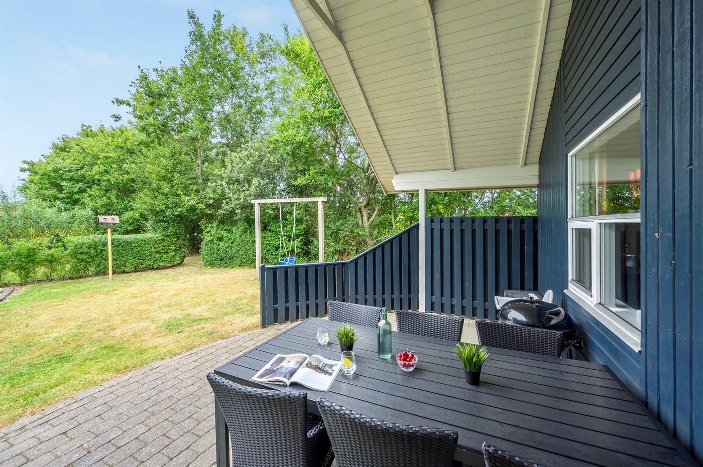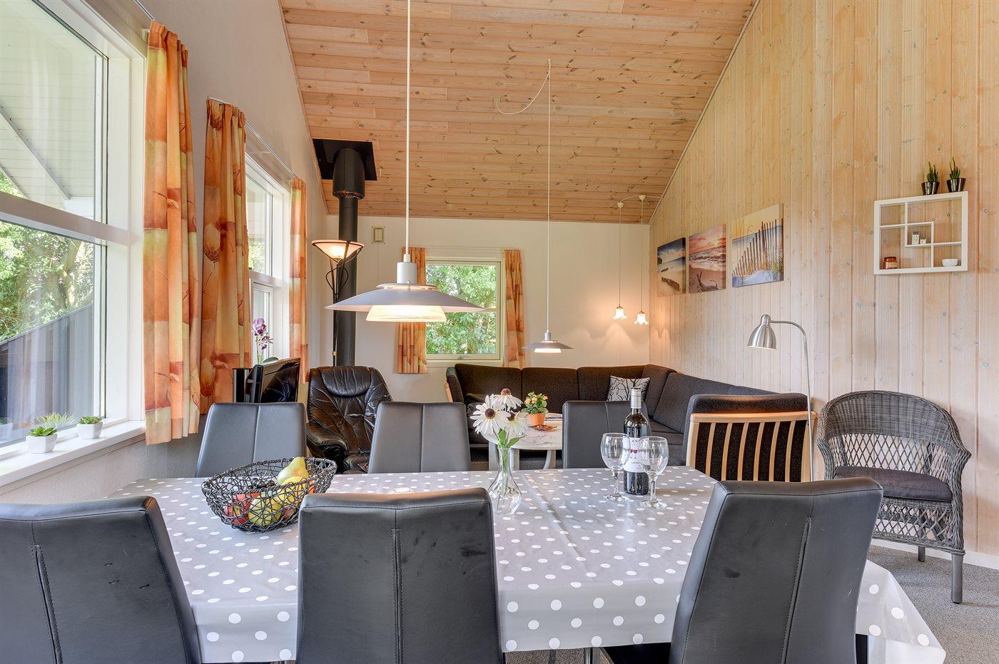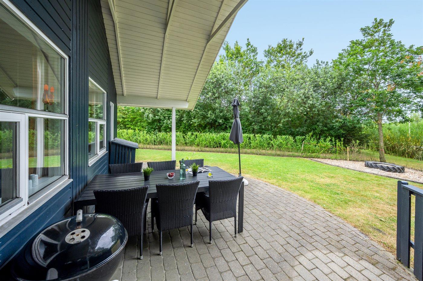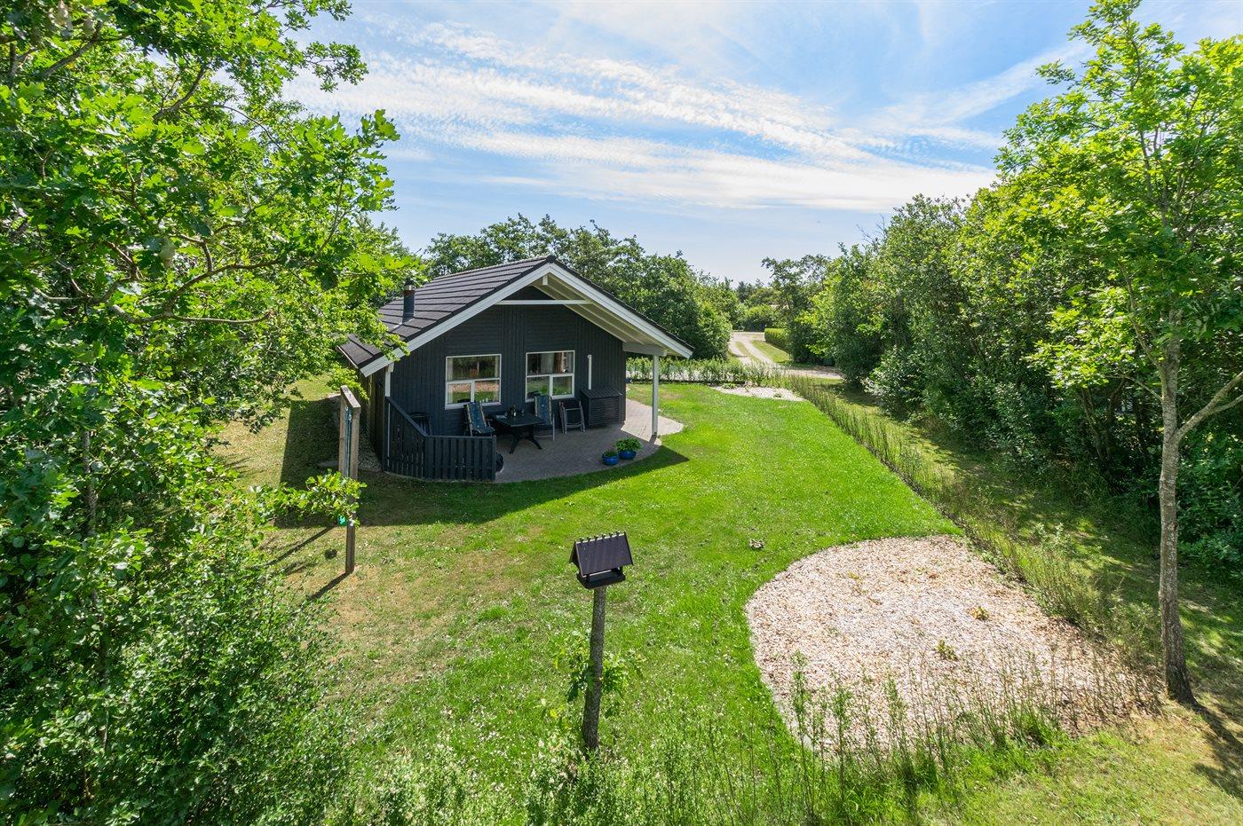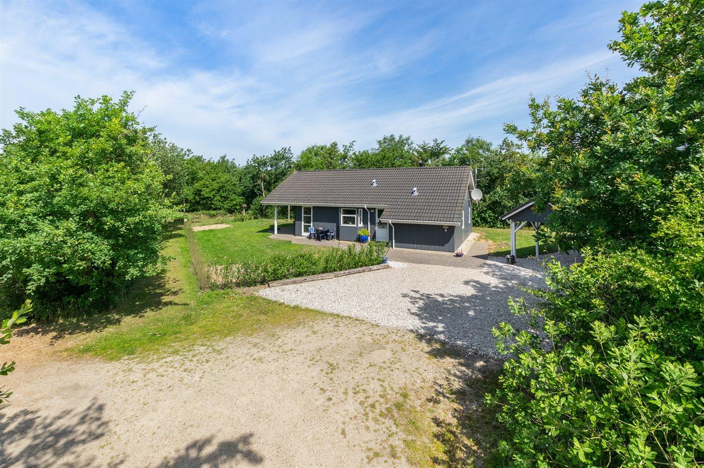 På en skøn grund, på en lukket vej ligger dette hyggeligt indrettede sommerhus. Til huset hører en delvis overdækket terrasse med havemøbler. Det naturskønne område inviterer til cykel- og vandreture. Ved fjorden, er der gode surf- og fiskemuligheder og man kan også besøge Værnet, Tipperne eller Skjern Enge, hvor der er masser af fugleliv.