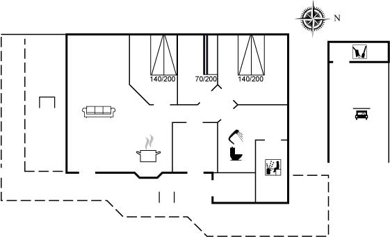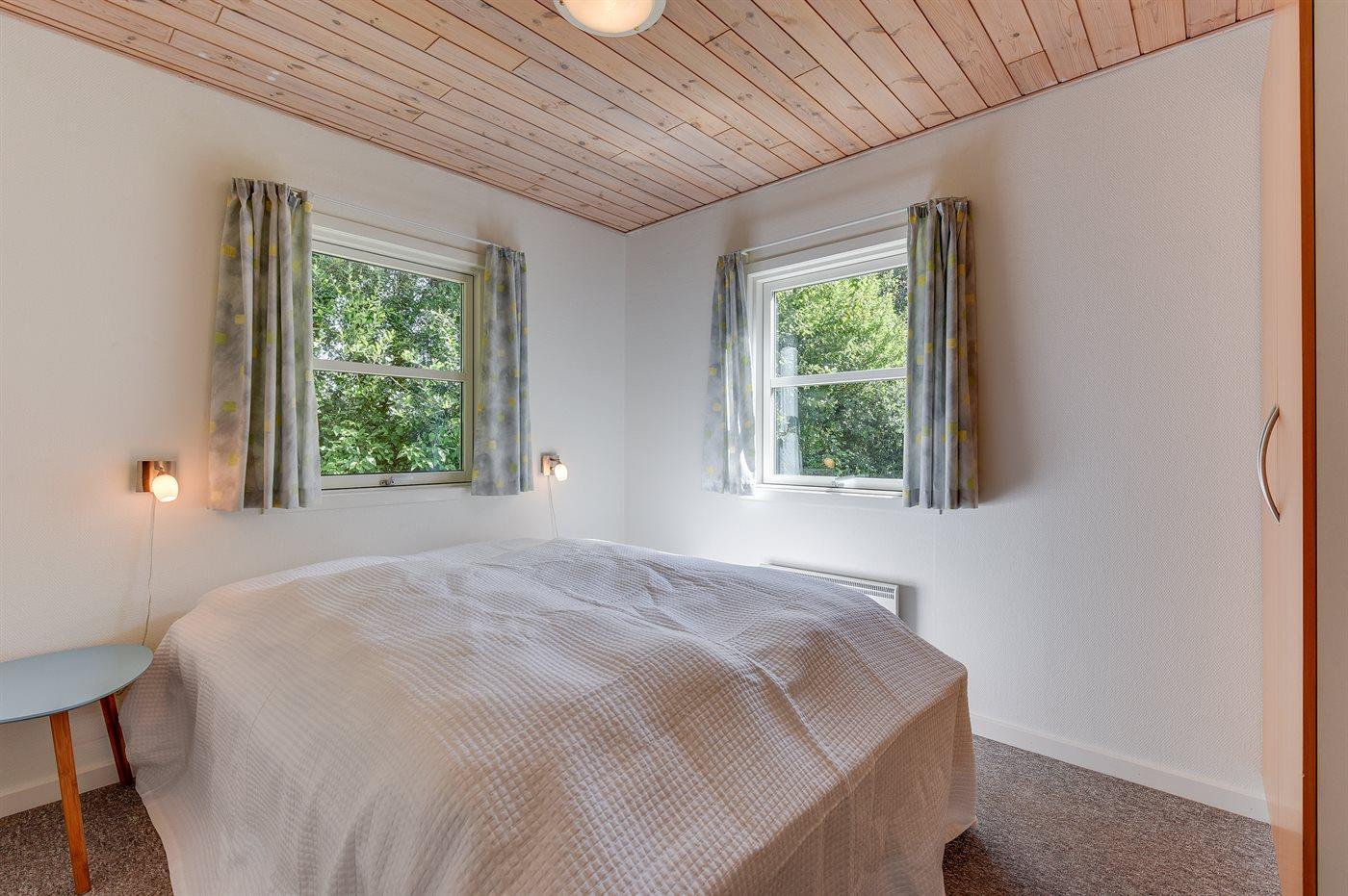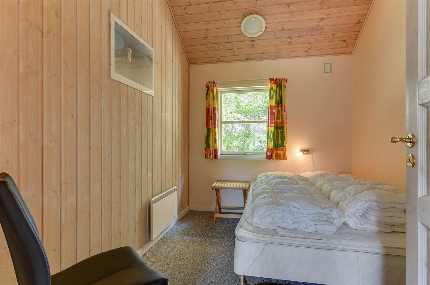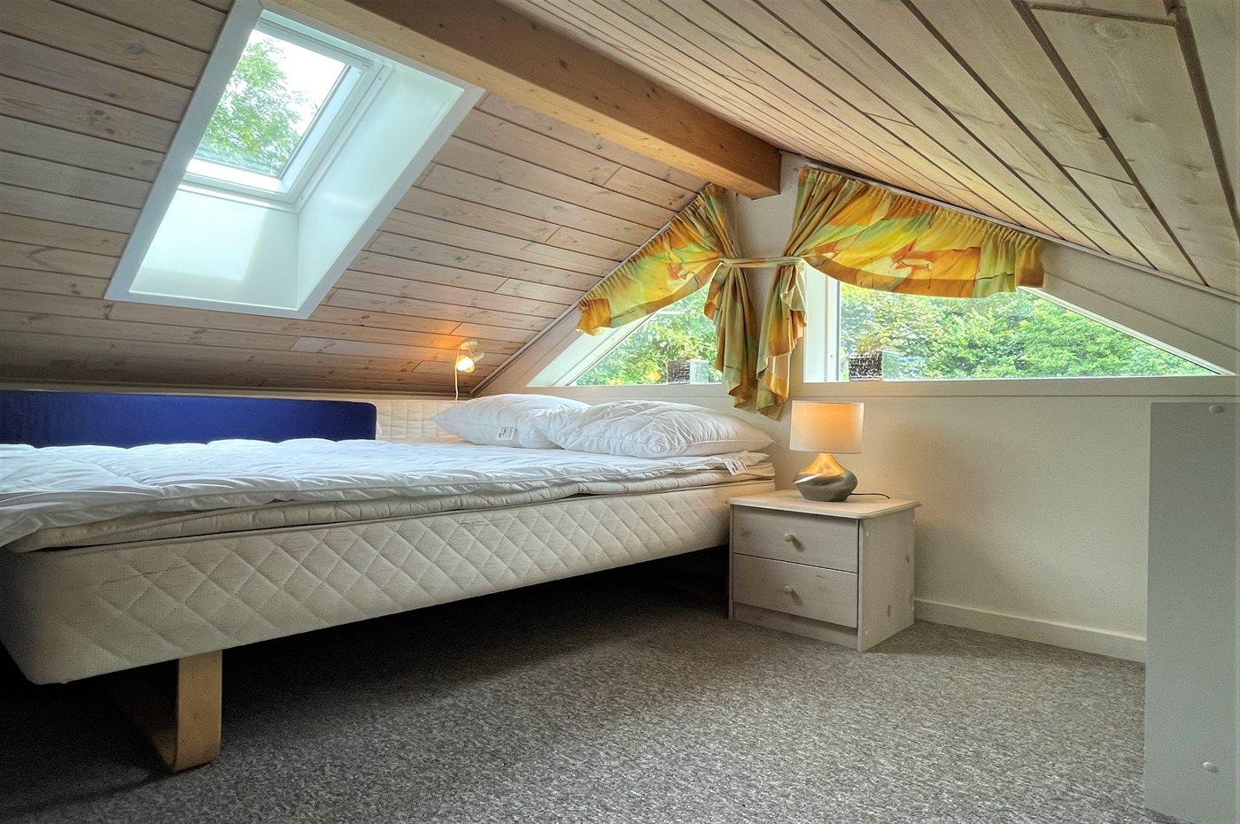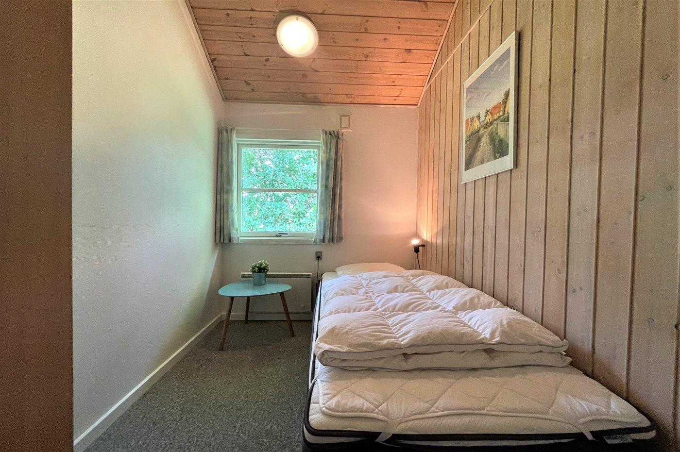 Der er i alt 3 soveværelser. Sovepladserne fordeler sig på: 6 sovepladser i dobbeltsenge. 2 sovepladser i køjeseng. 2 af disse sovepladser befinder sig på husets hems. Derudover er der 1 stk. barneseng.