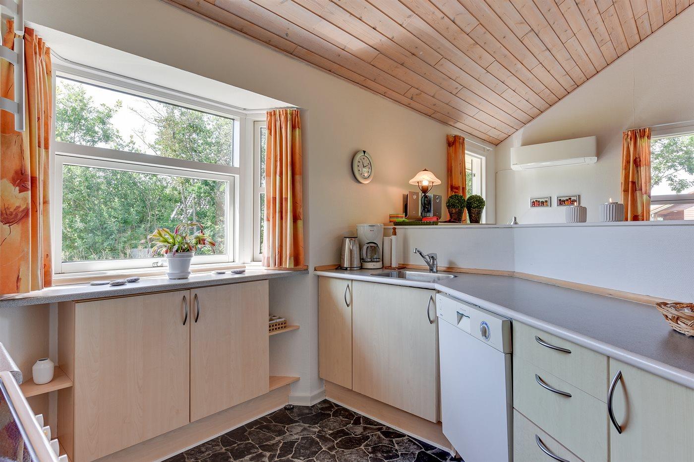 Køkkenet er udstyret med 1 køleskab. Der er 4 keramiske kogeplader, varmluftovn, mikrobølgeovn samt opvaskemaskine.
