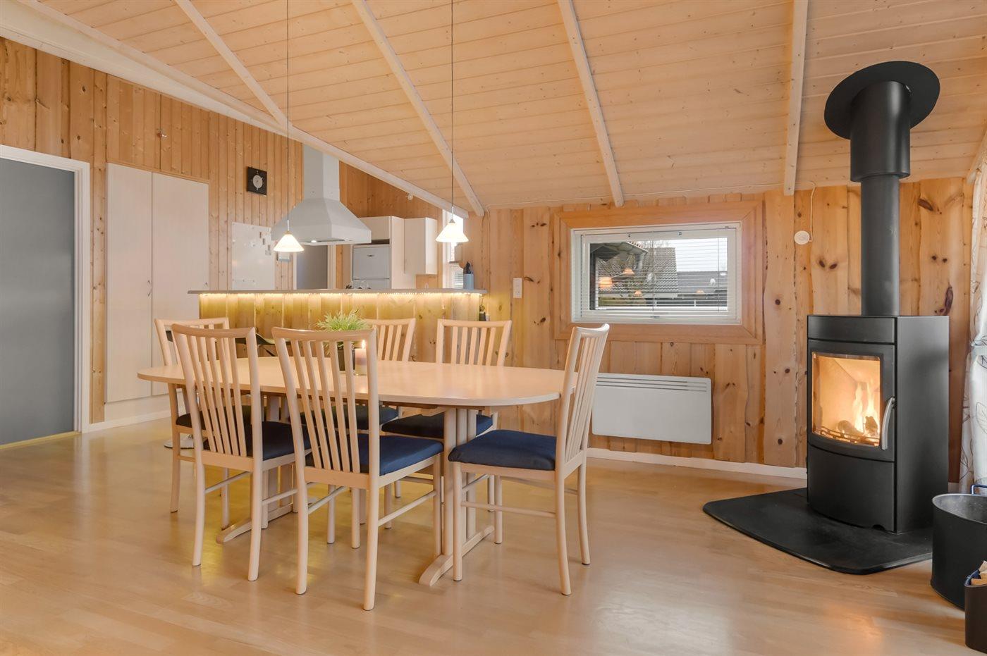 Sommerhuset egner sig til 8 personer samt 1 barn op til 3 år. 2 af sovepladserne er kun egnet til større børn (4-11 år). Ferieboligen er på 100 m² og er bygget i 2006. Det er tilladt at medbringe 2 husdyr. Ferieboligen har vaskemaskine. Tørretumbler. Frysekapacitet på 110 liter. Der er desuden brændeovn. Til de små er der 1 stk. barnestol.
