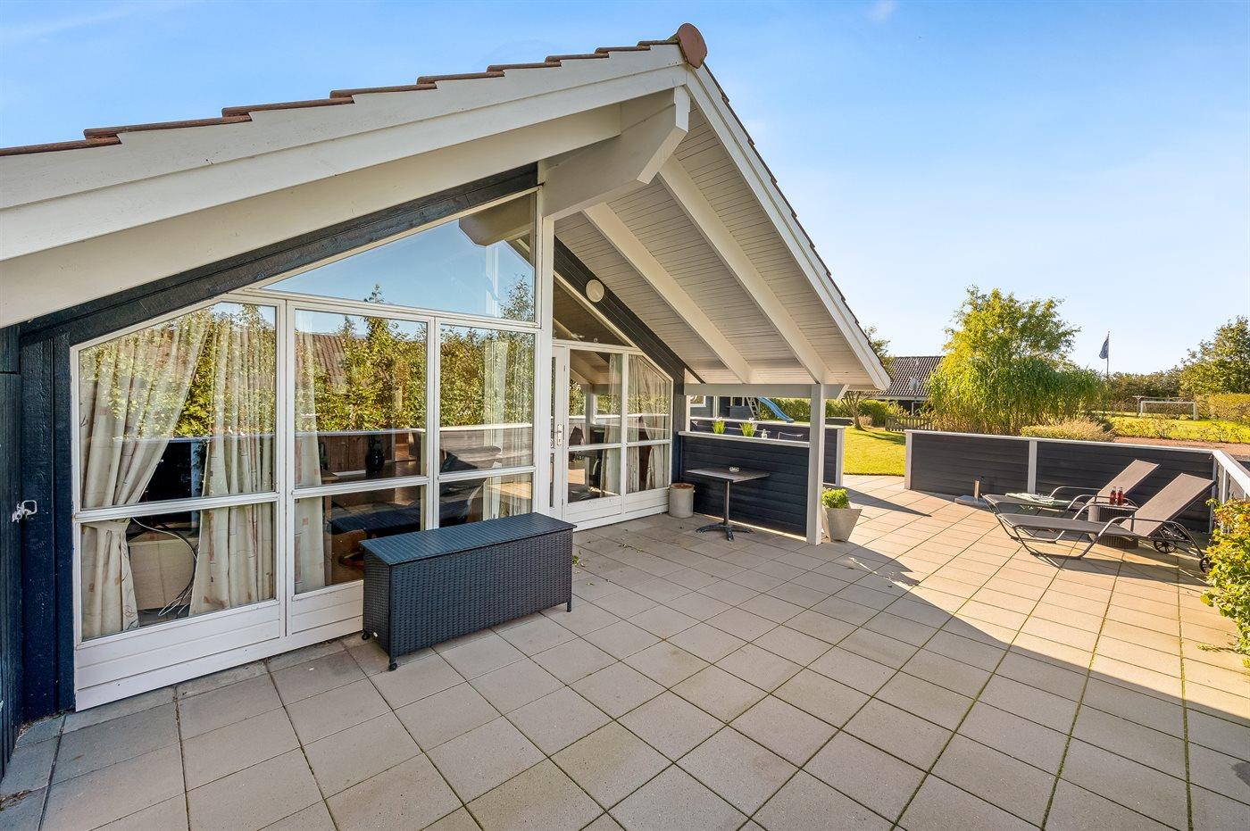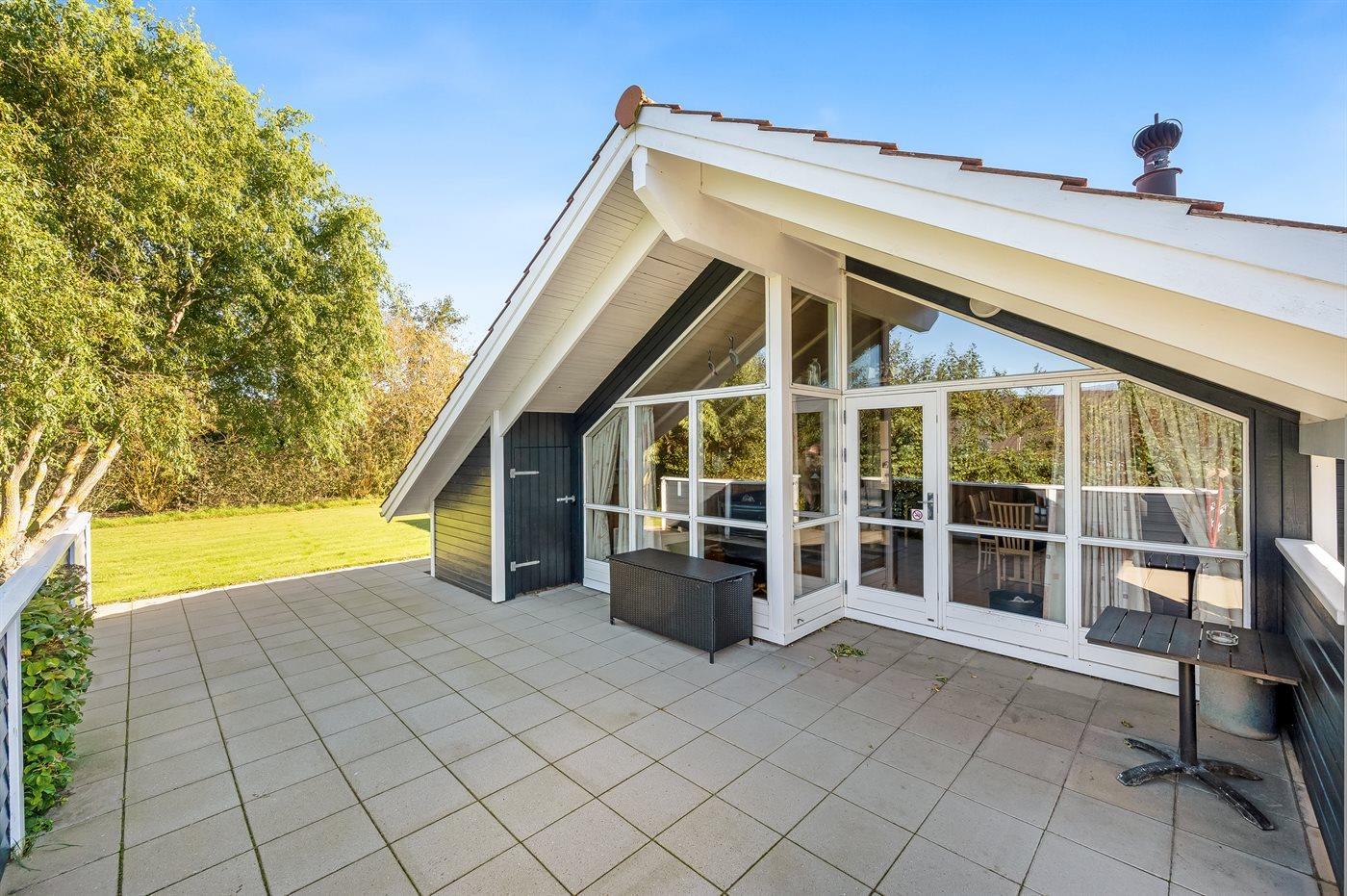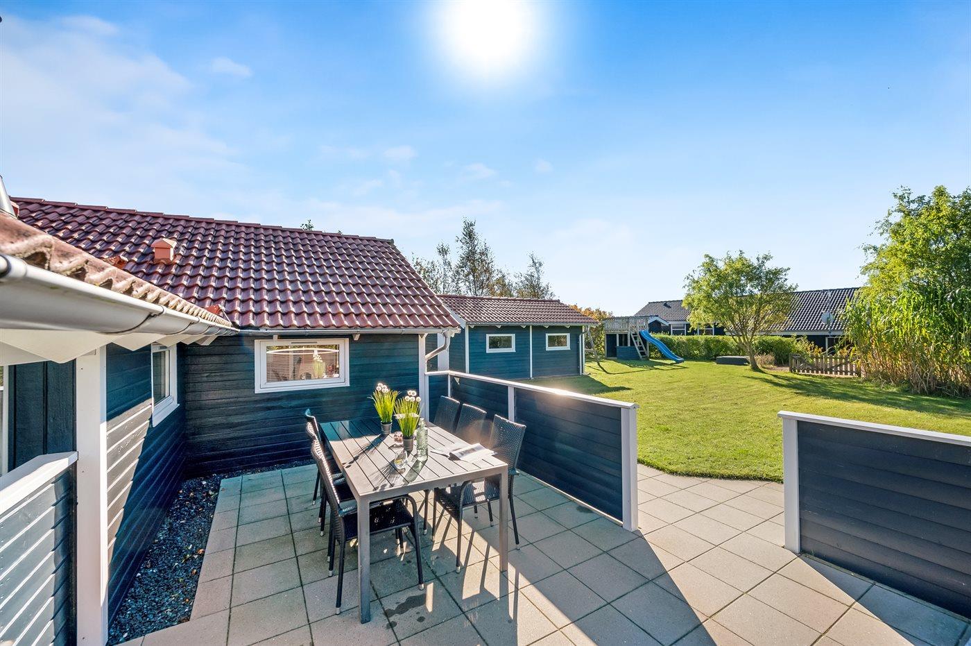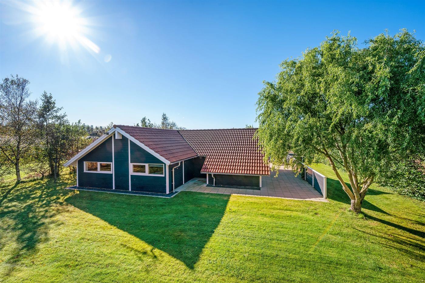 Ferieboligen er beliggende på en 1211 m² stor havegrund. Der er 7500 m til havet. Der er 1200 m til fjorden. Nærmeste forretning er beliggende i en afstand af 950 m. Der er en golfbane i en afstand af 12000 m. Til ferieboligen hører 120 m² terrasseareal. Desuden er der 10 m² overdækket terrasse. Gynge. Sandkasse. Rutchebane. Parkering ved ferieboligen.