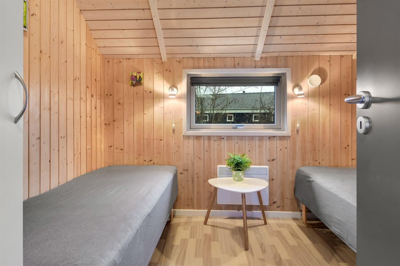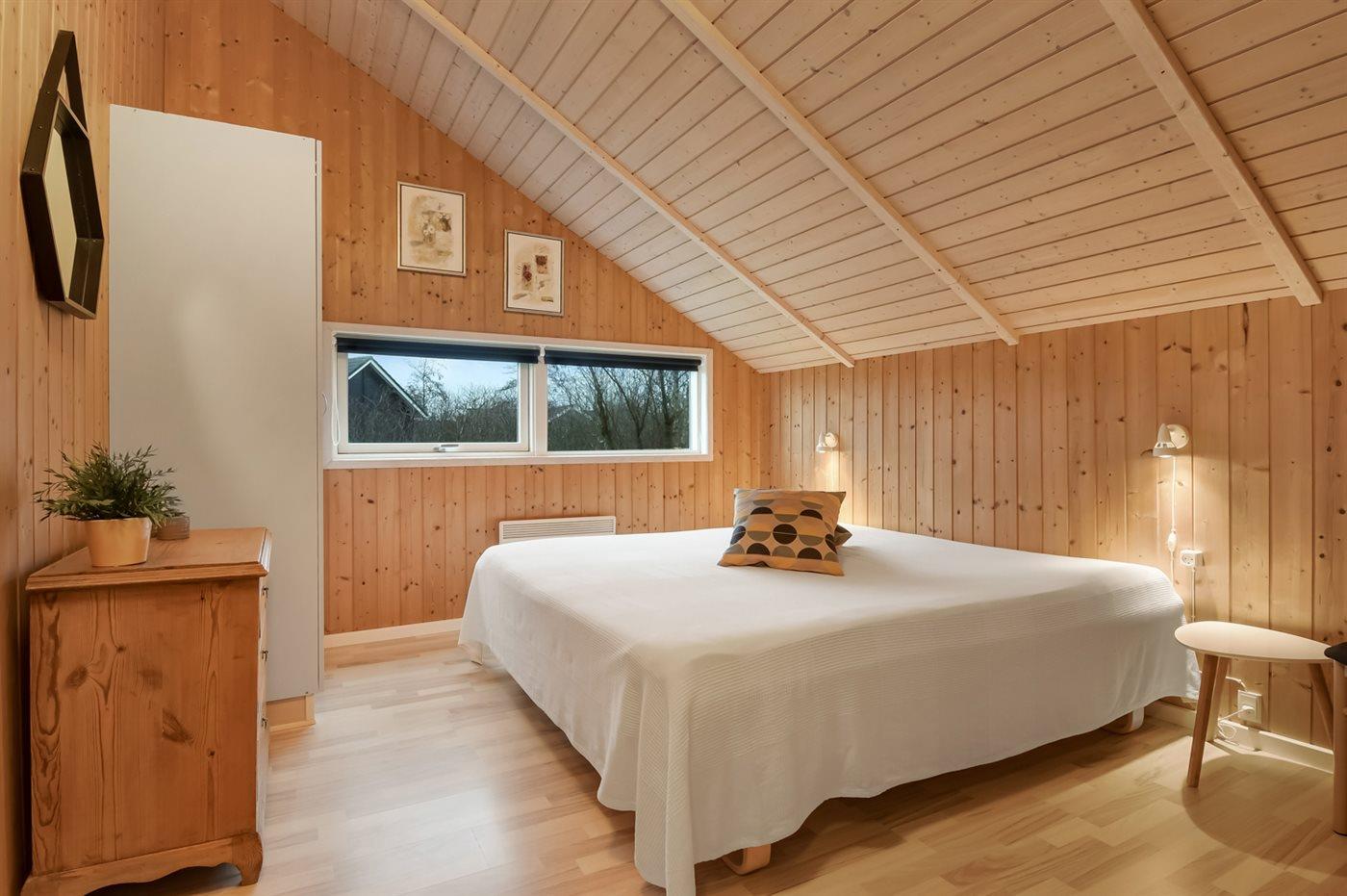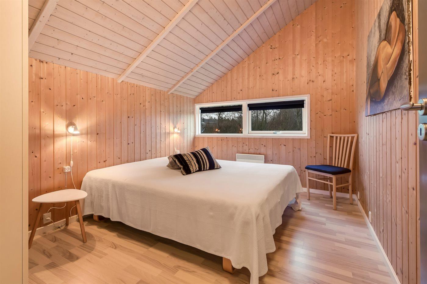 Der er i alt 3 soveværelser. Sovepladserne fordeler sig på: 4 sovepladser i dobbeltsenge. 2 sovepladser i enkeltsenge. 2 sovepladser i alkove. Derudover er der 1 stk. barneseng.