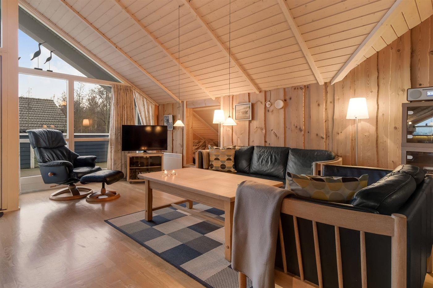 Dette dejlige og rummelige sommerhus er beliggende for enden af en rolig vej på en skøn grund med plads til boldspil og leg. I forbindelse med opholdsstuen er der indrettet en alkove, hvor 2 sovepladser til børn befinder sig.