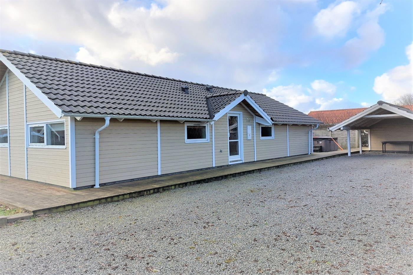 Ferieboligen er beliggende på en 1037 m² stor naturgrund. Der er 8000 m til havet. Der er 800 m til fjorden. Nærmeste forretning er beliggende i en afstand af 800 m. Gynge. Sandkasse. Rutchebane. Fodboldmål. Der er carport til rådighed. Parkering ved ferieboligen.