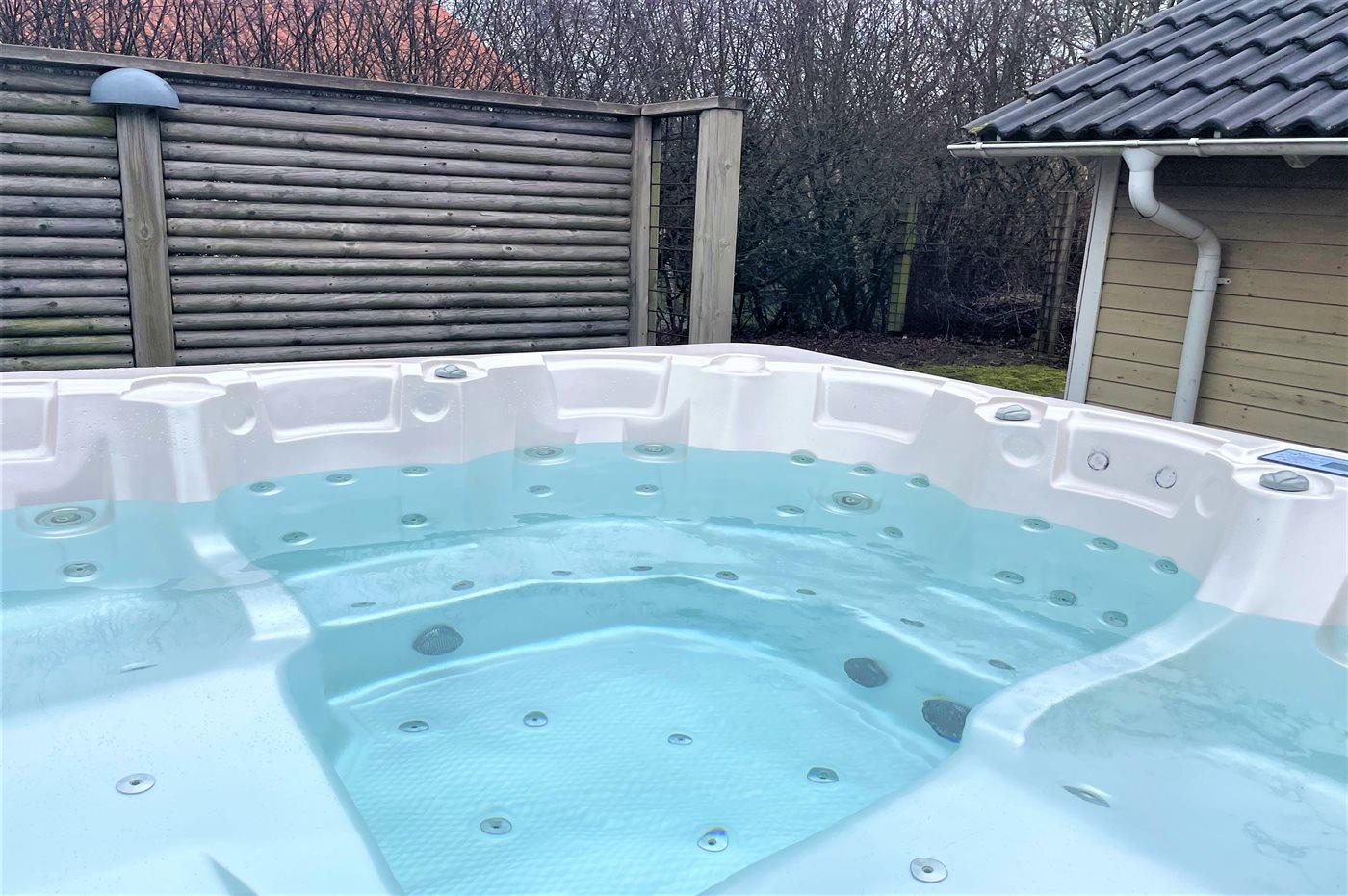 I det dejlige ferieområde ved Bork Havn ligger dette flot vedligeholdte sommerhus med stor udendørs spa, som kan benyttes hele året rundt.