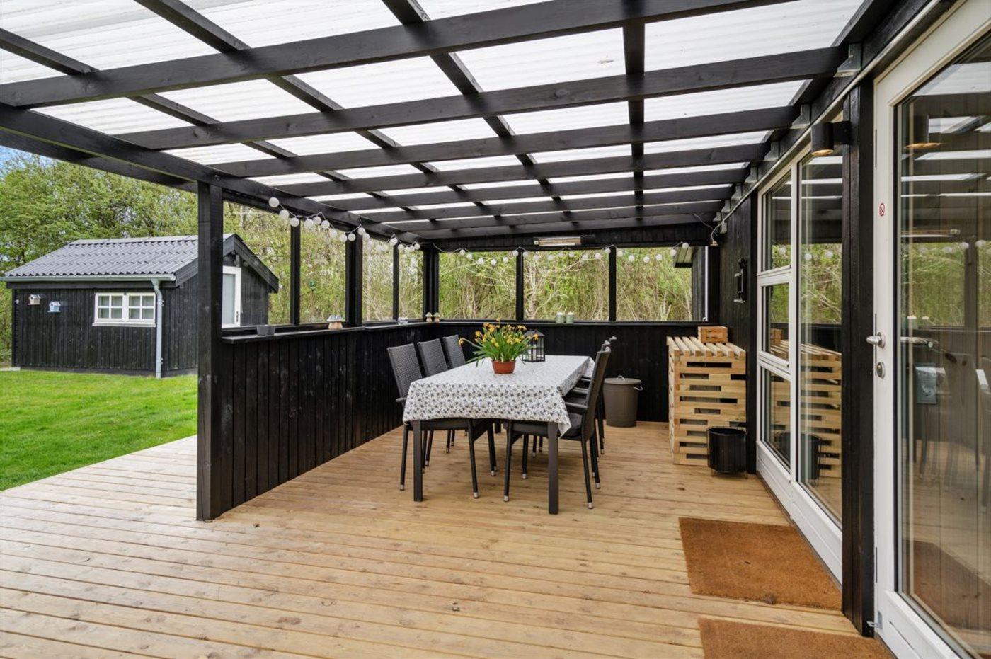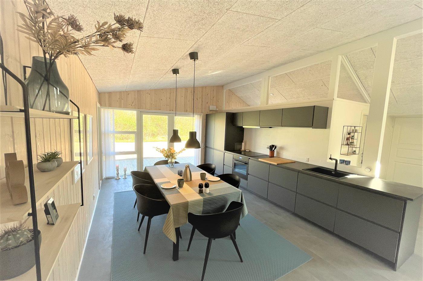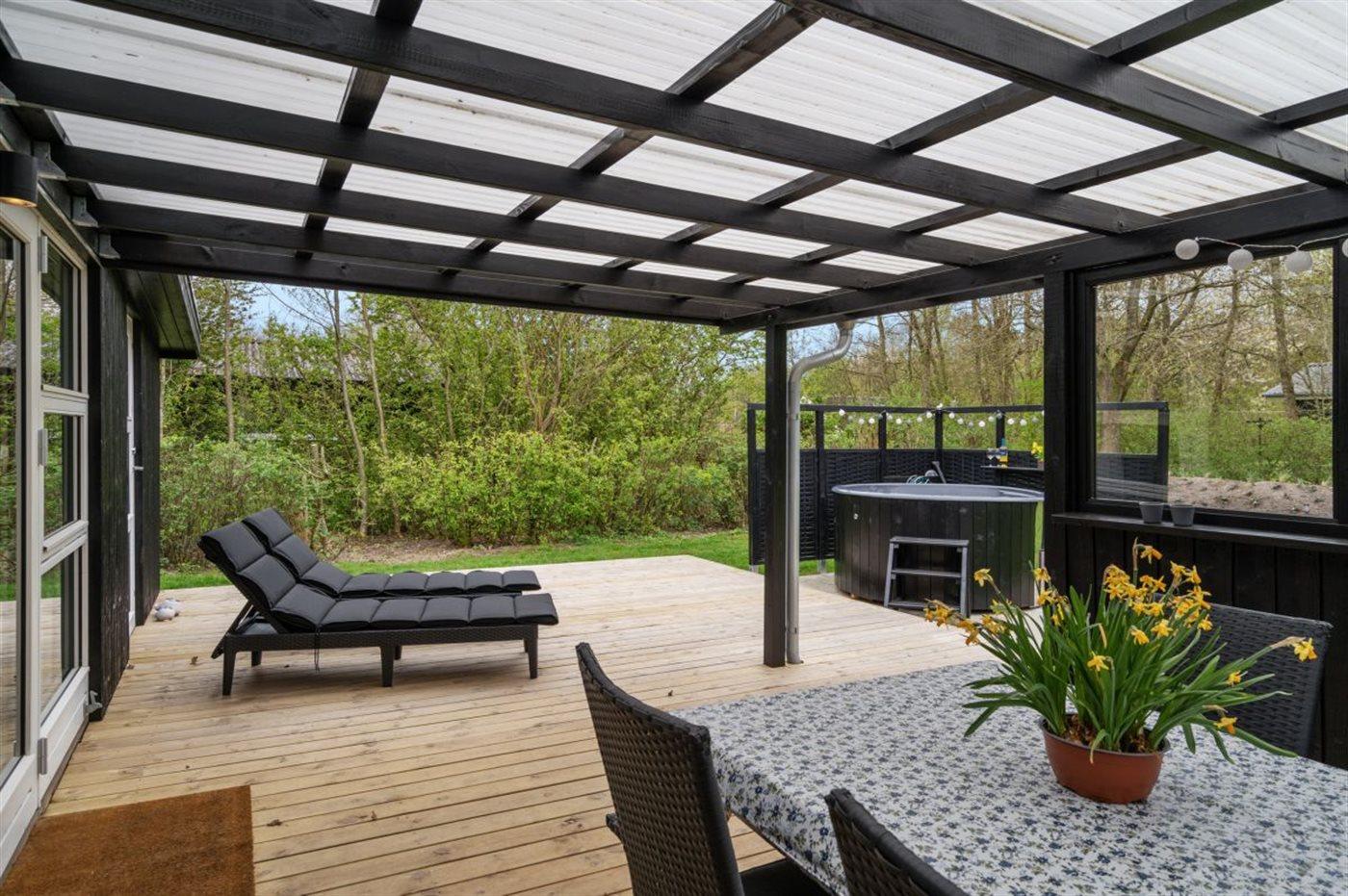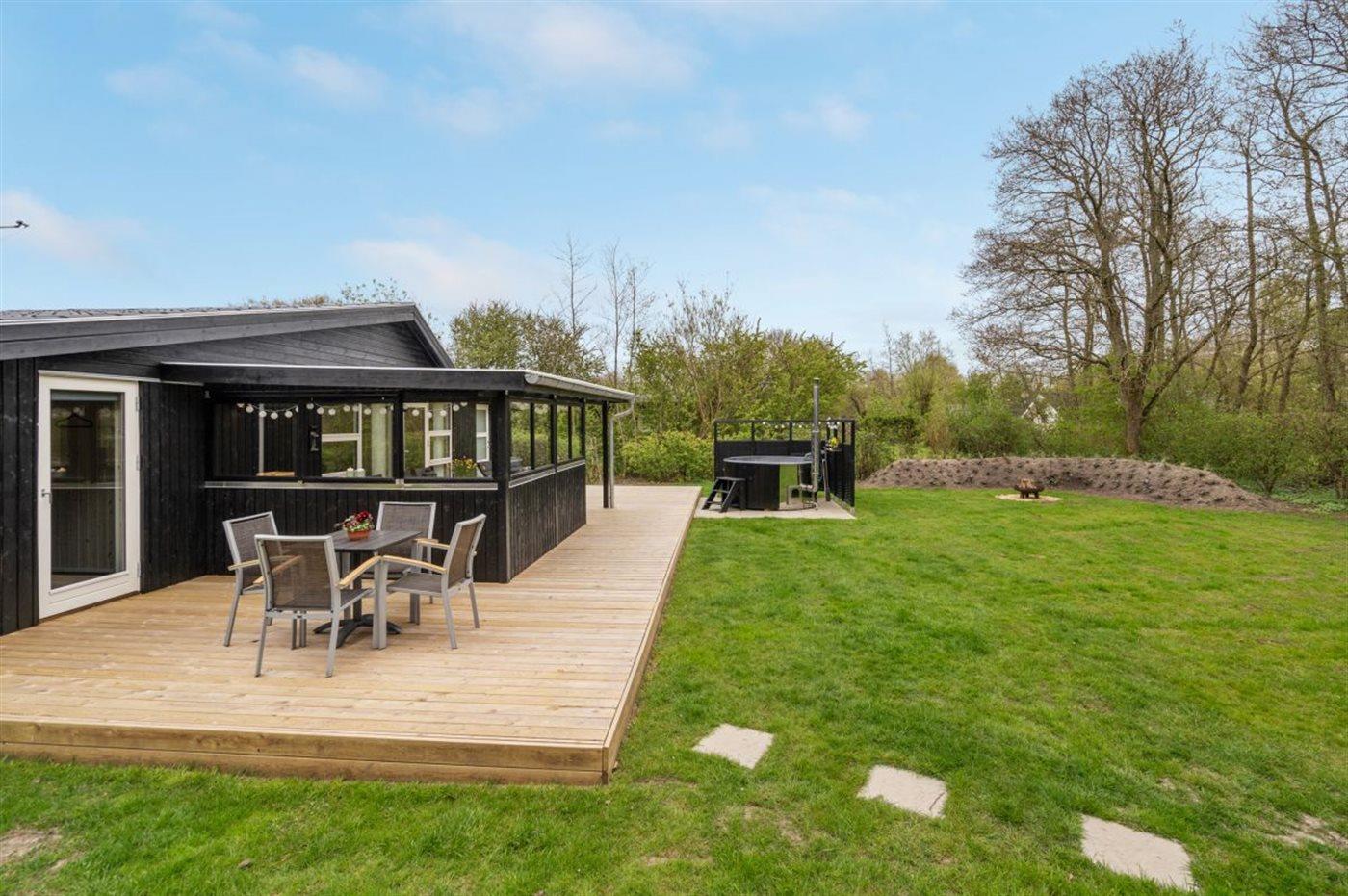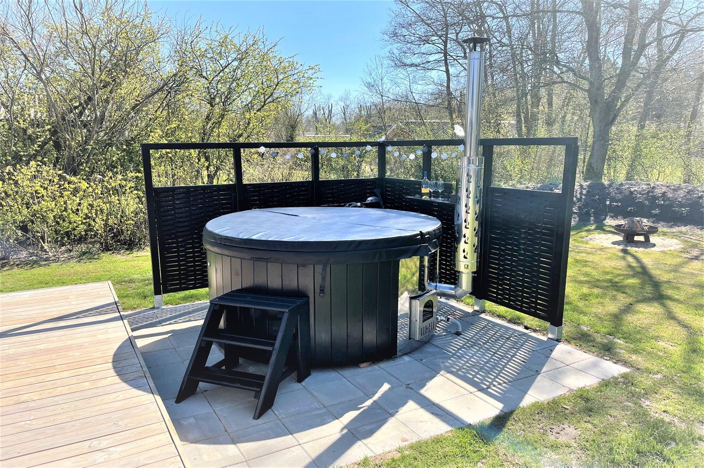 Nær Bork Havn ligger dette flotte og i 2022 totalrenoverede sommerhus. På husets til dels overdækkede terrasse finder I bl.a. et skønt vildmarksbad til 6-personer, som kan benyttes hele året.