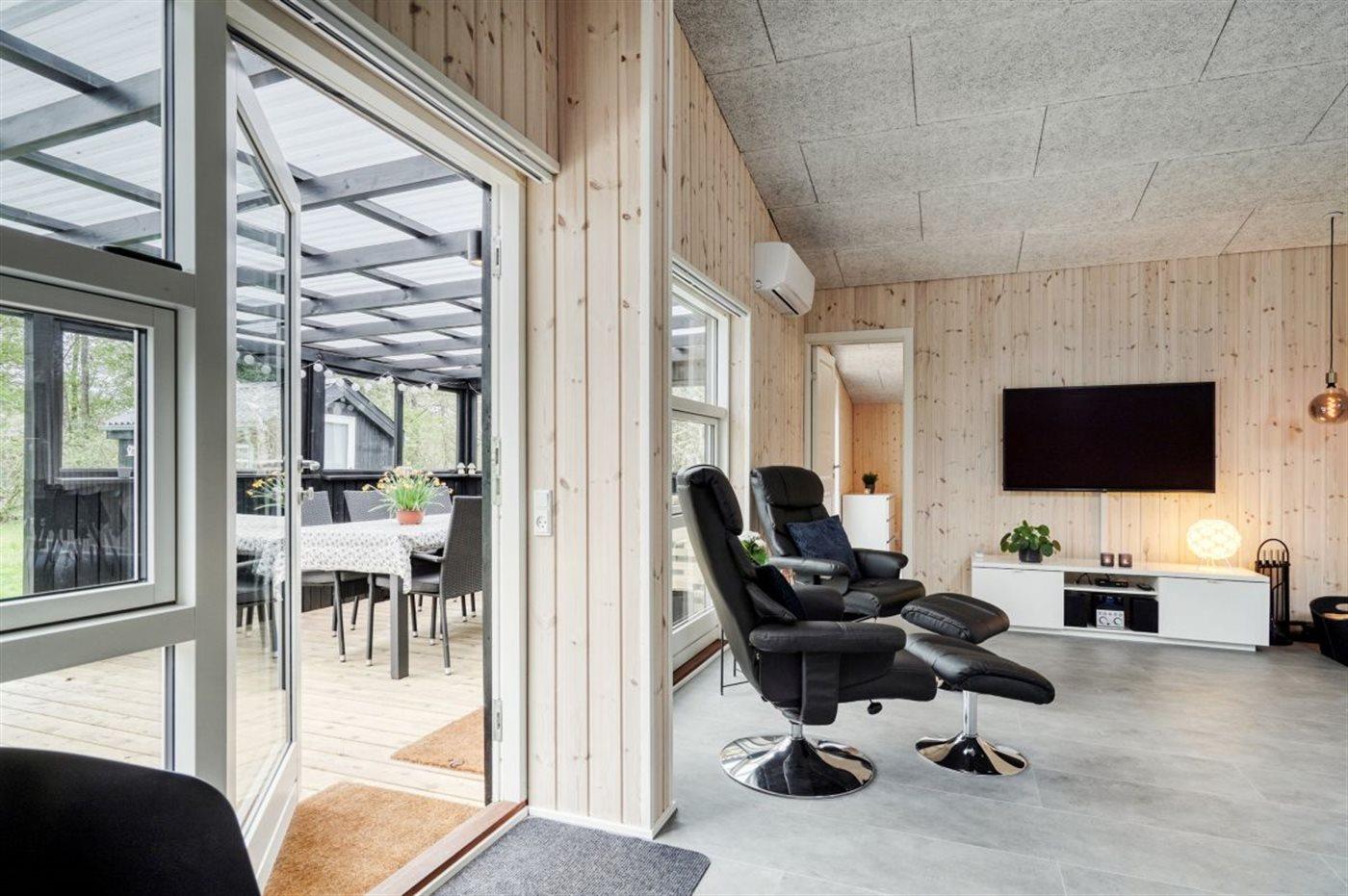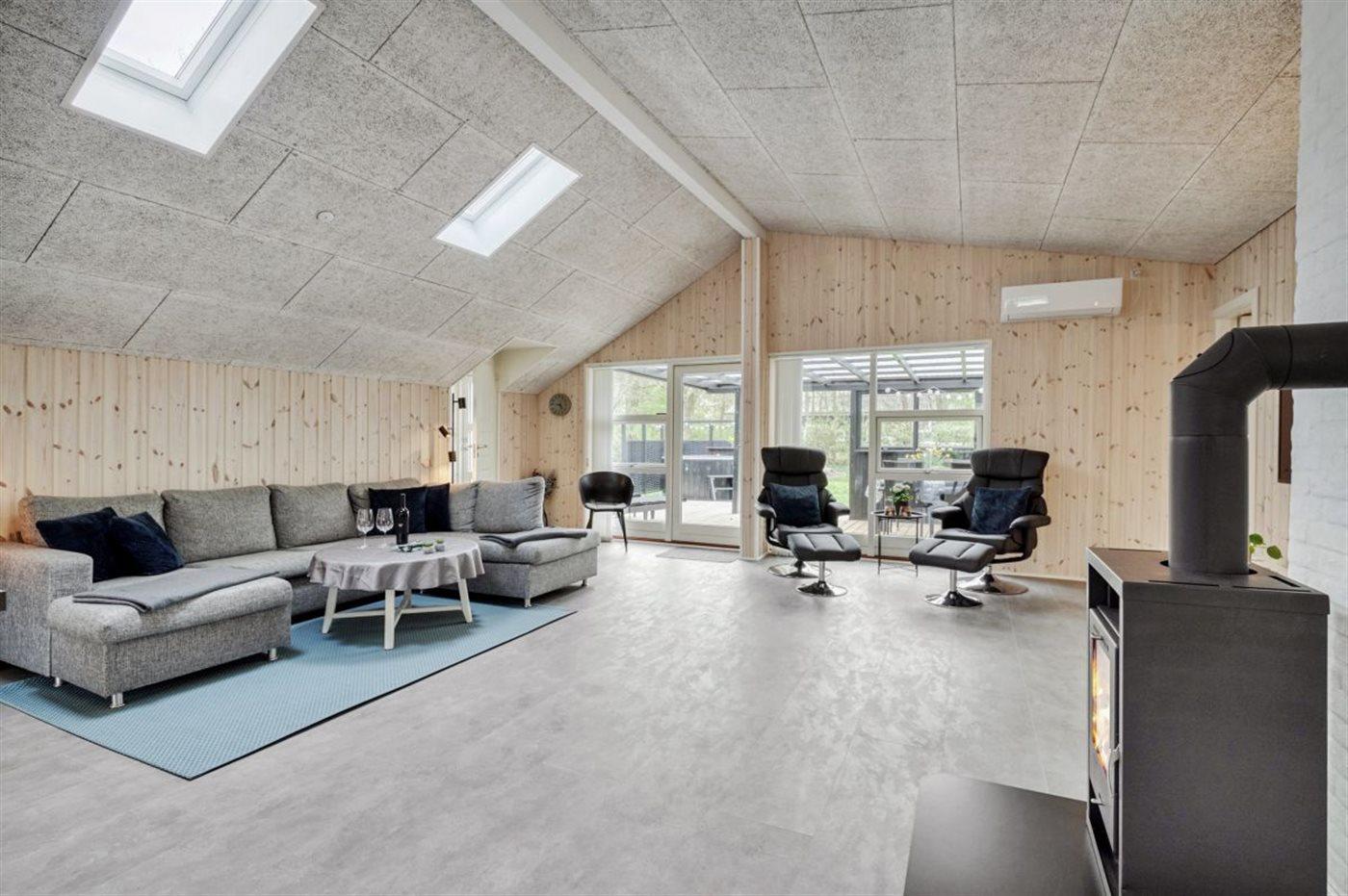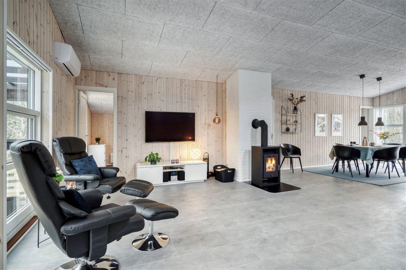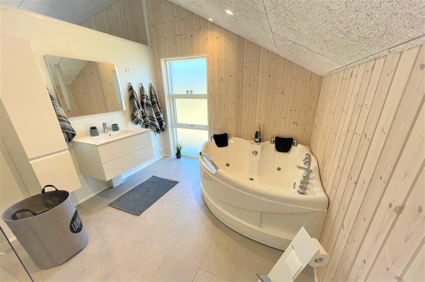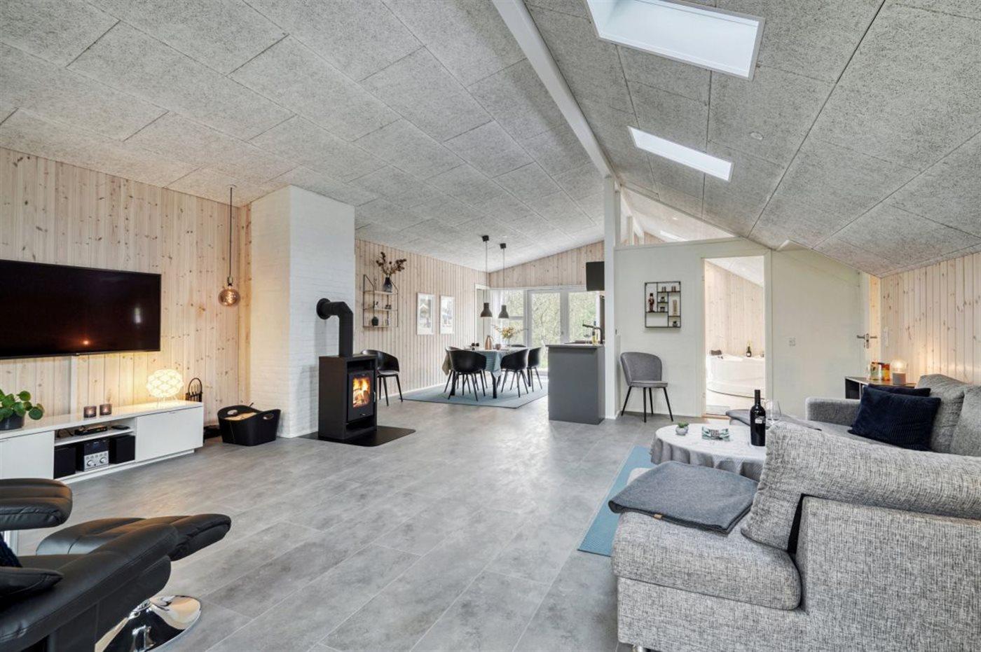 Nær Bork Havn ligger dette flotte og i 2022 totalrenoverede sommerhus. På husets til dels overdækkede terrasse finder I bl.a. et skønt vildmarksbad til 6-personer, som kan benyttes hele året.