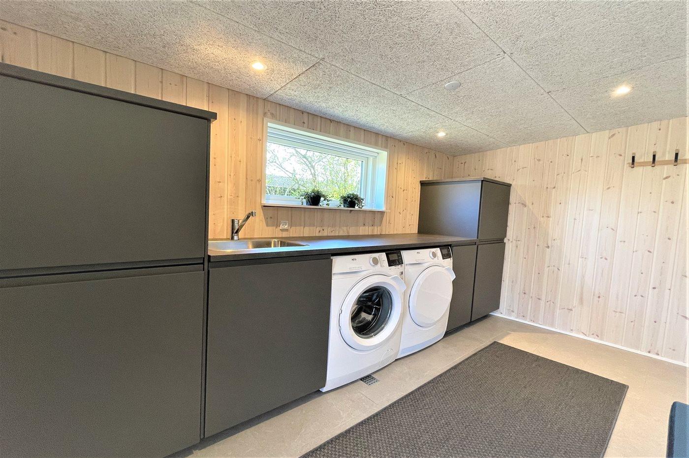 Køkkenet er udstyret med 1 køleskab. Der er 4 keramiske kogeplader, varmluftovn, mikrobølgeovn samt opvaskemaskine.