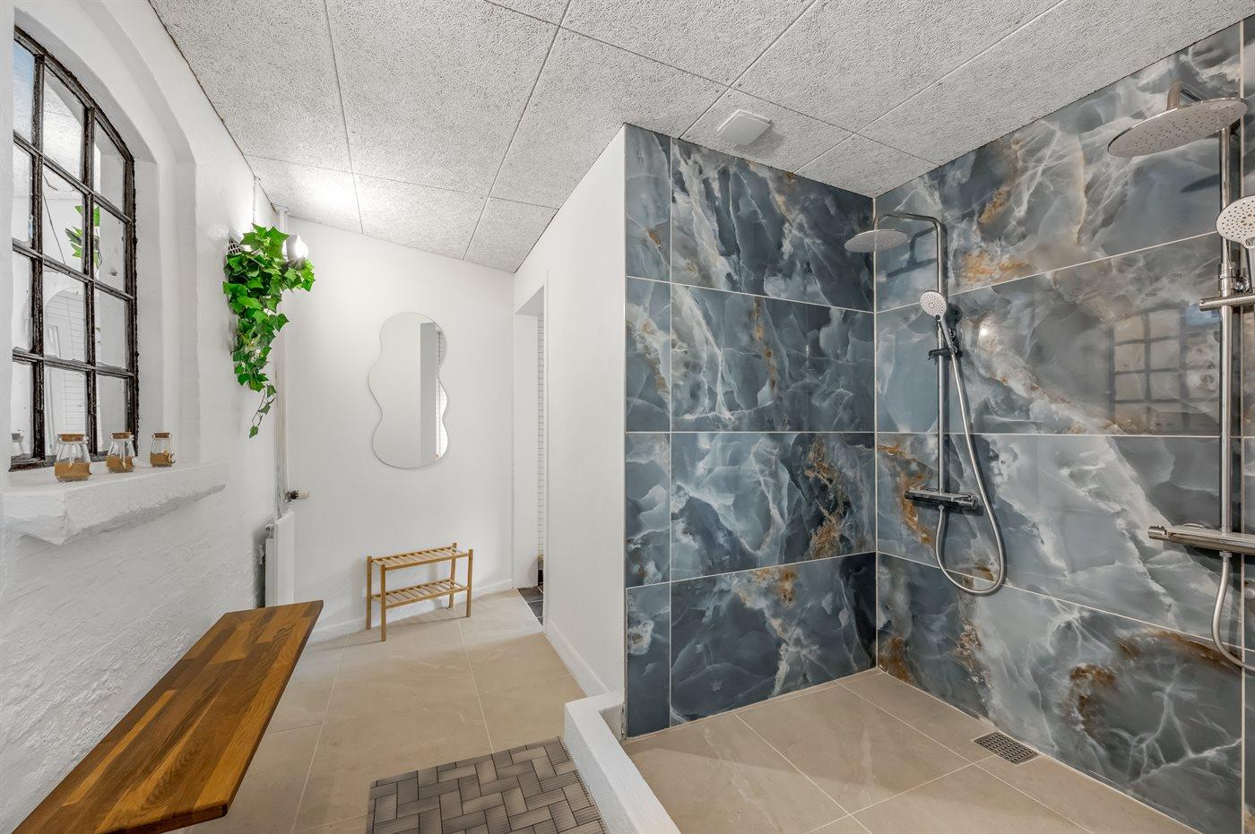 Der er 1 badeværelse med bruseniche og 2 toiletter, heraf 1 gæstetoilet. I den infrarøde sauna er der mulighed for afslapning.