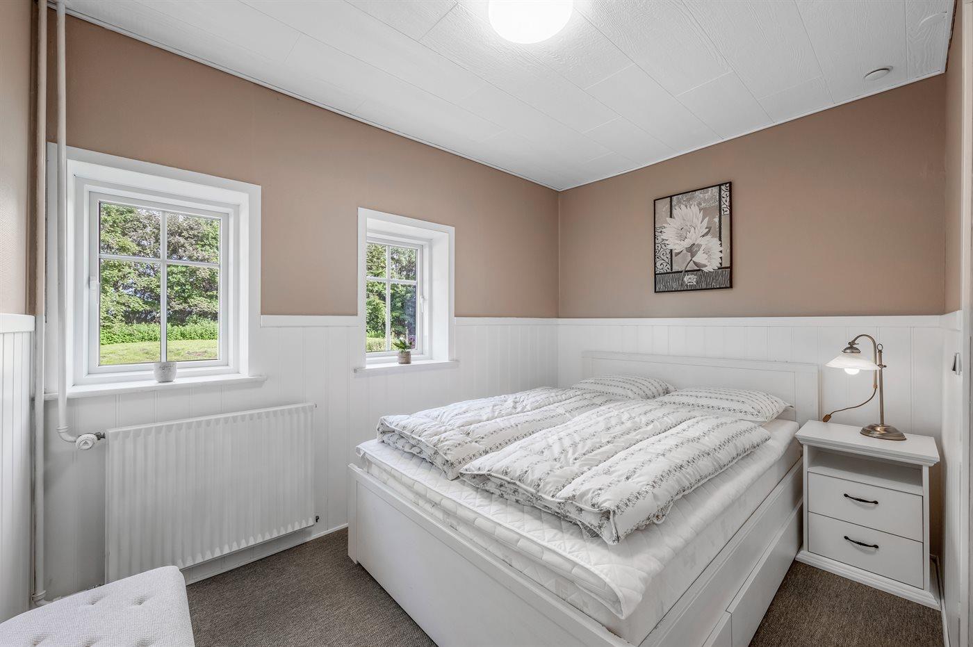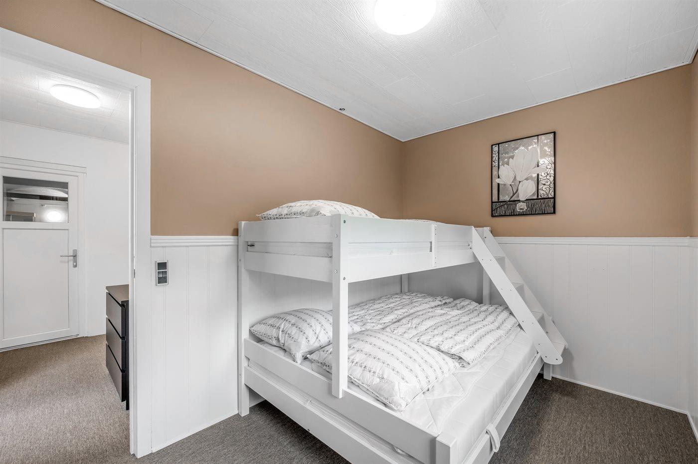 Der er i alt 4 soveværelser. Sovepladserne fordeler sig på: 4 sovepladser i dobbeltsenge. 5 sovepladser i køjesenge. Derudover er der 1 stk. barneseng.