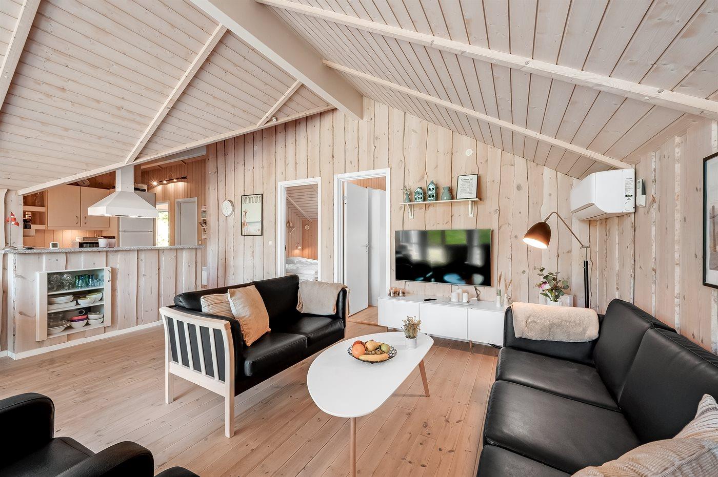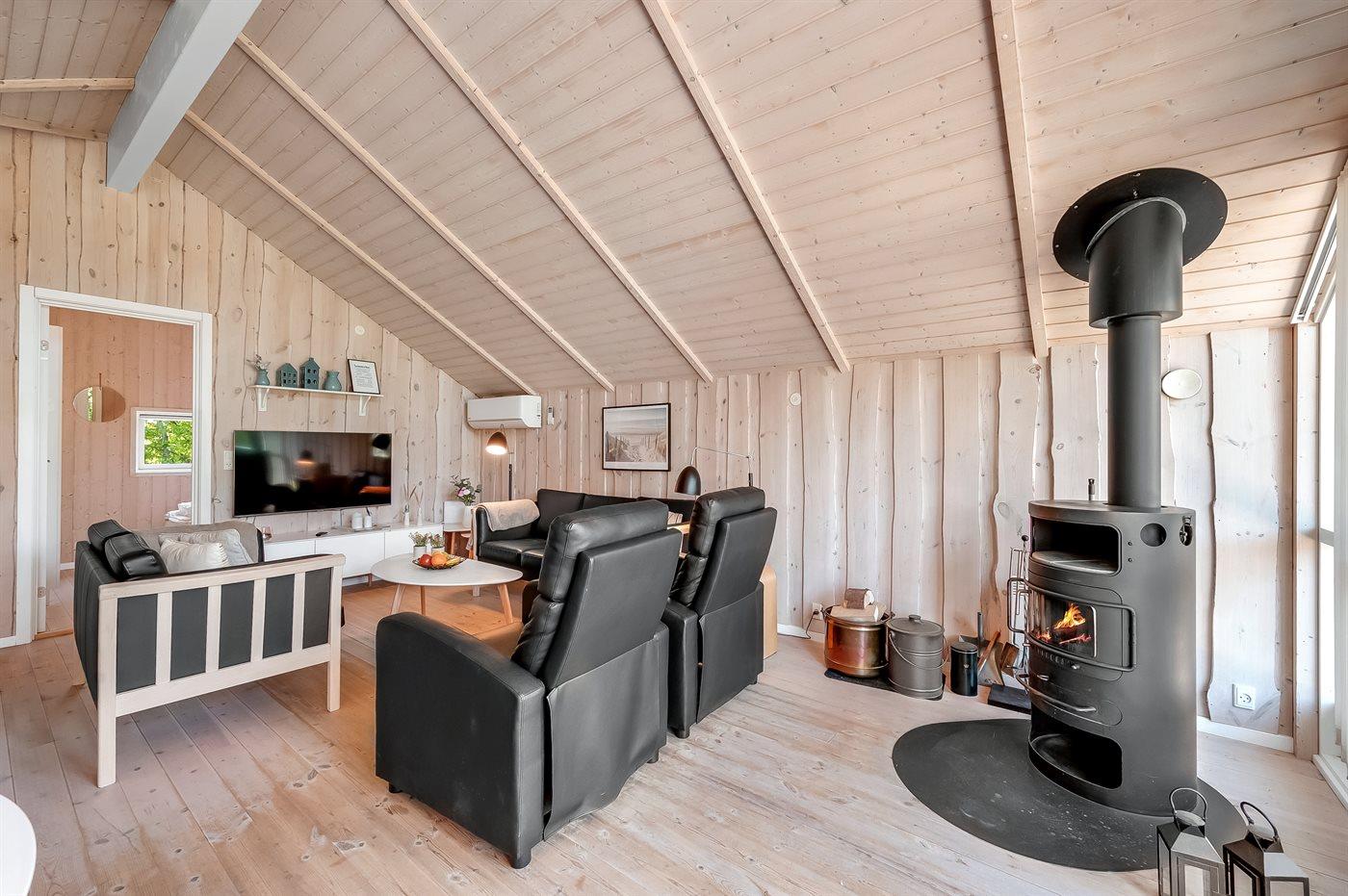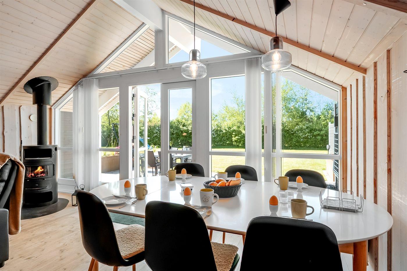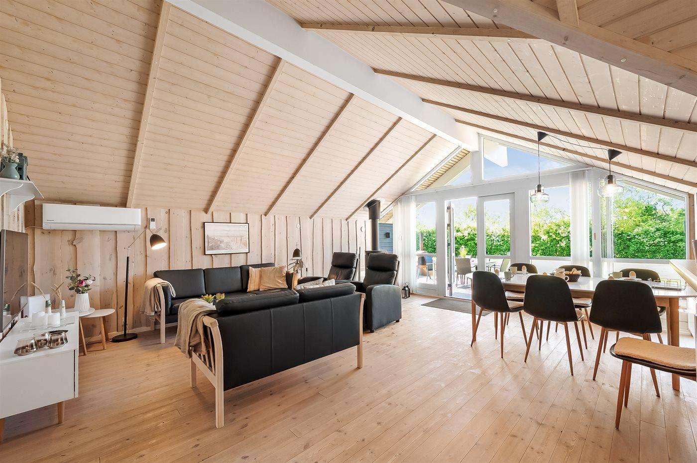I det smukke køkken-alrum strømmer lyset ind gennem de store vinduespartier, hvorfra der også udgang til dejlige terrasser. Grunden er indhegnet, hvilket er helt perfekt for jer der har små børn eller hunden med på ferie - så er der her mulighed for at de kan leje frit og nyde den friske luft udenfor.