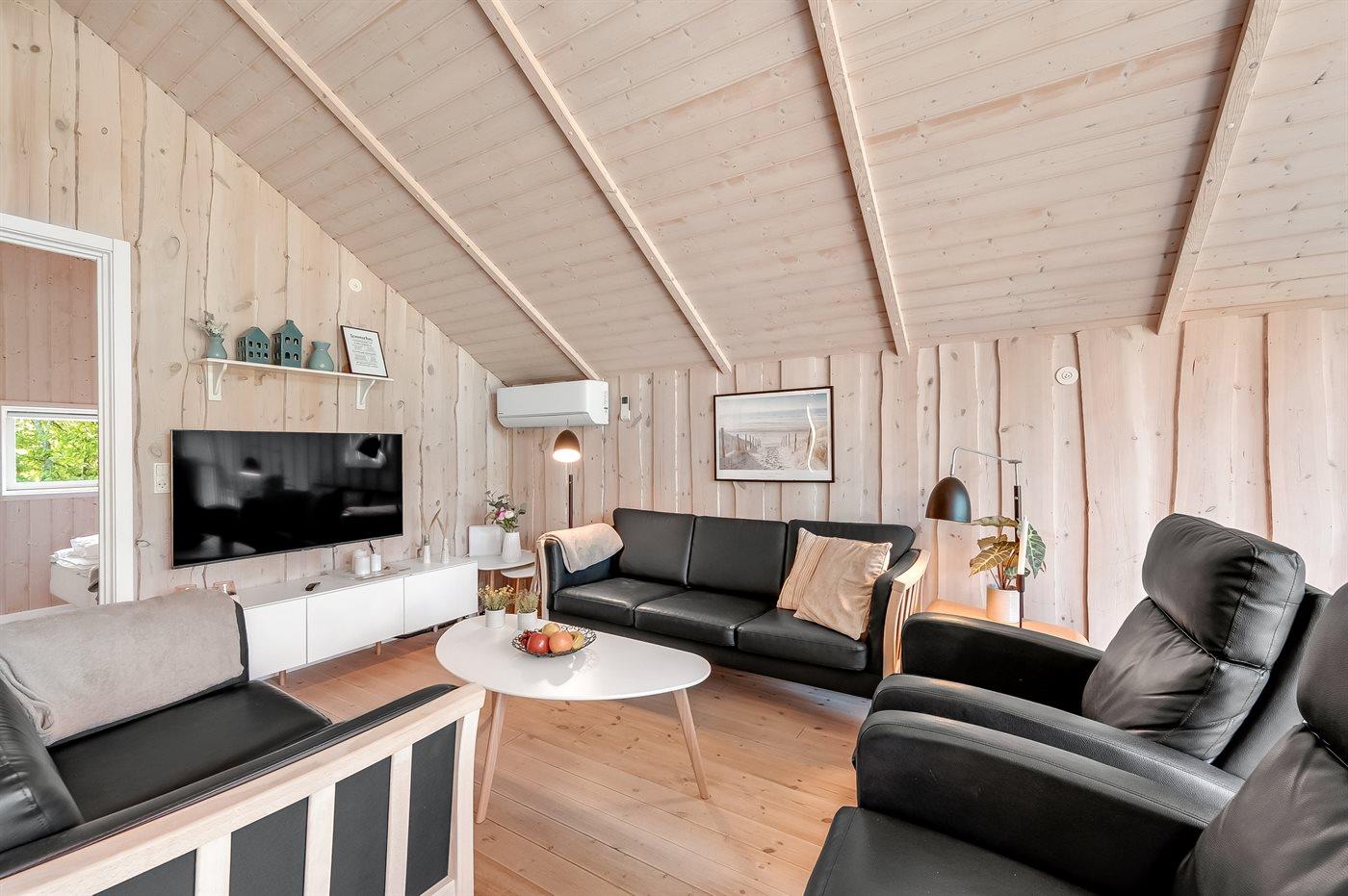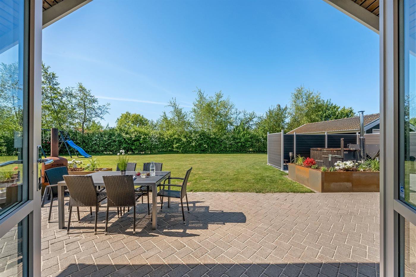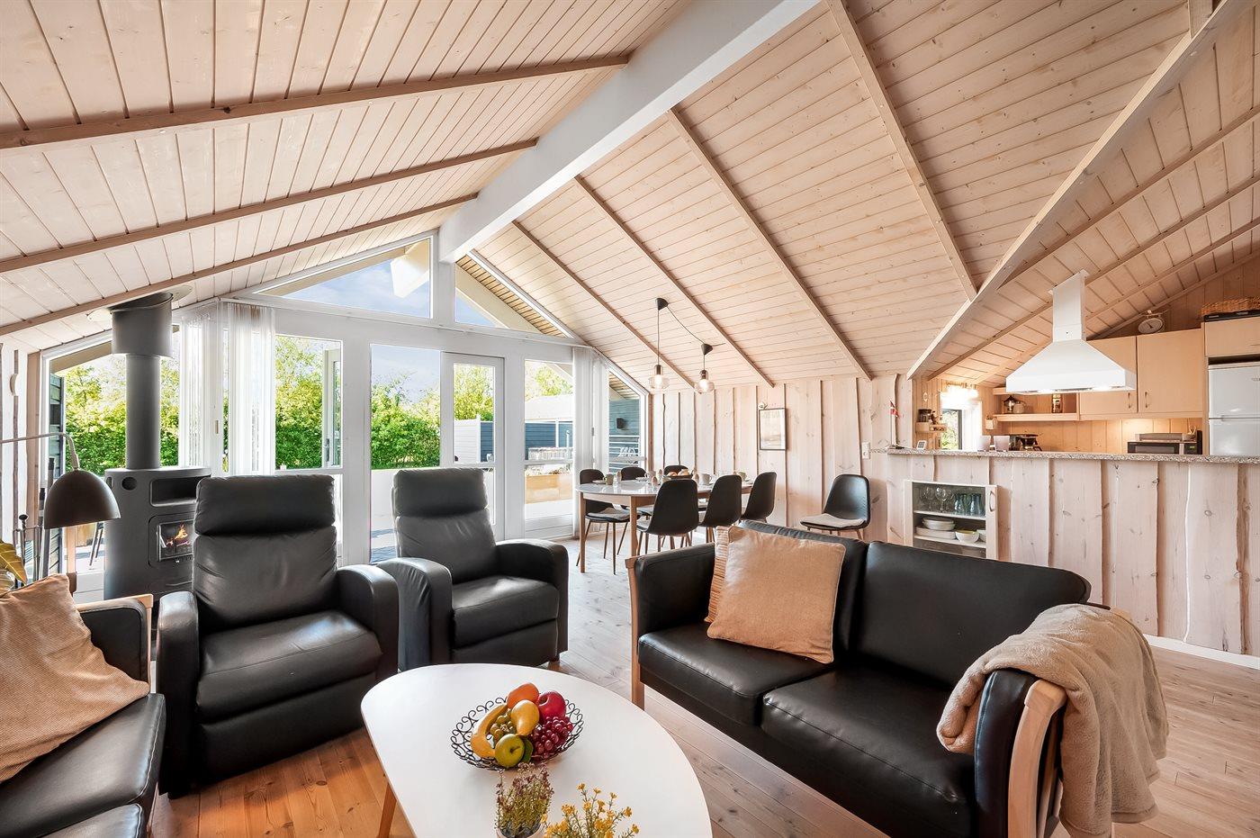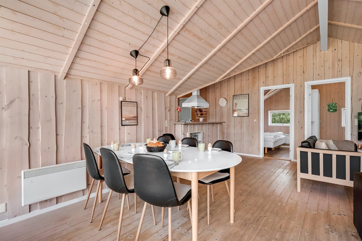 I det smukke køkken-alrum strømmer lyset ind gennem de store vinduespartier, hvorfra der også udgang til dejlige terrasser. Grunden er indhegnet, hvilket er helt perfekt for jer der har små børn eller hunden med på ferie - så er der her mulighed for at de kan leje frit og nyde den friske luft udenfor.