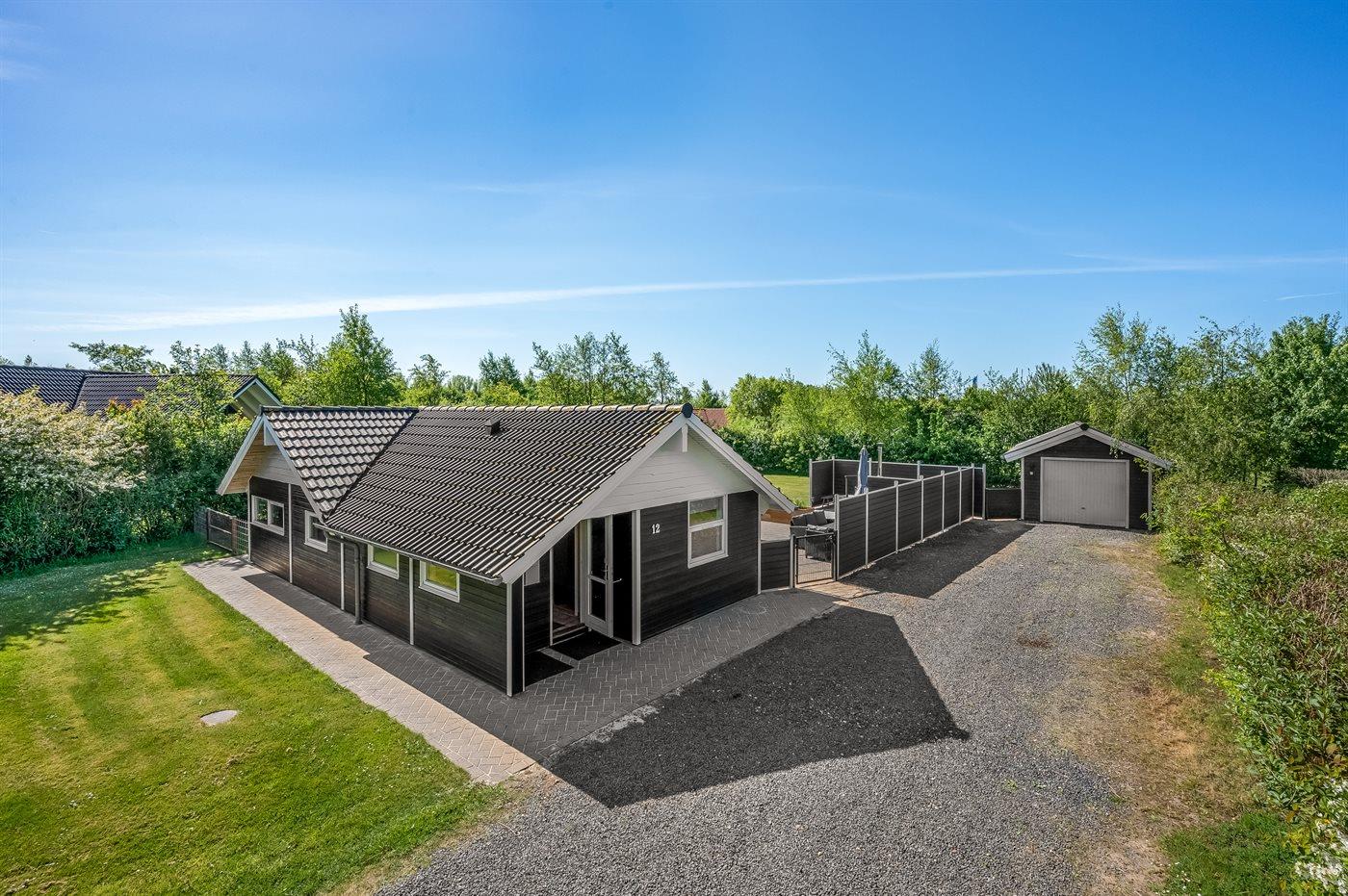 Ferieboligen er beliggende på en 1300 m² stor naturgrund. Grunden er indhegnet. Der er 7800 m til havet. Der er 1100 m til fjorden. Nærmeste forretning er beliggende i en afstand af 900 m. Til ferieboligen hører åbent terrasseareal. Gynge. Rutchebane. Der ligger en legeplads i en afstand af 50 m. Der er installeret stik til opladning af elbil. Type 2 stik. Med 11 kW ladeeffekt. Parkering ved ferieboligen.