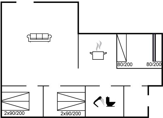 Der er i alt 3 soveværelser. Sovepladserne fordeler sig på: 4 sovepladser i dobbeltsenge. 1 soveplads i enkeltseng. 2 sovepladser i køjeseng.