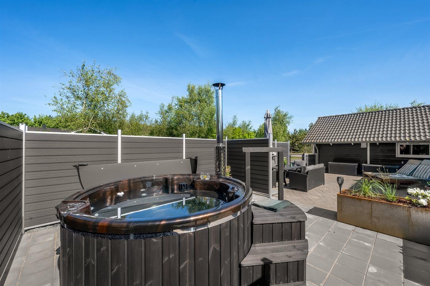 På den store terrasse kan I nyde udelivet og afslappende stunder i vildmarkskaret - en fantastisk afslappende oplevelse - både sommer og vinter. Omsluttet af det varme vand kan I slappe fuldstændigt af, og om aftenen er der frit udsyn til den smukke stjernehimmel.