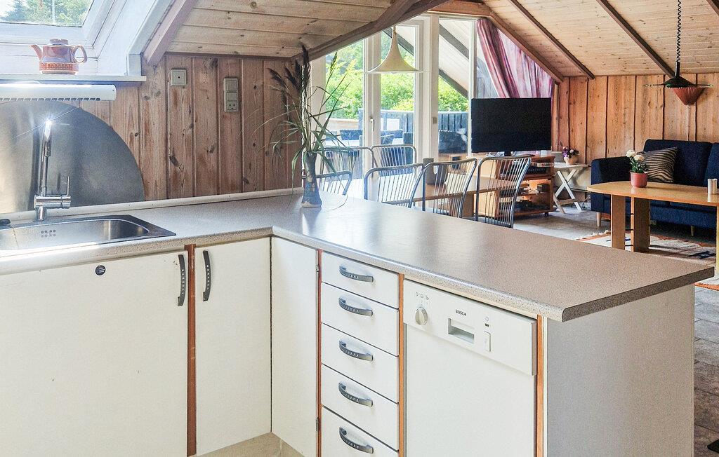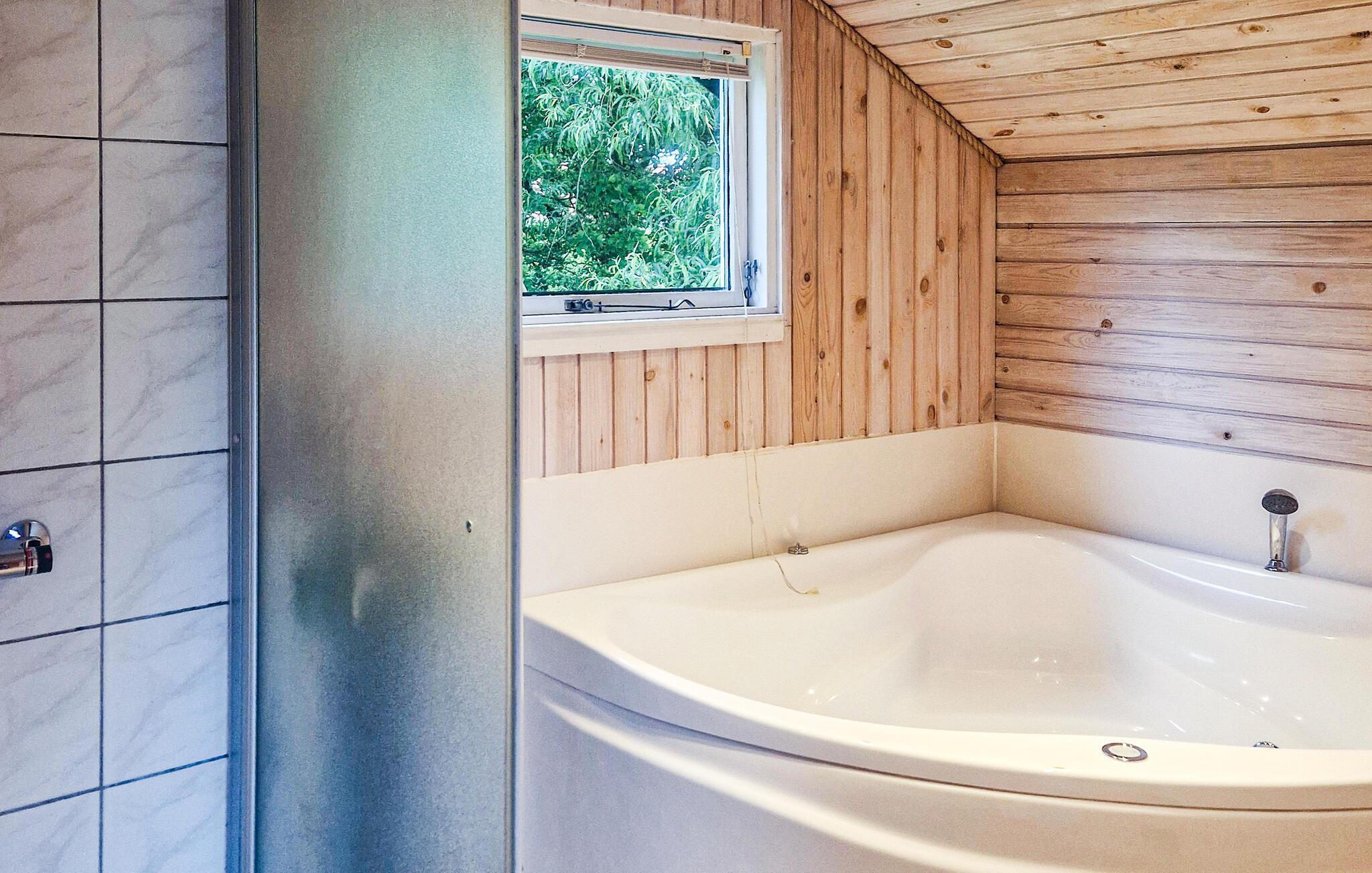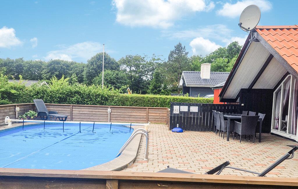 Ved Ringkøbing Fjord, der er et eldorado for surfere, ligger dette feriehus. Det er smagfuldt indrettet med bl.a. et anneks med gulvvarme, hvor spabadet, den ene af husets to brusekabiner og saunaen er placeret. Fra stuen er der udgang til en stor, åben terrasse med en 32 m2 udendørs swimmingpool, der opvarmes ved solfangeranlæg. Om aftenen er der mulighed for at oplyse poolen. På de kølige aftener kan varmen fra brændeovnen i stuen nydes.