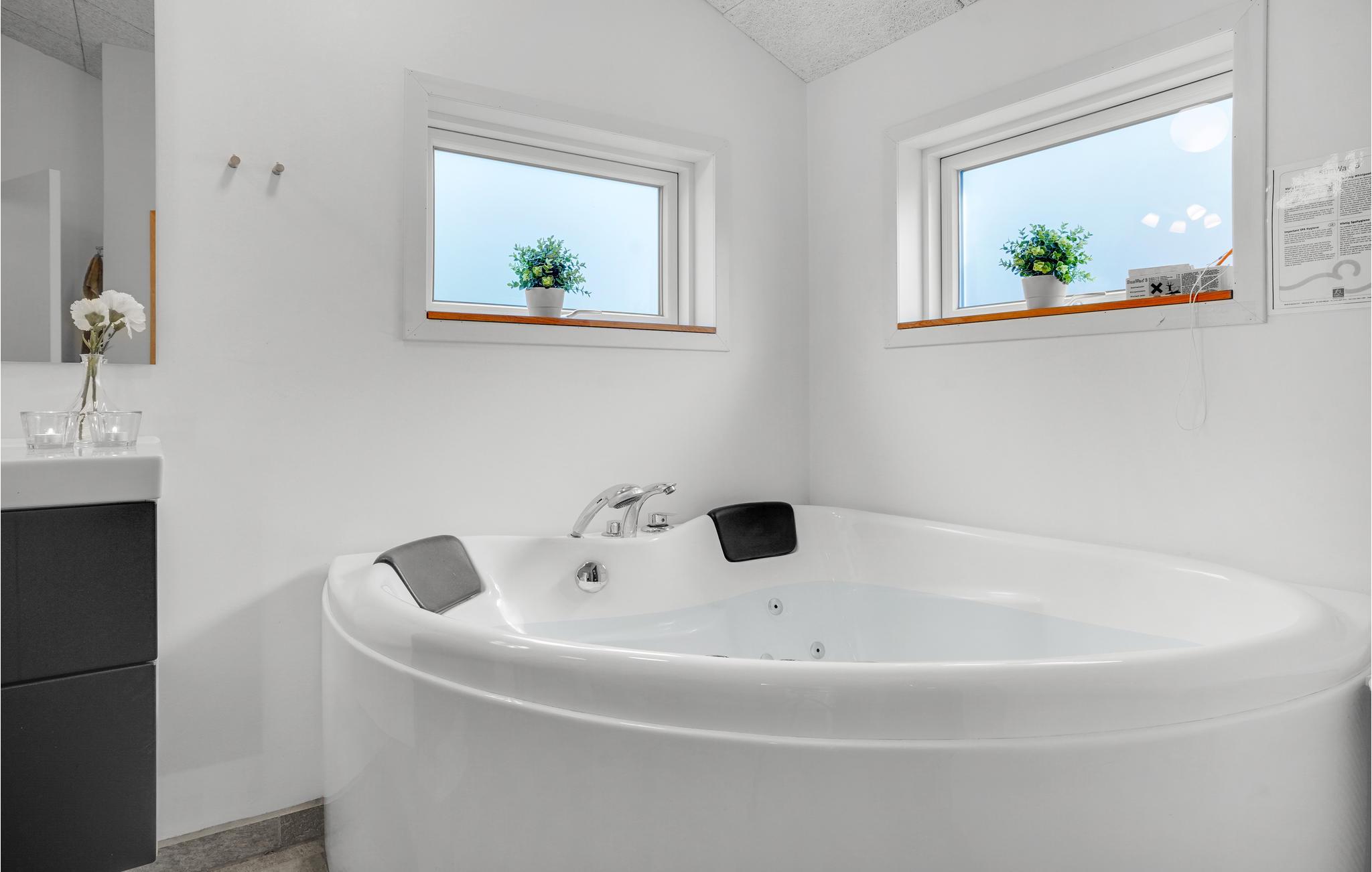 Velkommen til en velholdt, fredfyldt naturgrund, hvor dette lyse og smagfulde feriehus er placeret. Her sørger de store vinduer for at lukke lyset godt ind i den velindrettede bolig. Glæd jer til hyggelige måltider, hvor I kan planlægge jeres aktiviteter, forkæle jer selv med afslappende øjeblikke i saunaen eller spabadet og lytte til den stille knitren fra brændeovnen under hyggelige spilleaftener eller en afslappende læsestund.