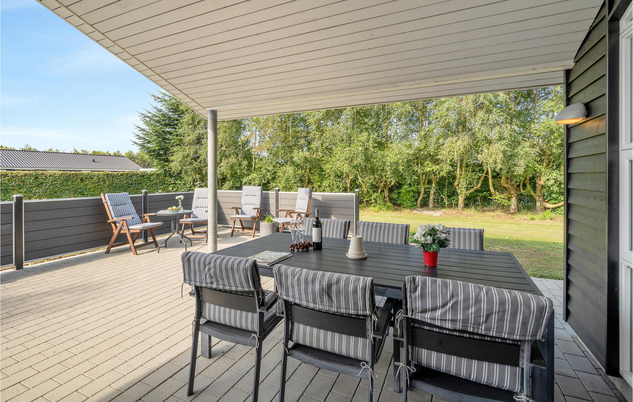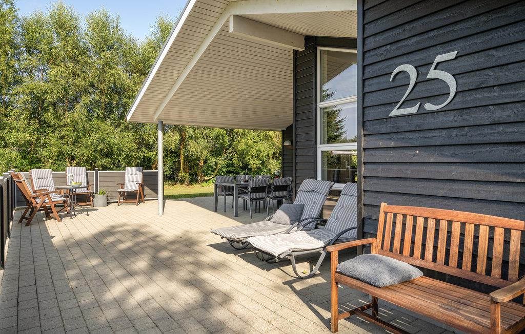 Den indbydende terrasse er udstyret med komfortable siddepladser, så I kan nyde morgenmaden udendørs på solrige dage og se børnene lege i den store have. Lad batterierne op i liggestolene og nyd jeres tid sammen med en grillmiddag.