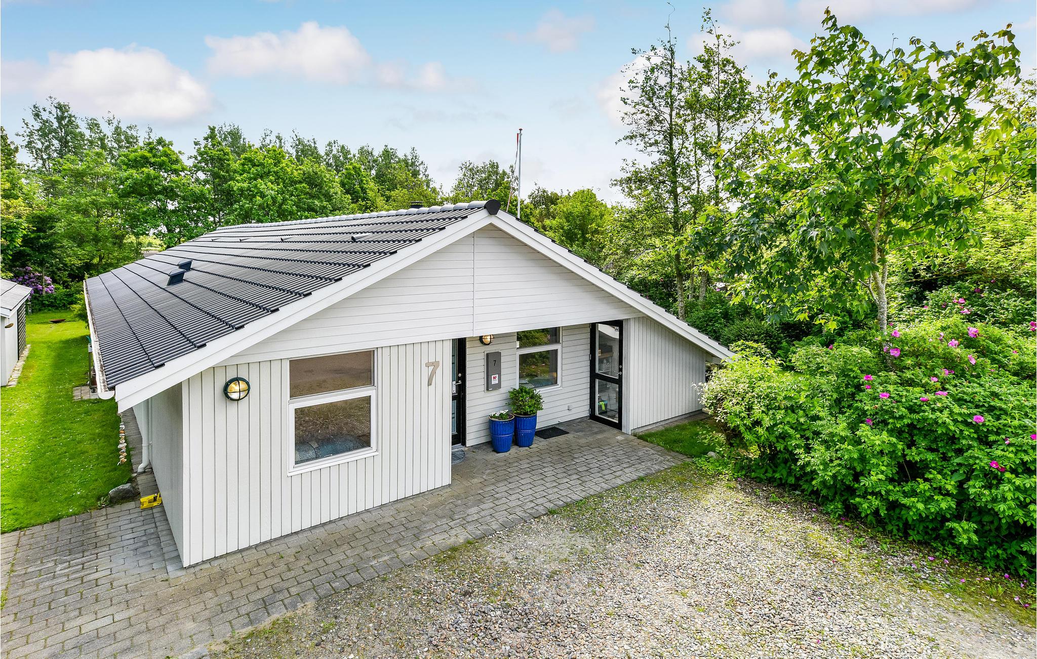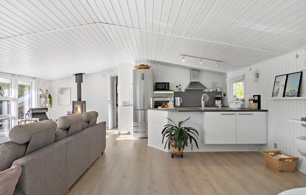 For enden af blind vej ligger dette hus med tre terrasser, den ene med grill og havemøbler. Huset er udstyret med energibesparende varmepumpe og aircondition. Stilfuld og åben indretning med store gladpartier, som sørger for dejligt lysindfald. Flotte og komfortable møbler i stuen, som ligger i åben forbindelse med det veludstyrede køkken; her er komfur/ovn, opvaskemaskine, køleskab og andre moderne faciliteter. Huset er desuden udstyret med vaskemaskine og tørretumbler, så I kan pakke let selv ved længere ophold.