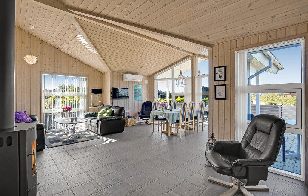 Yderst smagfuldt indrettet feriehus beliggende i et nyere sommerhusområde ved Bork Havn og Ringkøbing Fjord. Jeres samlingspunkt i huset bliver det hyggelig køkken/alrum, hvor brændeovnen skaber en god atmosfære. Fra de store panoramavinduer kan I følge med i børnenes leg på den store græsplæne. Efter en dejlig tur i saunaen og spabadet kan I sidde og slappe af på den gode og næsten lukkede terrasse. Feriehuset ligger tæt på den fælles legeplads. Gode surfmuligheder i fjorden. Ønsker I at opleve den barske natur ved vestkysten, ligger en af de bedste og hvideste badestrande mindre end 15 minutters kørsel fra huset.