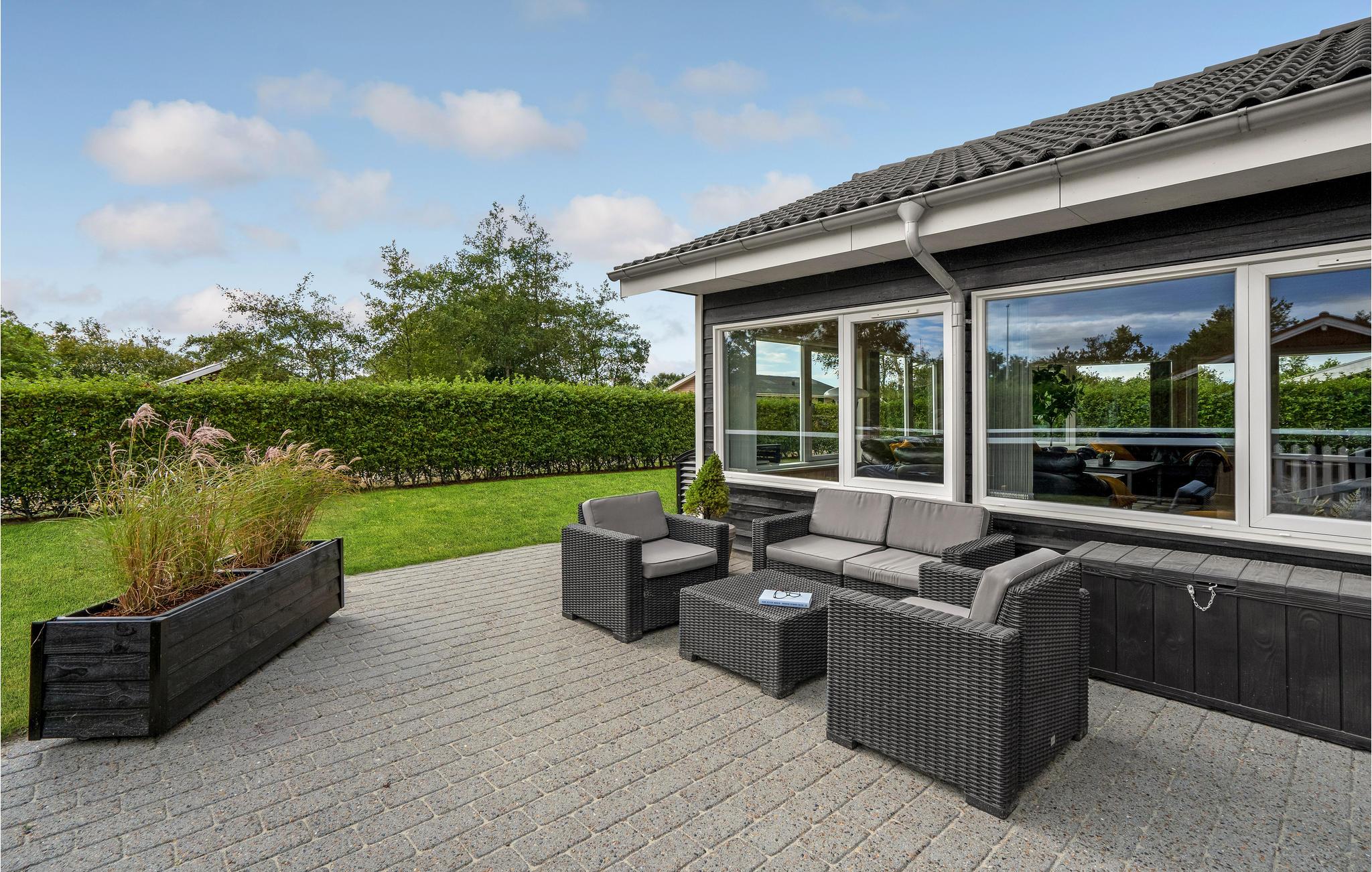 Fra huset er der udgang til både en stor delvis overdækket terrasse og en åben terrasse. Der er også spil og aktiviteter for store og små både inde og ude.