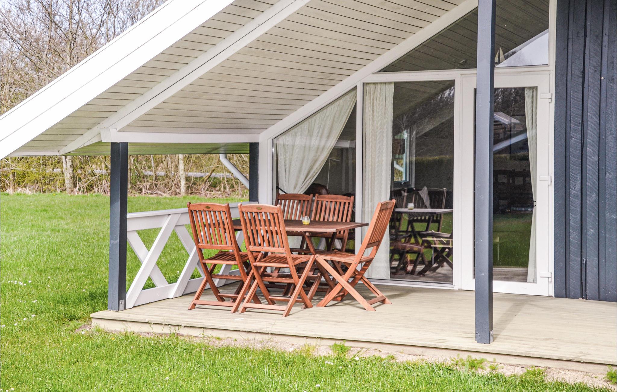 Flot og indbydende feriehus beliggende på en delvis lukket naturgrund i den ældre del af Bork Havn. Det er flot indrettet med et rummeligt køkken/alrum med brændeovn og et hyggeligt badeværelse med spabad og sauna. På den store grund er der en legeborg og aktiviteterne kan følges fra den delvis overdækkede terrasse. Huset ligger i gåafstand til områdets bedste surfstrande samt en sandstrand ved den hyggelige Ringkøbing Fjord. Området byder på flere naturstier og en mindre lystbådehavn.