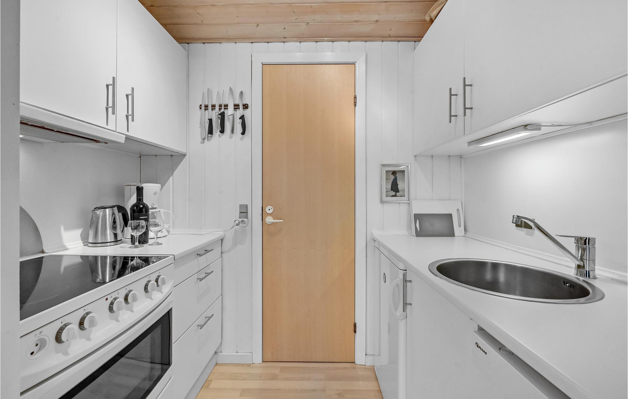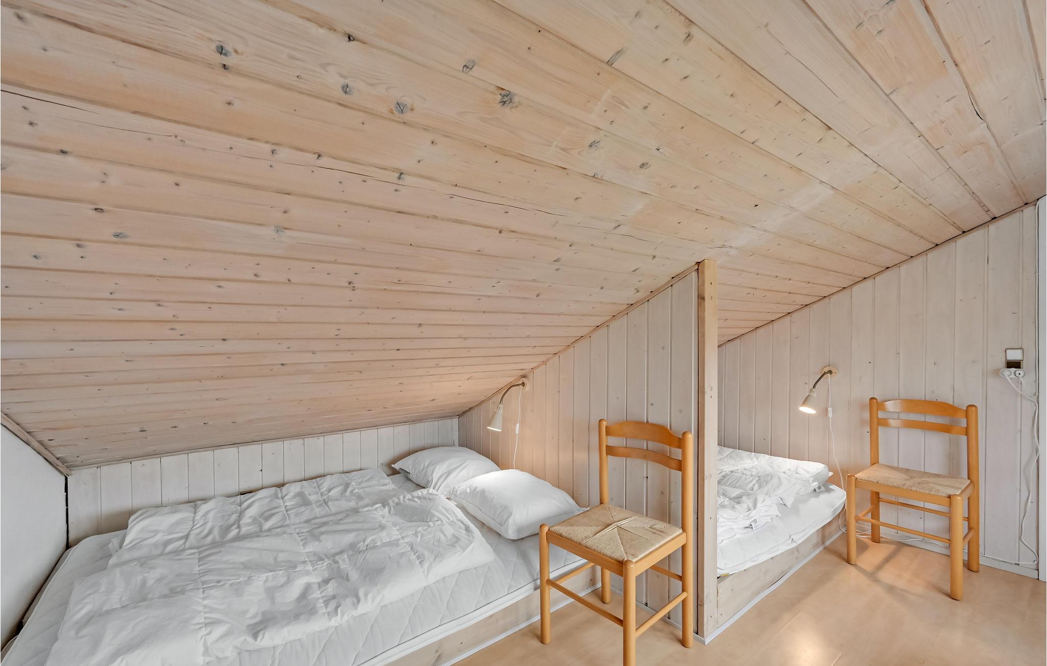 Lejligheden indeholder et hyggeligt køkkenalrum med TV, et godt soveværelse med 2 enkeltsenge samt badeværelse med bruser. På 1. sal er der 2 gange dobbeltsenge på gulvet - adskilt med væg.