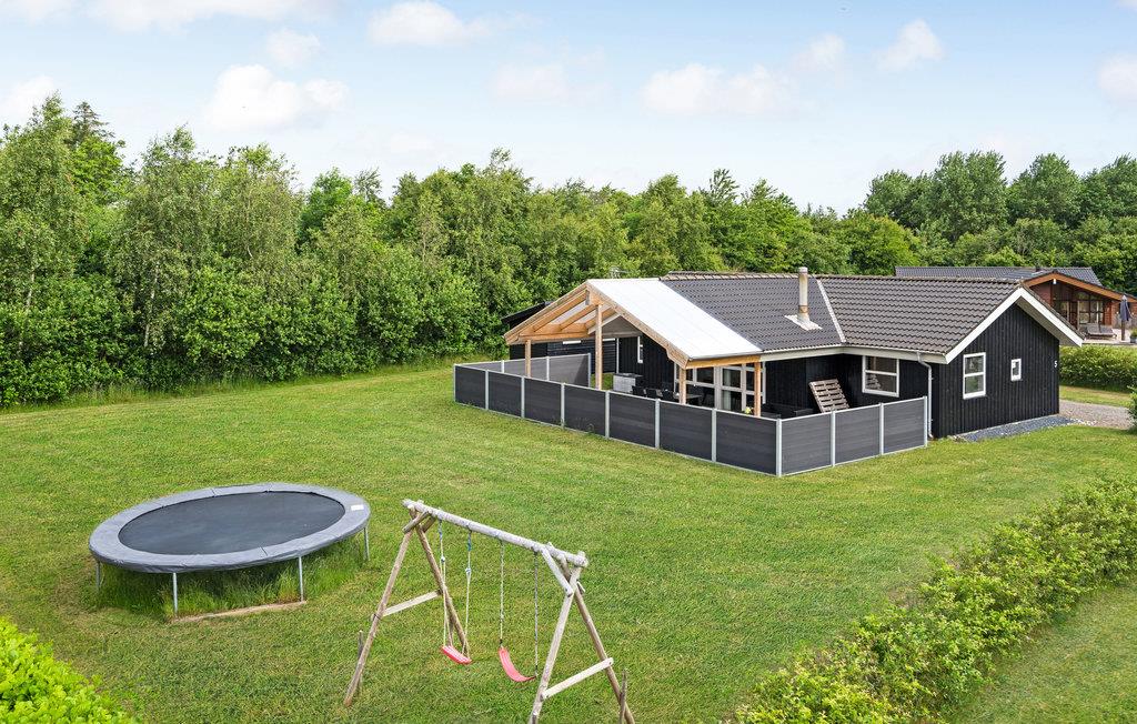 Hold en skøn ferie i dette skønne feriehus, som er komfortabelt indrettet. Der er gode faciliteter, så I kommer I ikke til at mangle noget, og så er huset lyst og behageligt indrettet. Glæd jer til at samles om hyggelige aktiviteter i aftentimerne, mens I lytter til ilden, der knitrer i pejsen. Spabadet og saunaen er gode steder at slappe af efter en lang dag på farten. I haven er der legeredskaber til børn, så der er lagt op til, at alle får det sjovt.