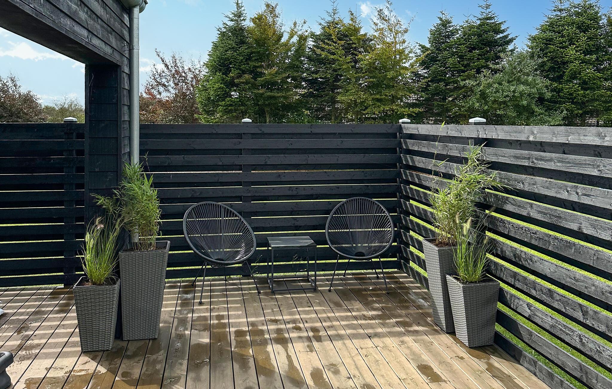 En kæmpe terrasse omgiver en stor del af huset, så I kan følge solen gennem dagen, nyde feriens måltider i den friske luft og holde hyggelige grillaftener. Her finder I også et af husets højdepunkter, nemlig det udendørs spabad, hvor man kan sætte sig godt til rette med en drink om aftenen. Huset ligger på en kæmpestor naturgrund med mere end rigeligt plads til børns leg og aktivitet, og hvor jeres hund(e) også kan boltre sig.