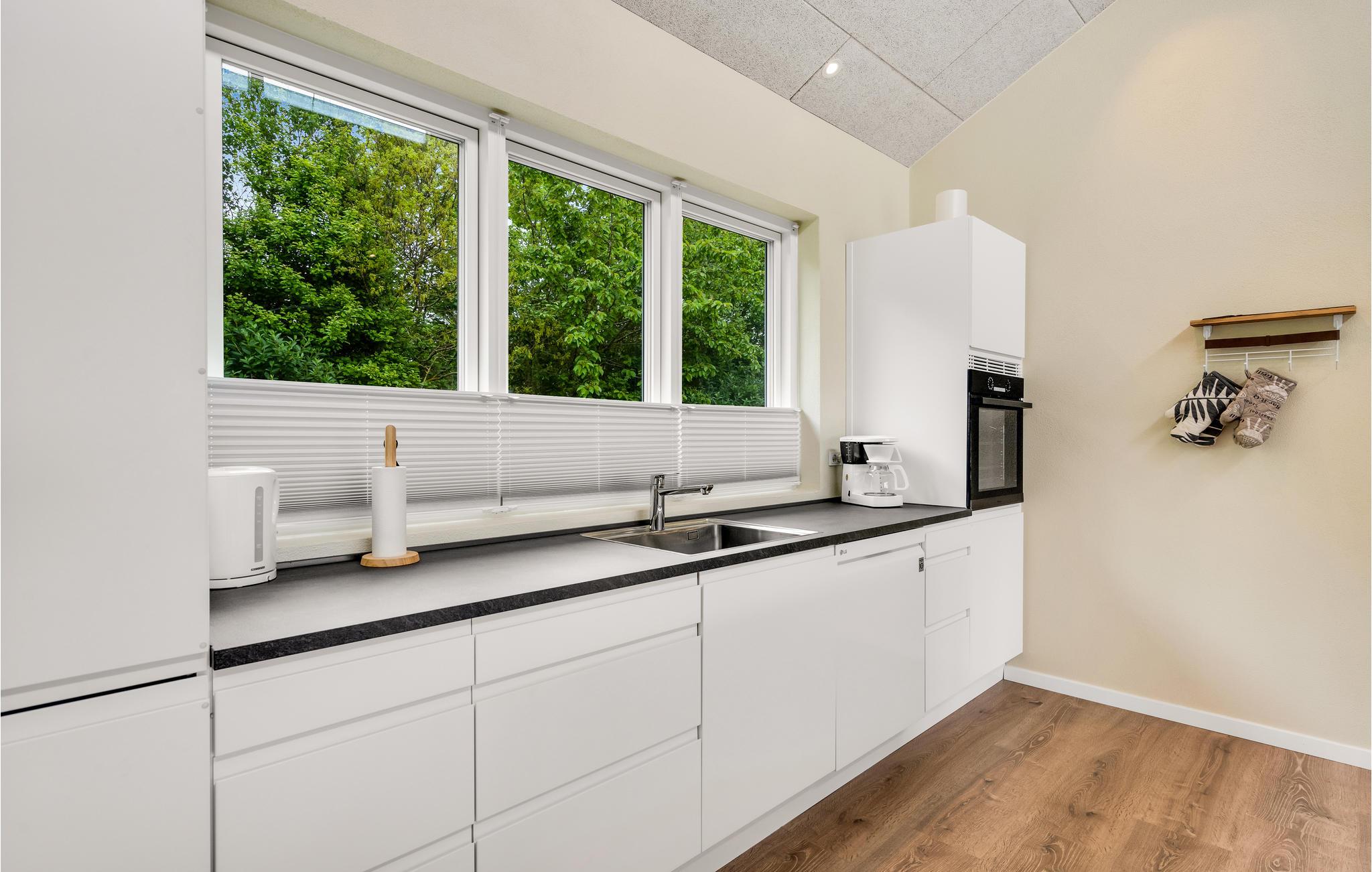 Feriehuset har gulvvarme over det hele og er et ferieparadis for en stor familie. Lav pandekager sammen med børnene, spil brætspil ved spisebordet og arrangér aftener med gæt og grimasser og forfriskninger.