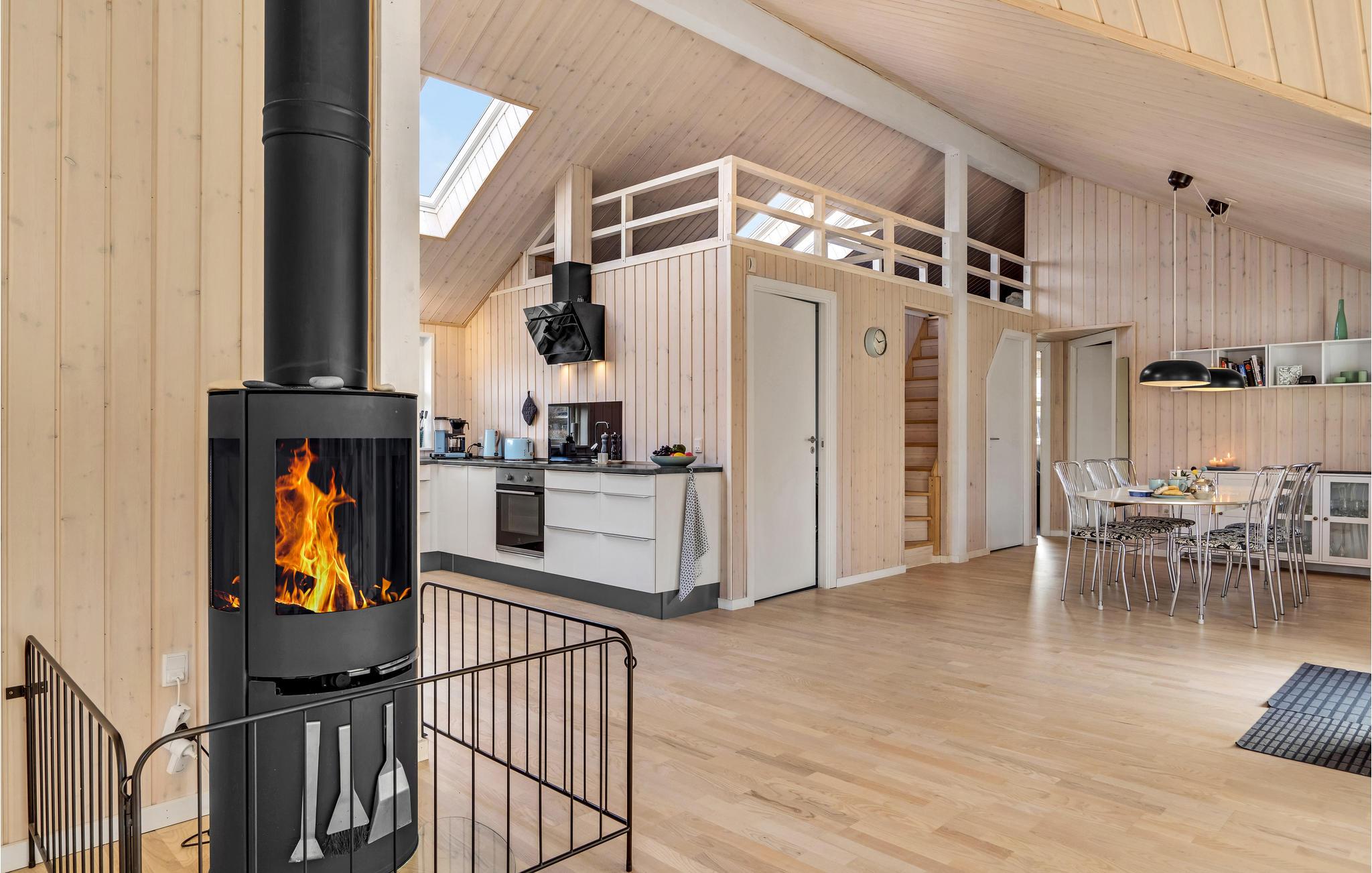 Velkommen til dette dejlige feriehus, som ligger på en åben, grøn grund en lille kilometer fra Ringkøbing Fjord. Boligen er lys og behagelig, så glemmer man hurtigt alt om den travle hverdag. Efter en lang dag på farten kan I nyde samværet i det hyggelige hus, som har store vinduer ud mod haven. Læn jer godt tilbage i stuens bløde møbler og snak om dagens bedste oplevelser, mens ilden knitrer i brændeovnen.