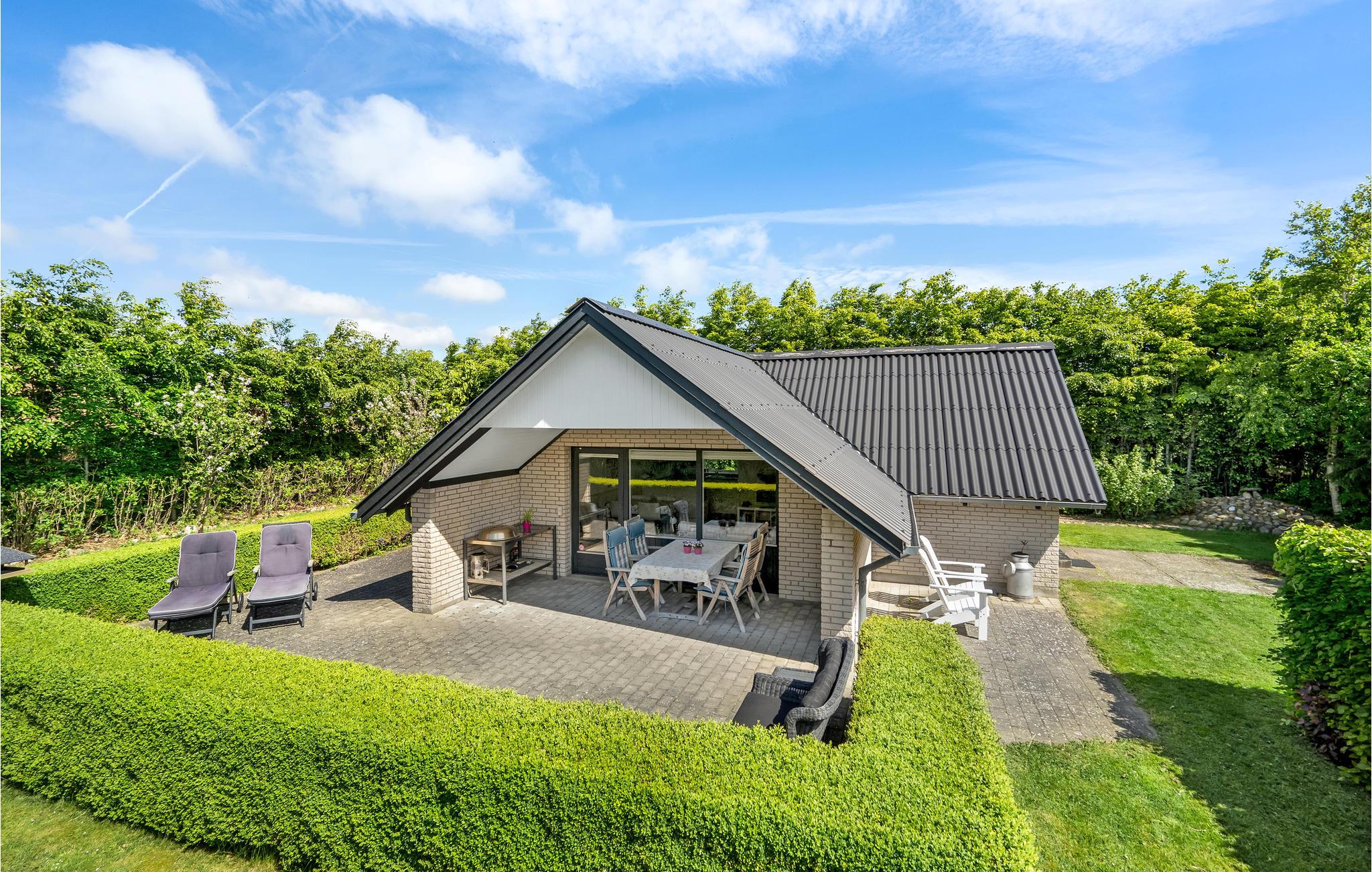 Hyggeligt feriehus i Bork Havn tæt ved Ringkøbing Fjord med strand, terrasse og charmerende landstil.