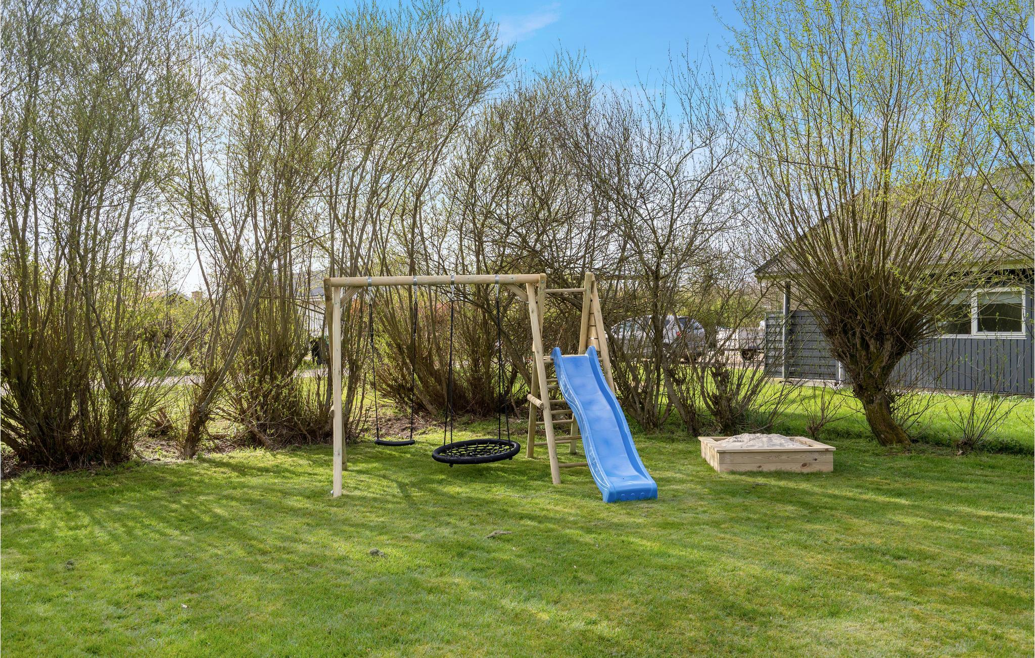 Velkommen til dette velindrettede feriehus, hvor hele familien kan få en skøn pause fra hverdagen. Indenfor finder I gode faciliteter, der indbyder til at lave mad sammen i køkkenet eller tilbringe hyggelige aftener med brætspil eller en god serie i sofaen. Når solen er fremme, kan I vælge mellem to terrasser. Om morgenen kan I sætte jer til rette ved husets indgang, mens I kan nyde eftermiddags- og aftensolen på den overdækkede terrasse i haven, hvor I også kan dække op til den store grillmiddag. Jeres børn kommer ikke til at kede sig udendørs, for der er både gynger, rutsjebane og en sandkasse.