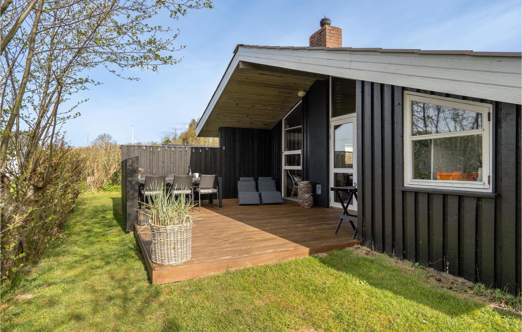 Feriehus ved Ringkøbing Fjord med to terrasser, legeplads og tæt på strand og Bork Havn.