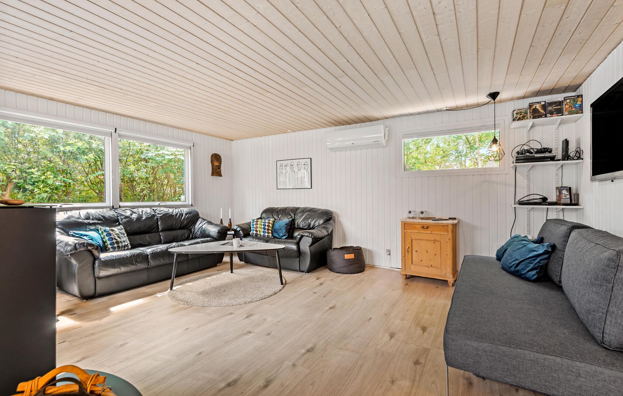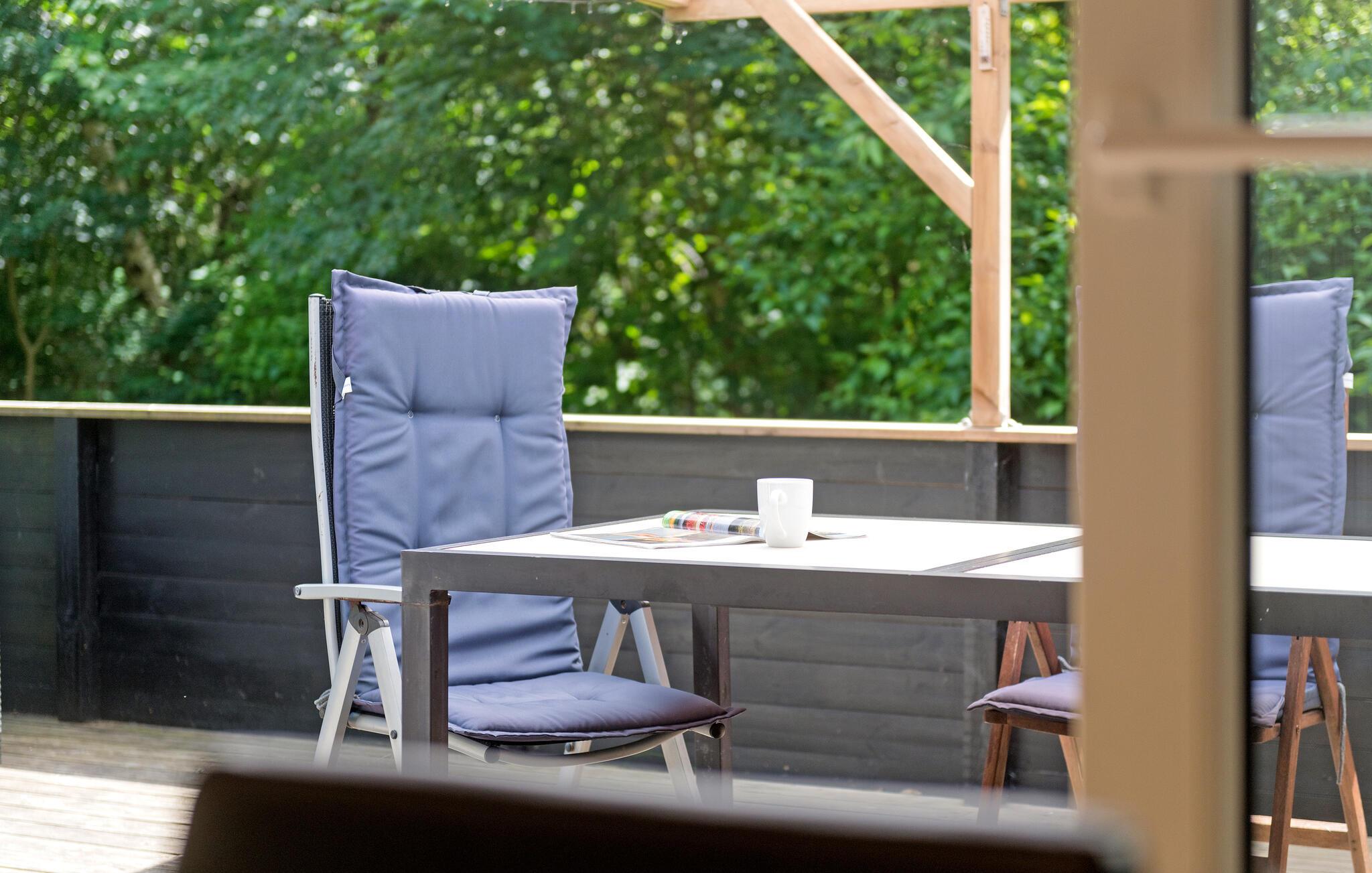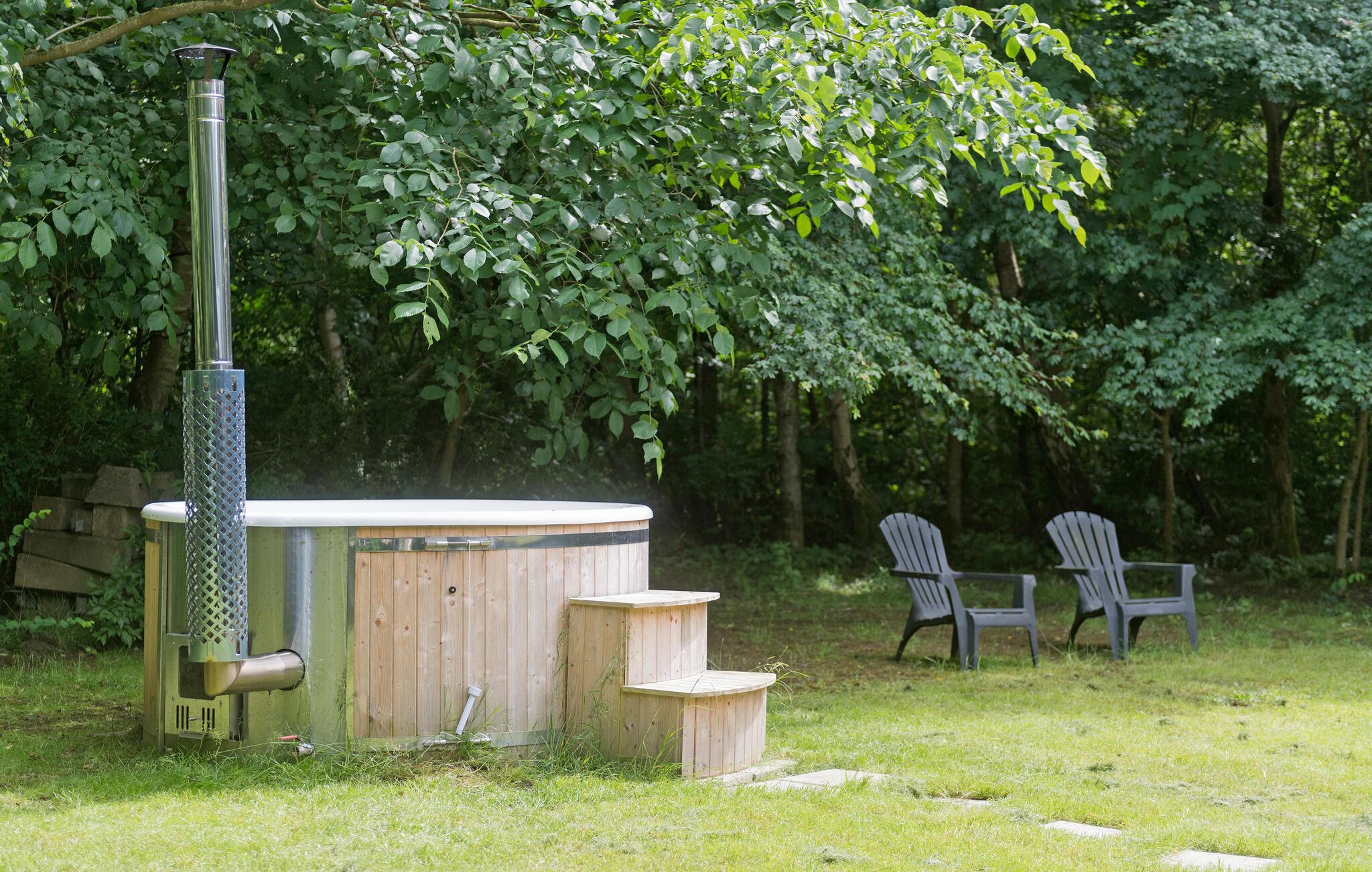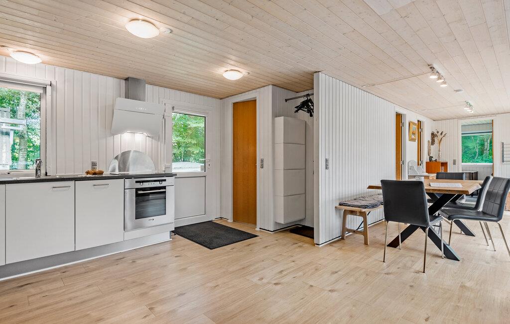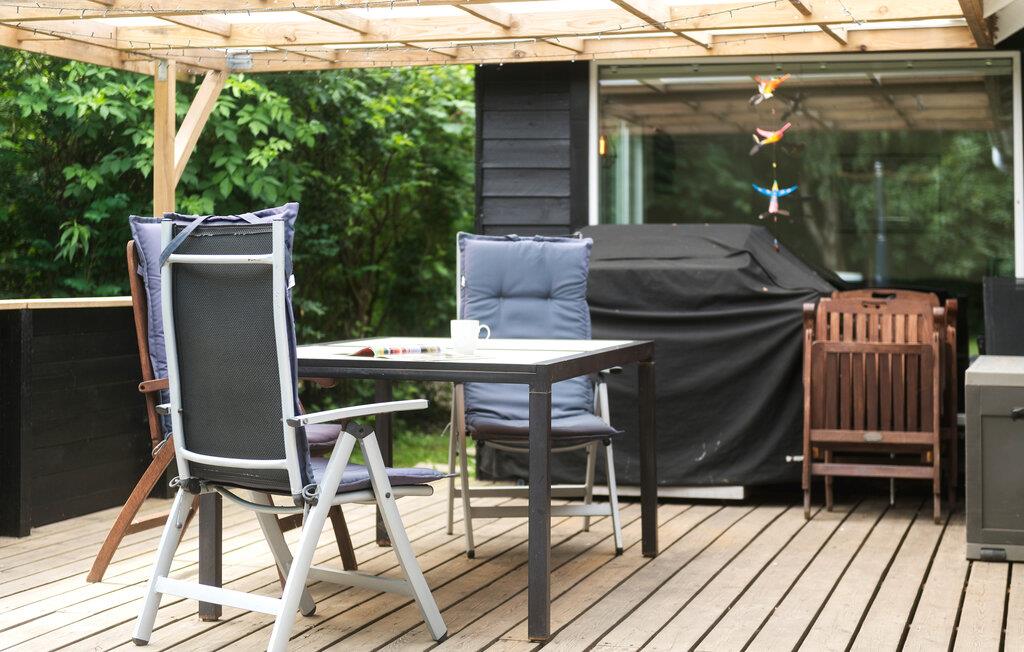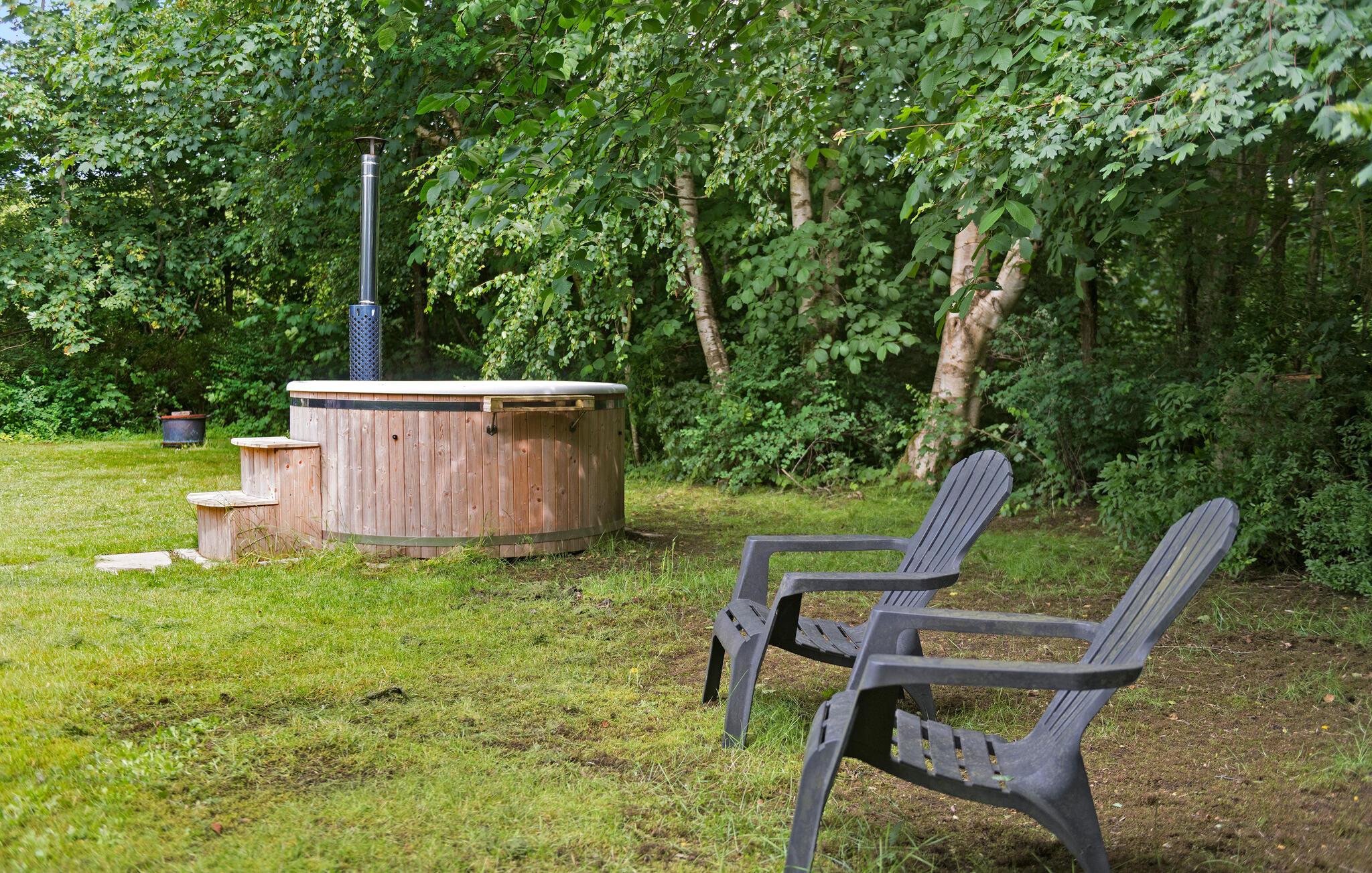 Slap af sammen med familien i dette praktiske og behagelige feriehus, der byder på alt, hvad I behøver for en ubekymret ferie. Her vil I føle jer hjemme. Hyg jer ved brændeovnen, og nyd nogle skønne feriedage med god mad og spil ved spisebordet. Herfra kan I træde ud på den store og overdækkede terrasse. Nyd roen i den smukke, lukkede have, og slap af under åben himmel i vildmarksbadet.