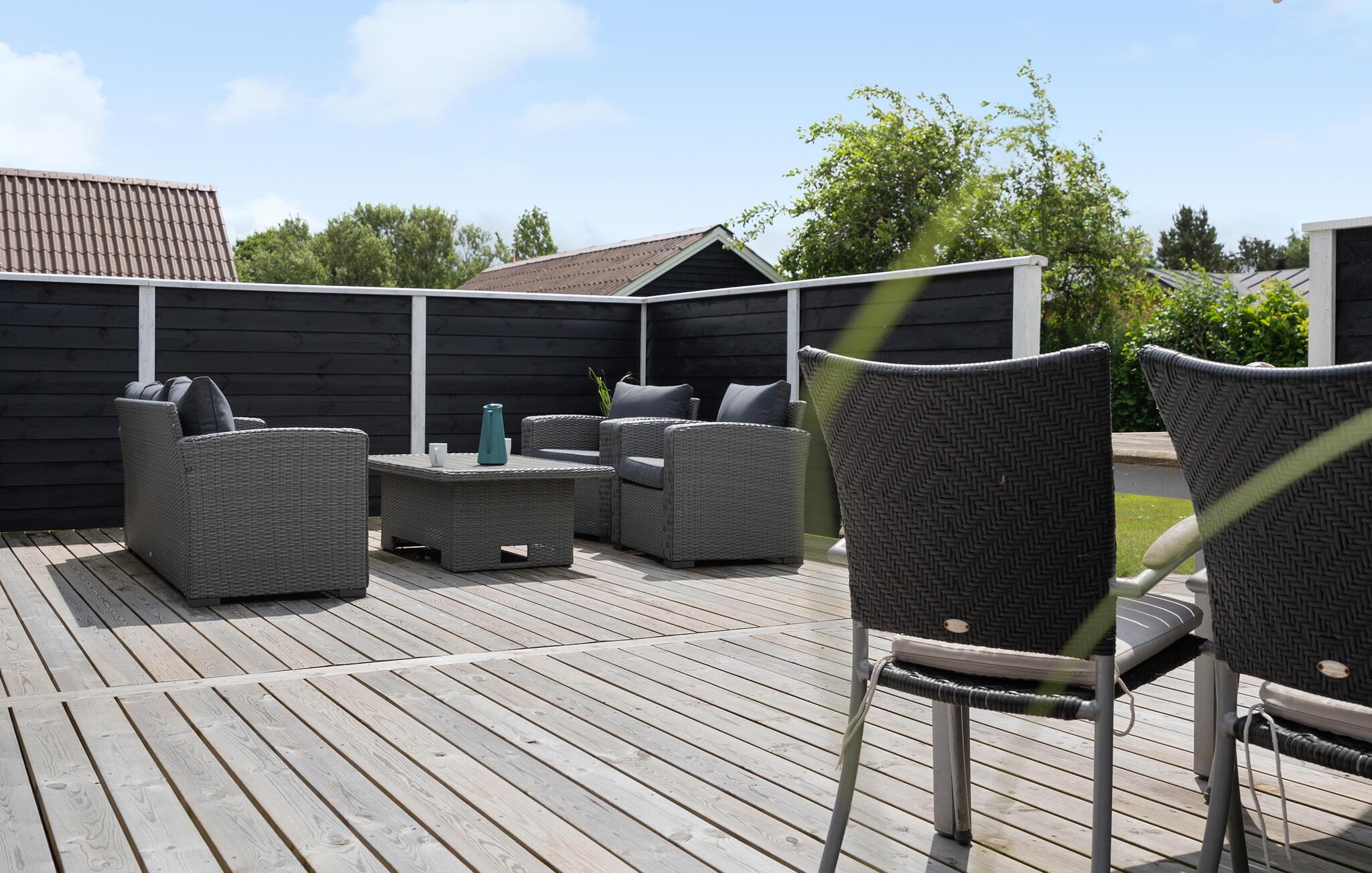 På solrige dage er jeres vind- og læbeskyttede terrasse det ideelle sted til at nyde morgenmaden under åben himmel. Lad børnene lege og boltre sig på den store græsplæne, og tænd op i grillen.
