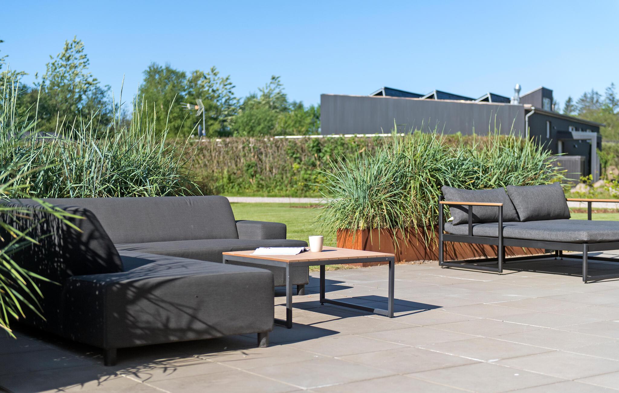 Når solen skinner, kan I nyde den fra morgen til aften på den rummelige terrasse eller i haven, hvor børnene får god plads at boltre sig på. Efter en herlig dag ved stranden eller på udflugt er der få ting, der slår en tur i vildmarksbadet under stjernerne med en god drink.