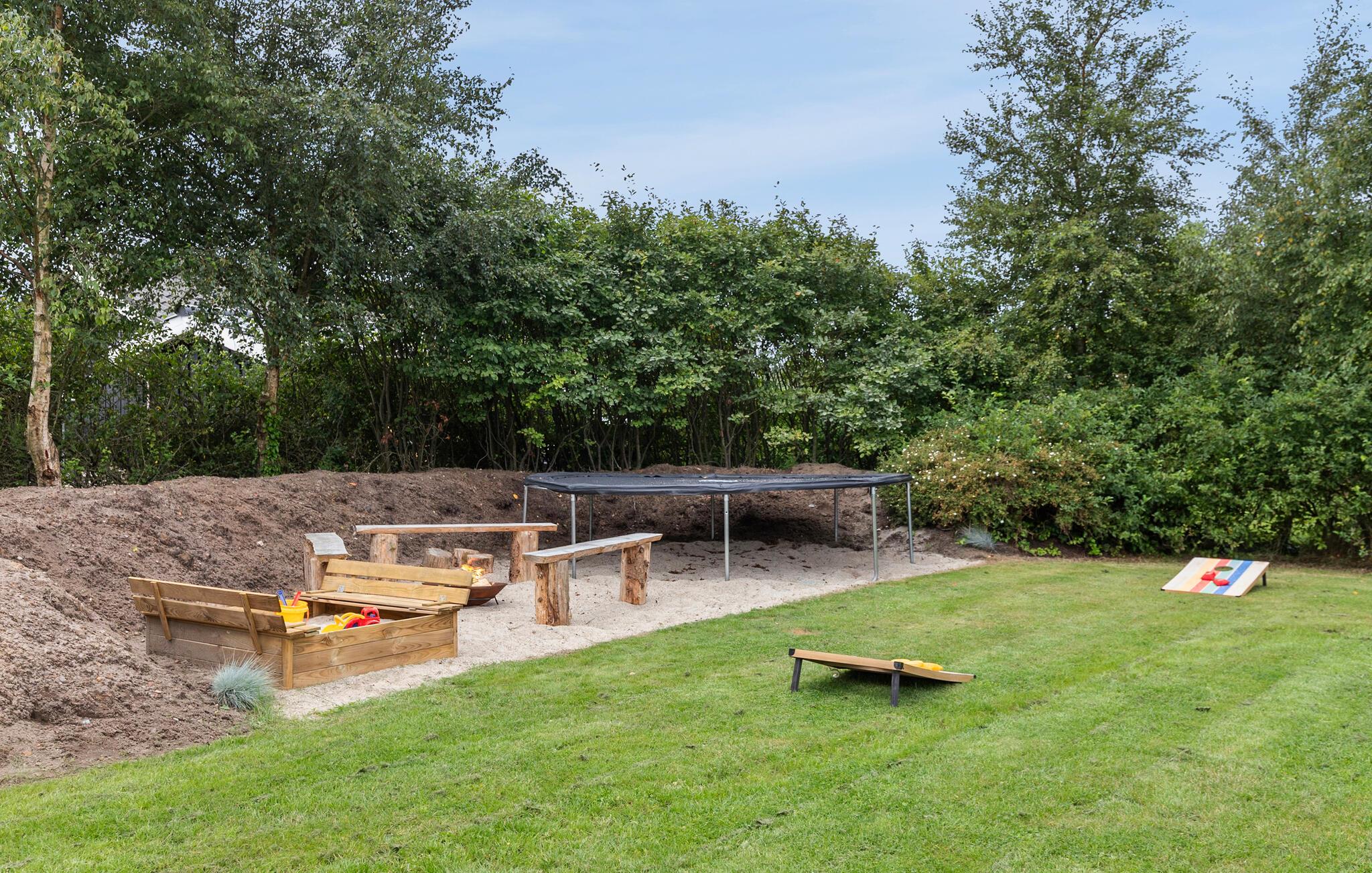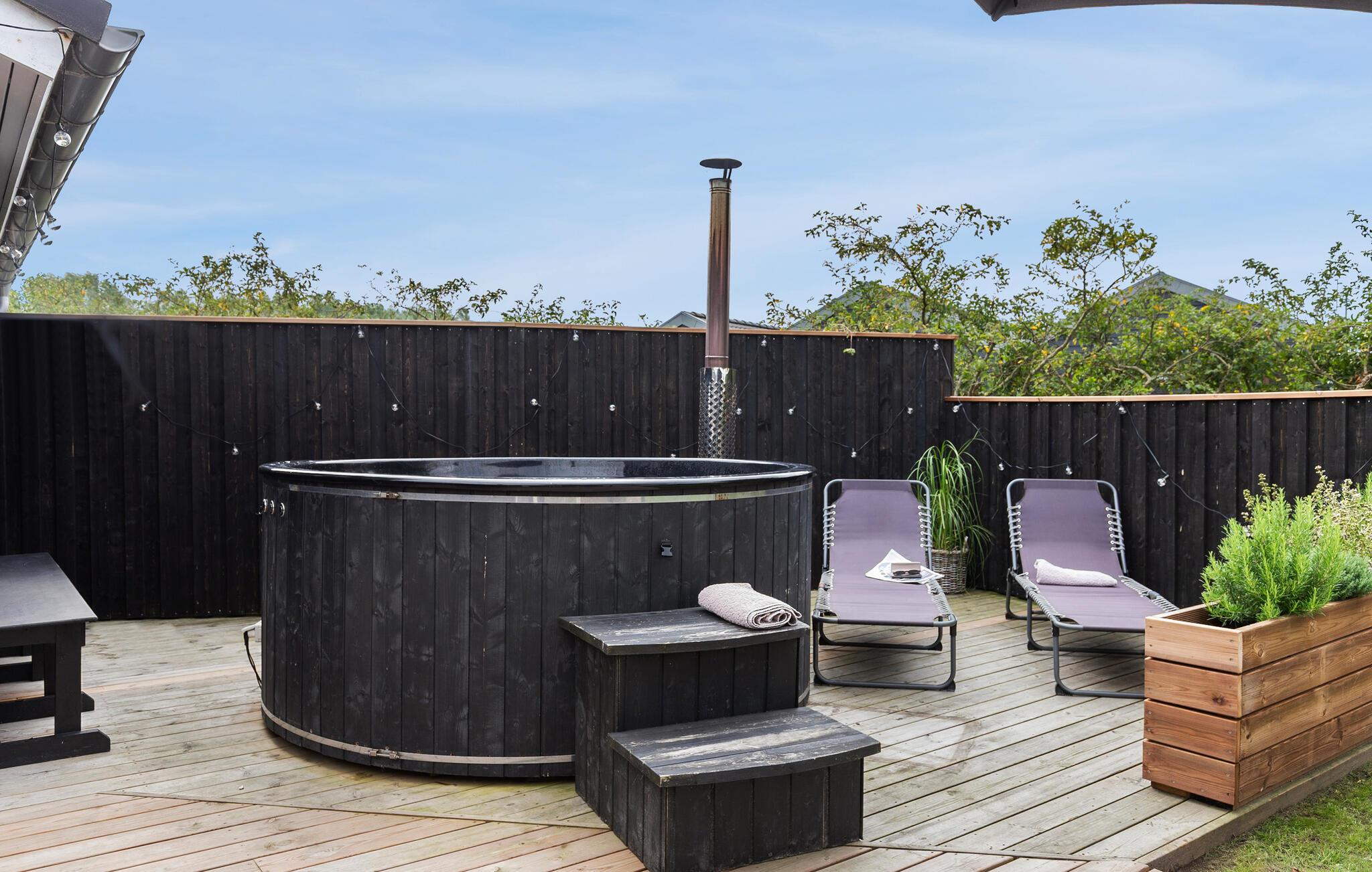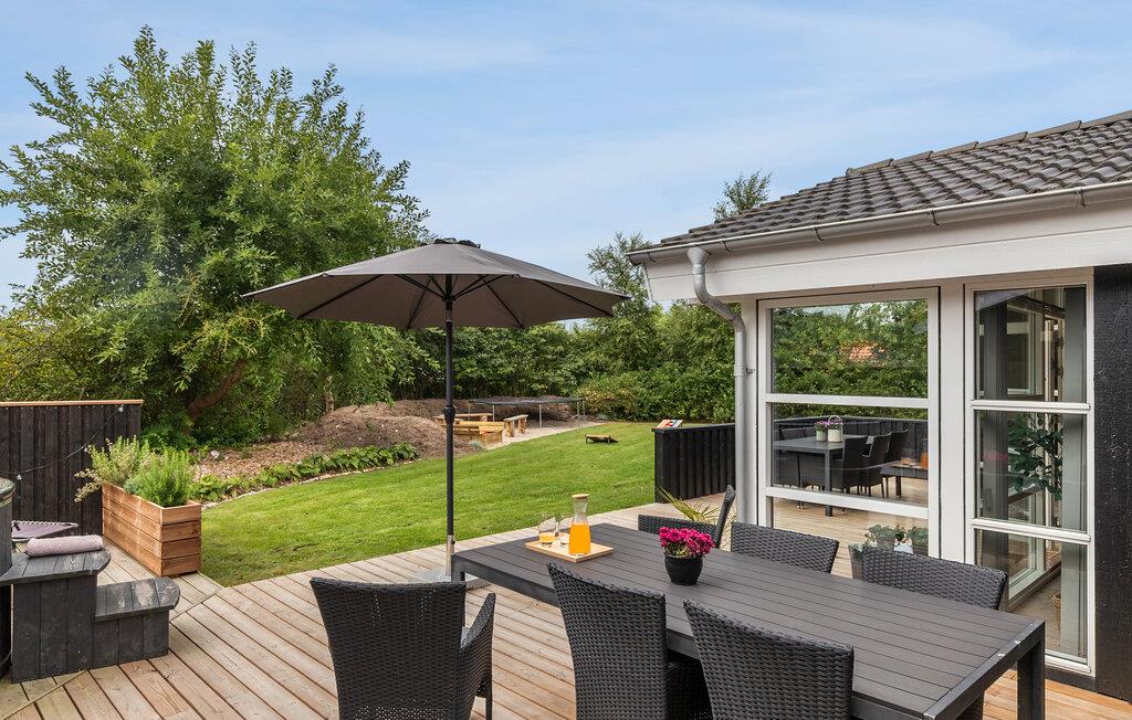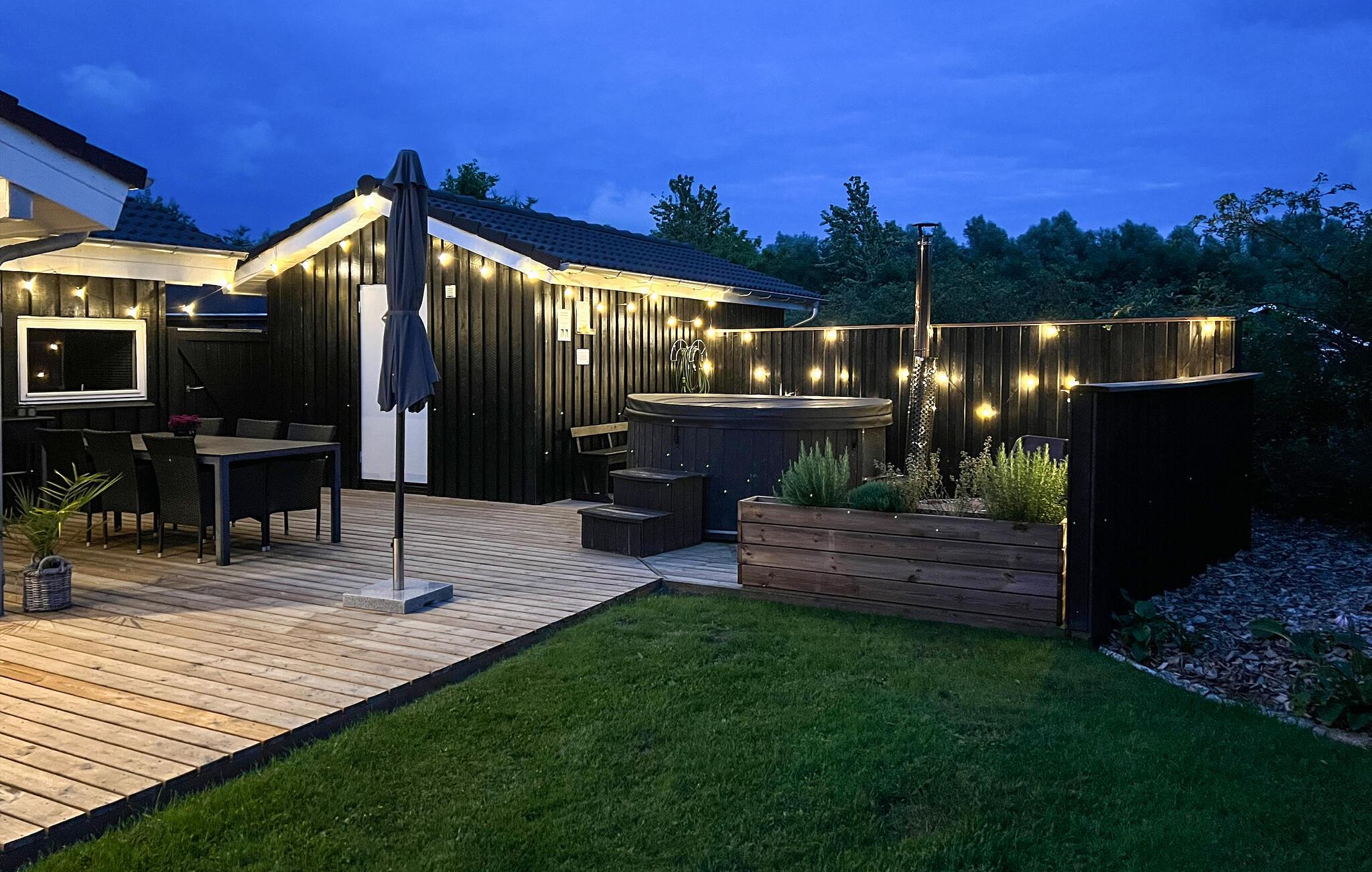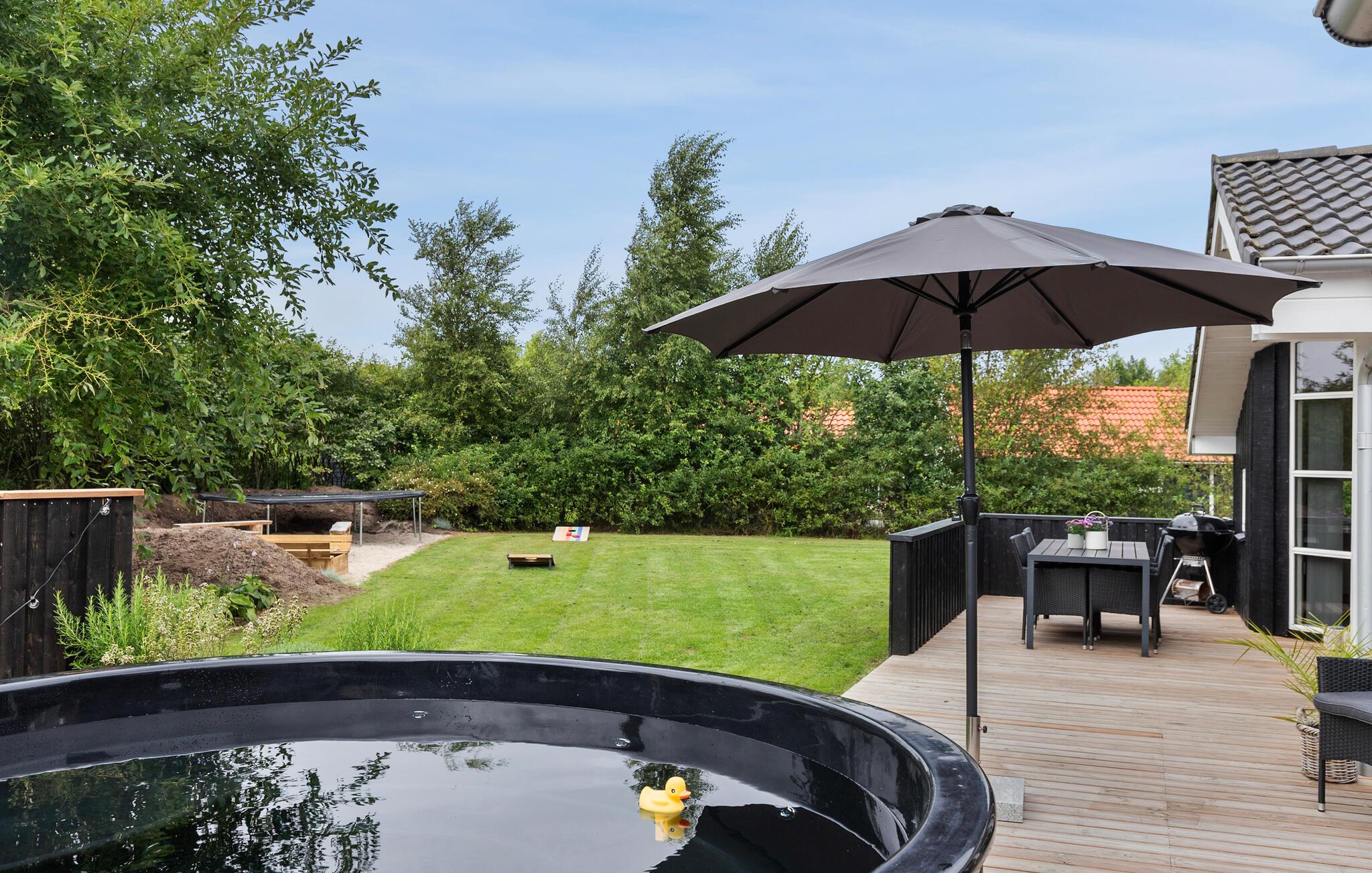 Gå ud på den rummelige træterrasse. Slap af i udendørsspabadet, nyd ferietiden på liggestolene, eller nyd en drink ved det overdækkede spisebord. Den velholdte have byder på masser af plads til leg. Jeres børn vil helt sikkert glæde sig over trampolinen og sandkassen. Om aftenen inviterer bålstedet jer til at slappe af sammen.