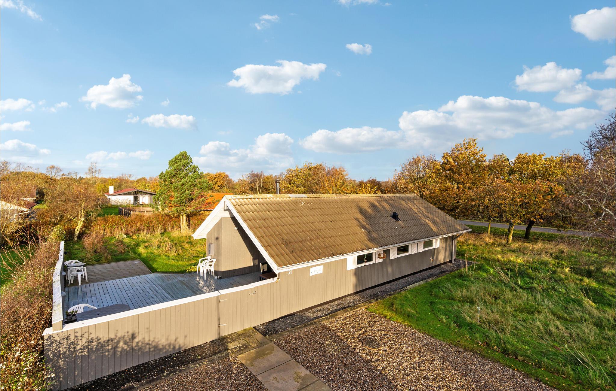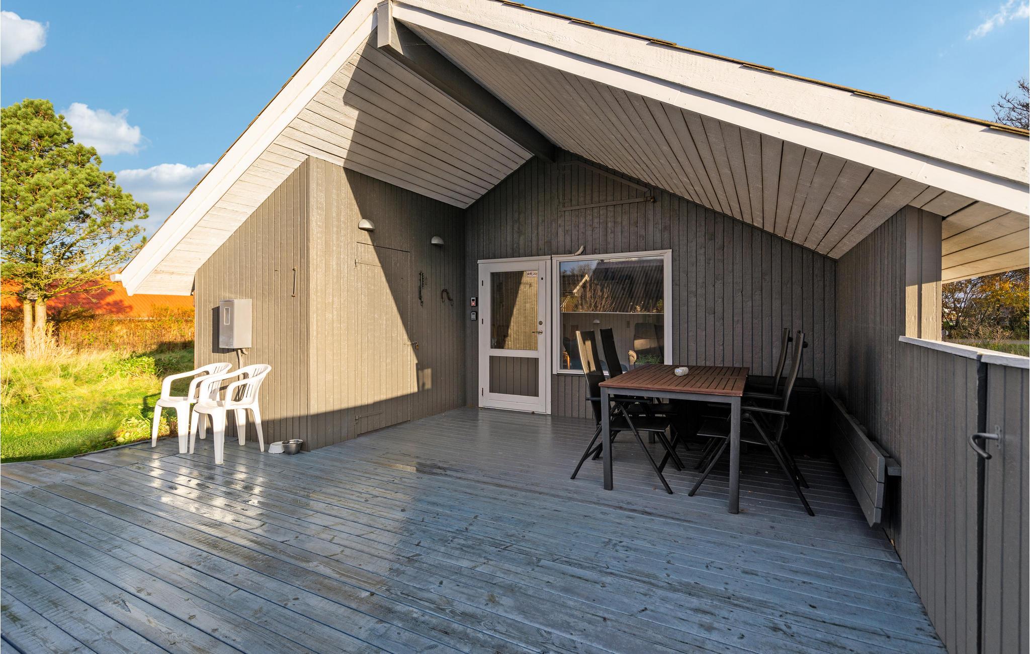 Hyggeligt træhus med brændeovn, stor terrasse og tæt på Ringkøbing Fjord i Bork Havn.