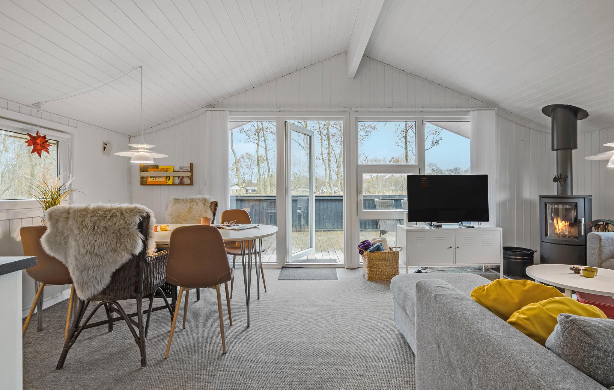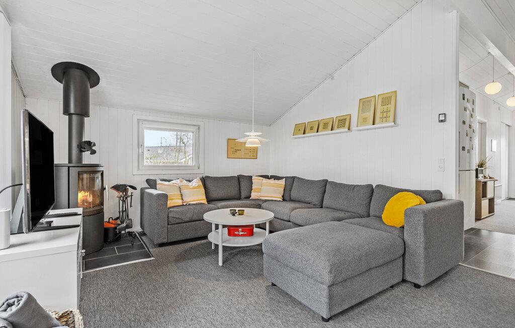 Dette klassiske feriehus danner den perfekte ramme om en afslappende ferie. Med sit lyse indre, en hyggelig indretning og en brændeovn inviterer det til afslappende stunder på sofaen. Begynd dagen med en lækker morgenmad, tilbered måltider i det veludstyrede køkken, og nyd dem på terrassen. Om aftenen kan I forkæle jer selv med en tur i saunaen. Mens børnene leger i haven, kan I afslutte dagen med en hyggelig grillaften.