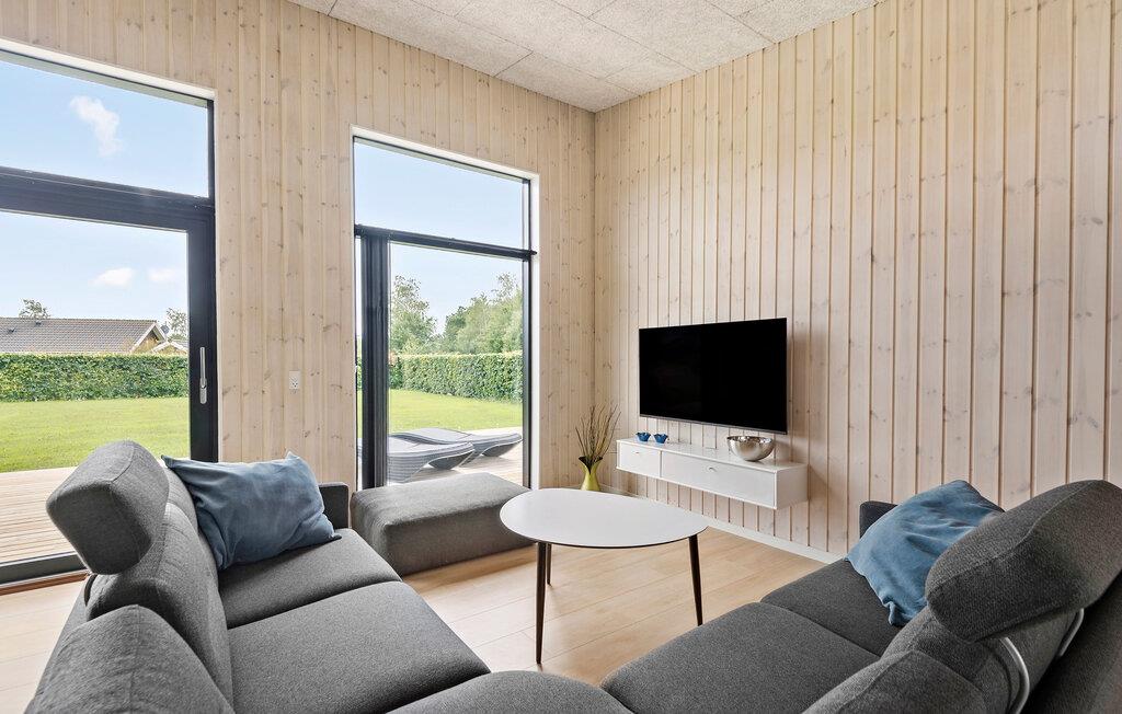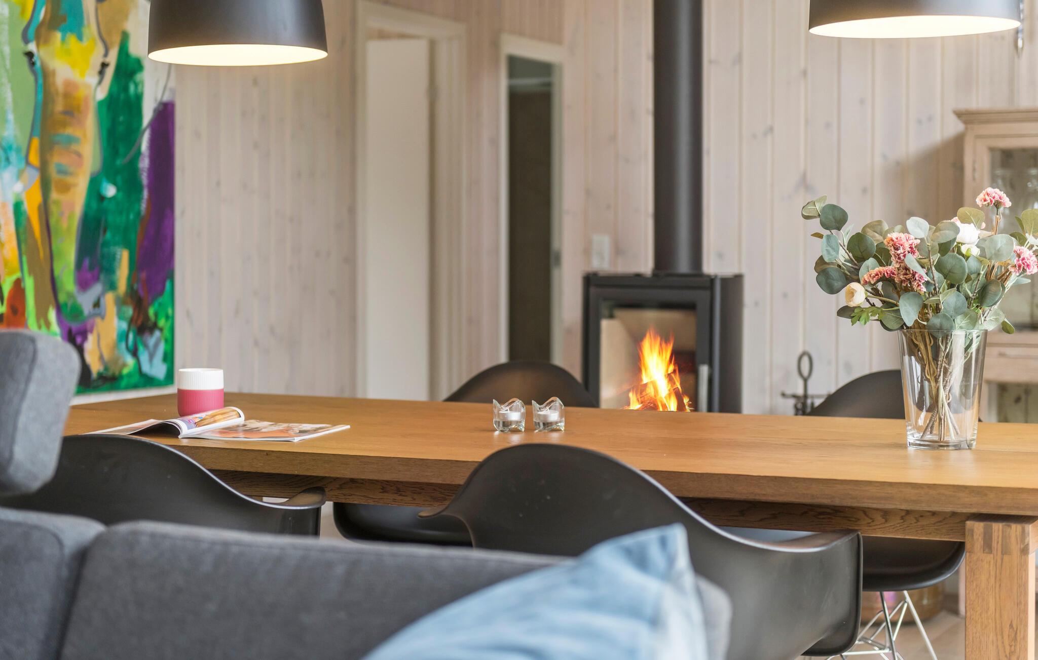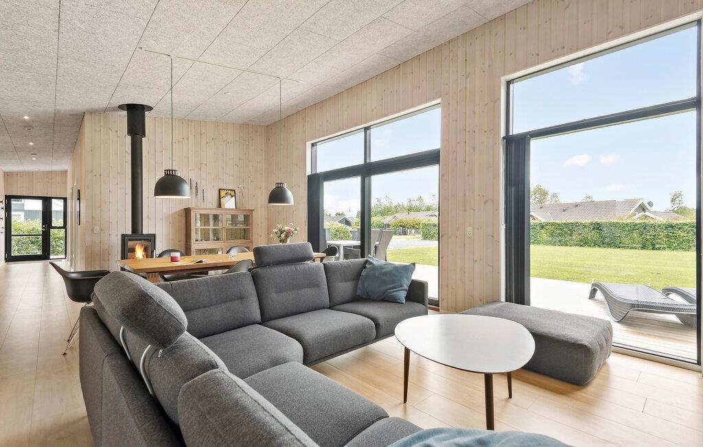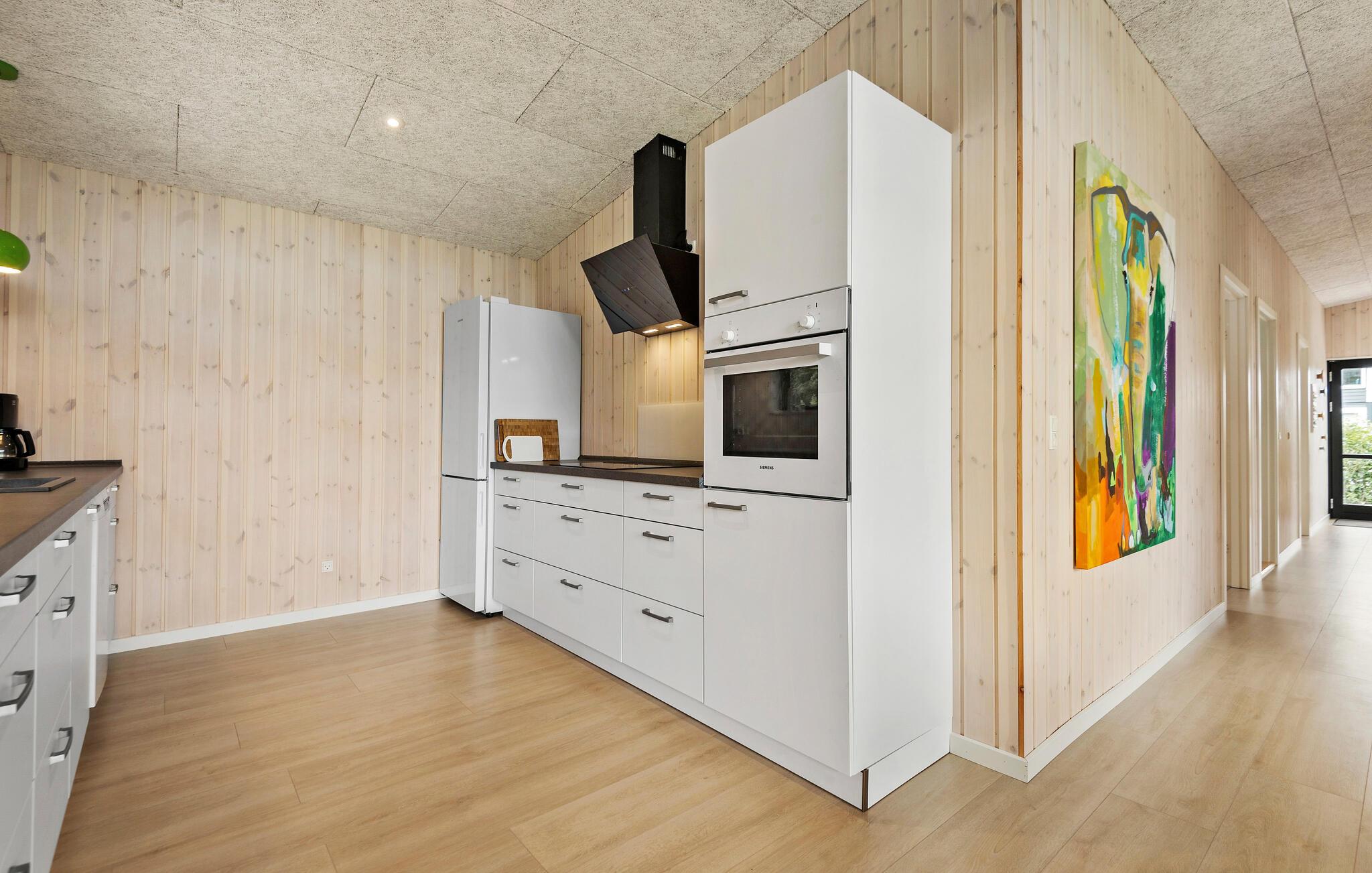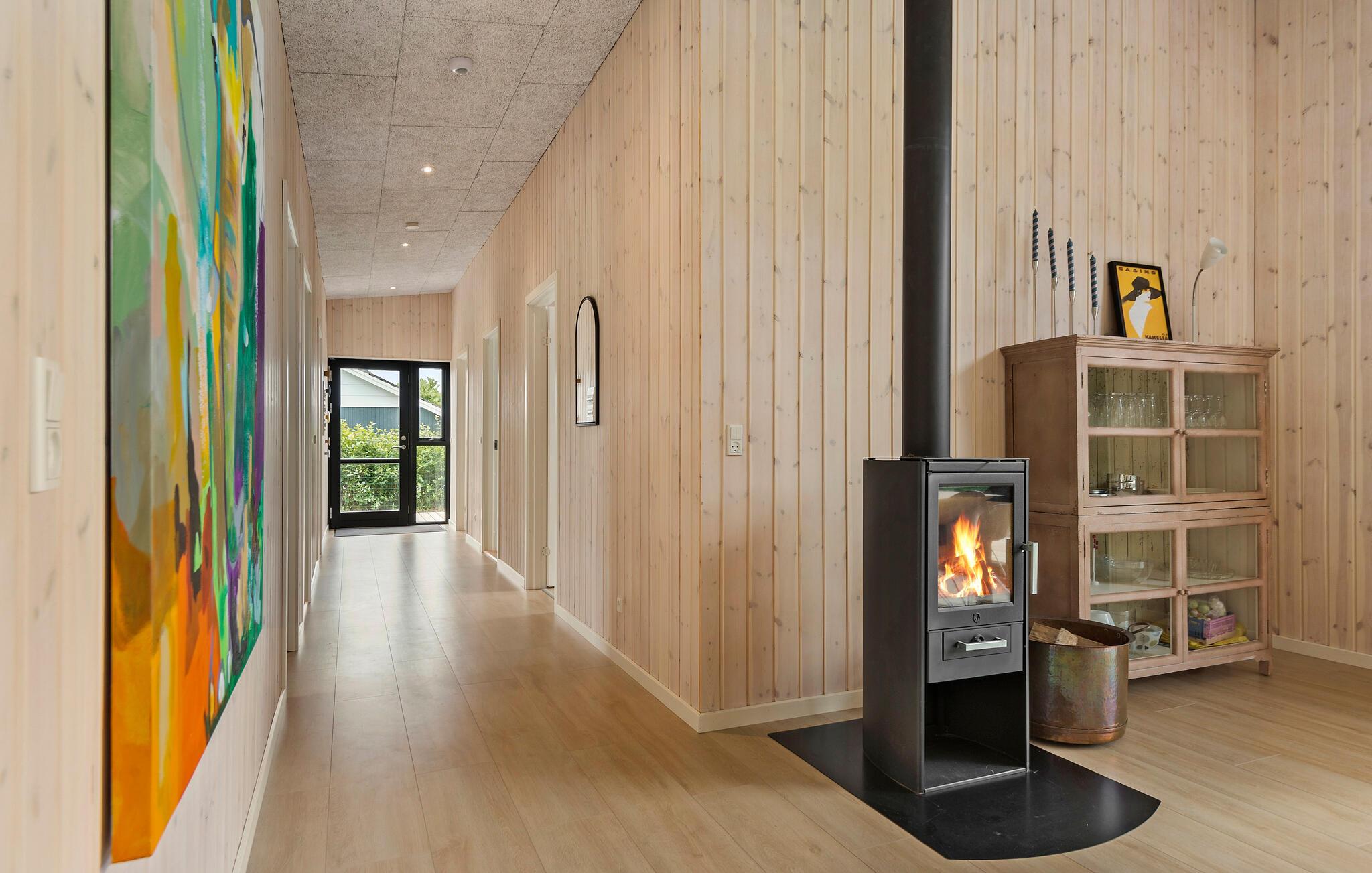 Træd ind dette smukke sommerhus, som er beklædt i lyst træ på væggene og troldtekt i loftet, som sikrer en hyggelig og rustik stemning med god akustik i det store køkken-alrum. I det moderne veludstyrede køkken kan I lave lækkert mad, som I kan nyde om spisebordet eller ude på træterrassen. De store vinduespartiver giver både et skønt lysindfald i løbet af dagen og en flot udsigt til haven. Fra stuen kan I åbne op til terrassen, hvor I kan nyde solen og lade børnene lege i haven.
