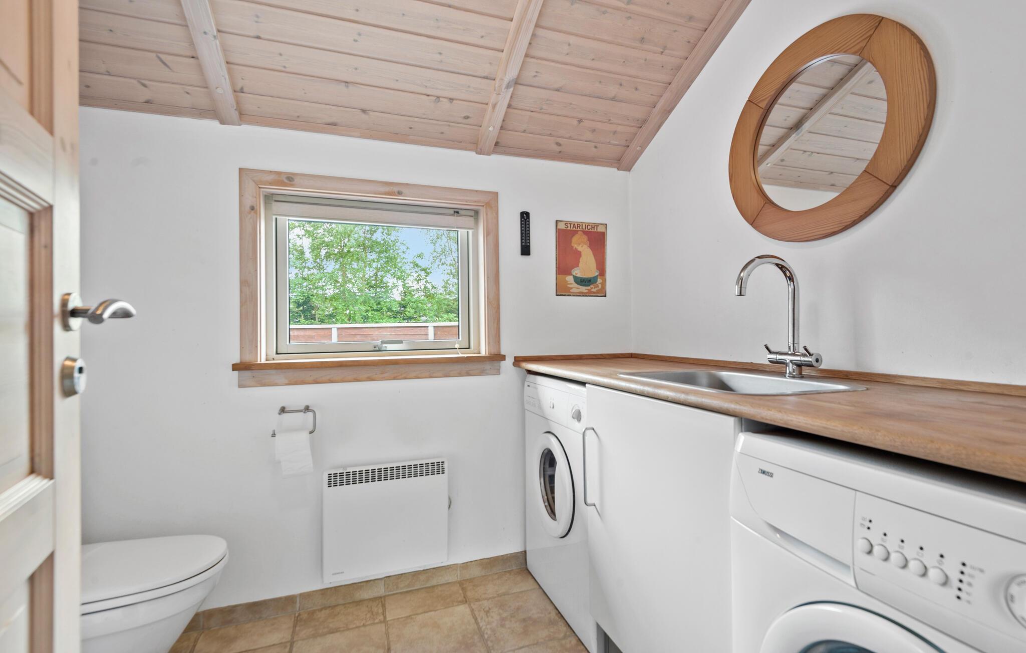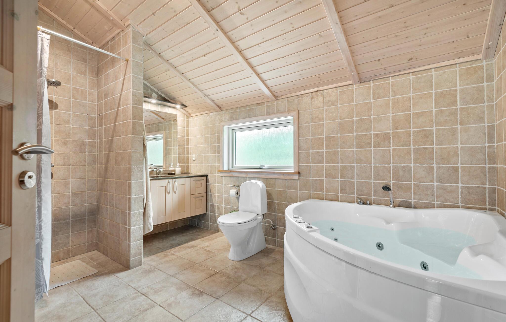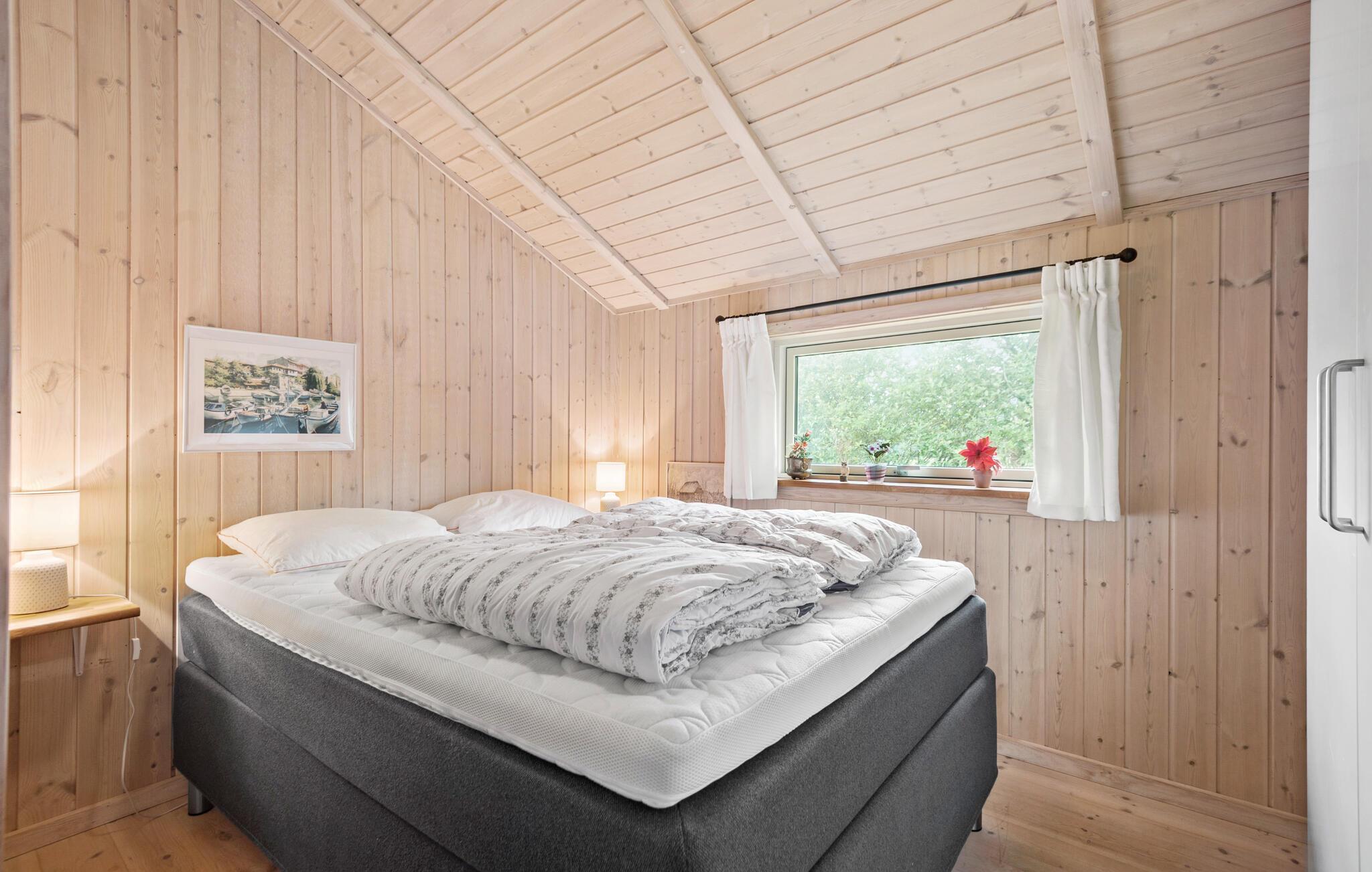 Tag familien under armen og rejs til Vestjylland, hvor I i et hyggeligt sommerhusområde ved Bork Havn finder denne velindrettede perle af et feriehus. Der er ikke langt til fjorden, og indvendigt fremtræder huset yderst flot med loft til kip, velholdte træpaneler og store vinduespartier, der giver dejlige lysindfald til stuen og en fin udsigt til haven. Skulle vestenvinden bide lige vel meget fra sig, kan I fyre op i brændeovnen og nyde dens varme knitren til madlavningen i det veludstyrede køkken og aftenhyggen i sofaområdet. Og måske I skal forkæle jer selv med lidt aften-wellness i saunaen eller spabadet?