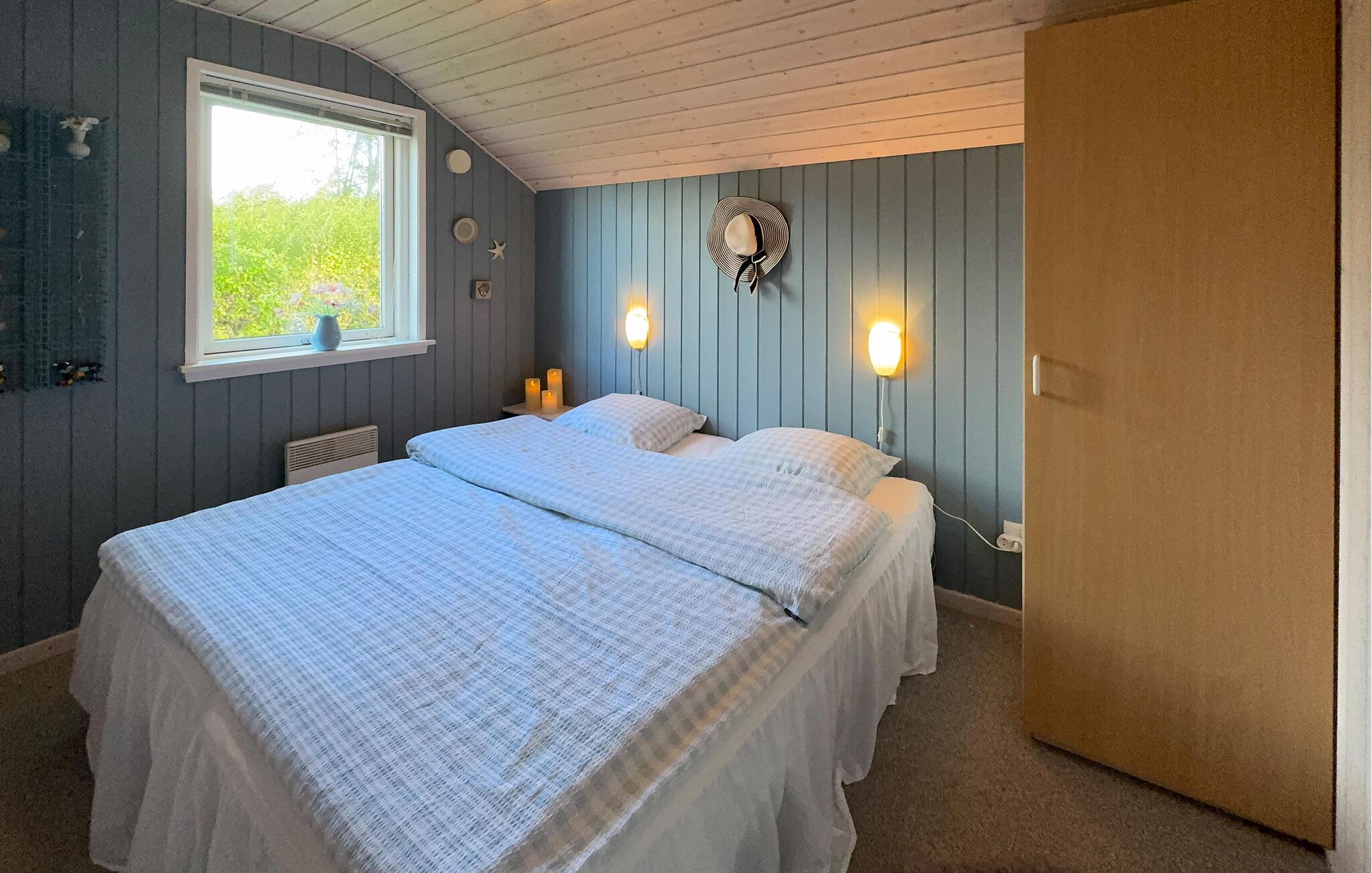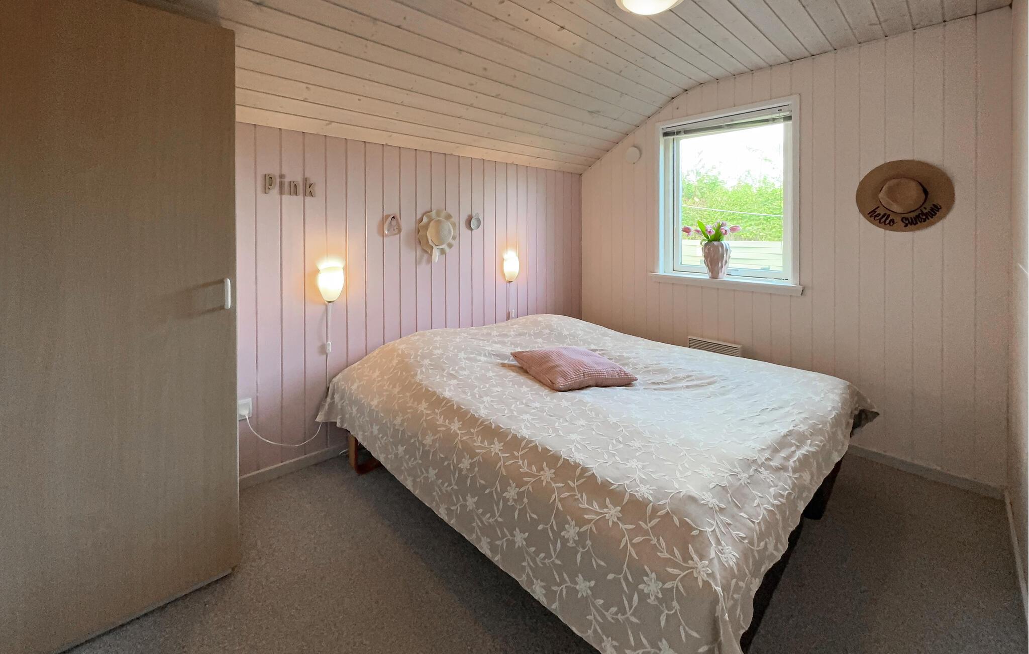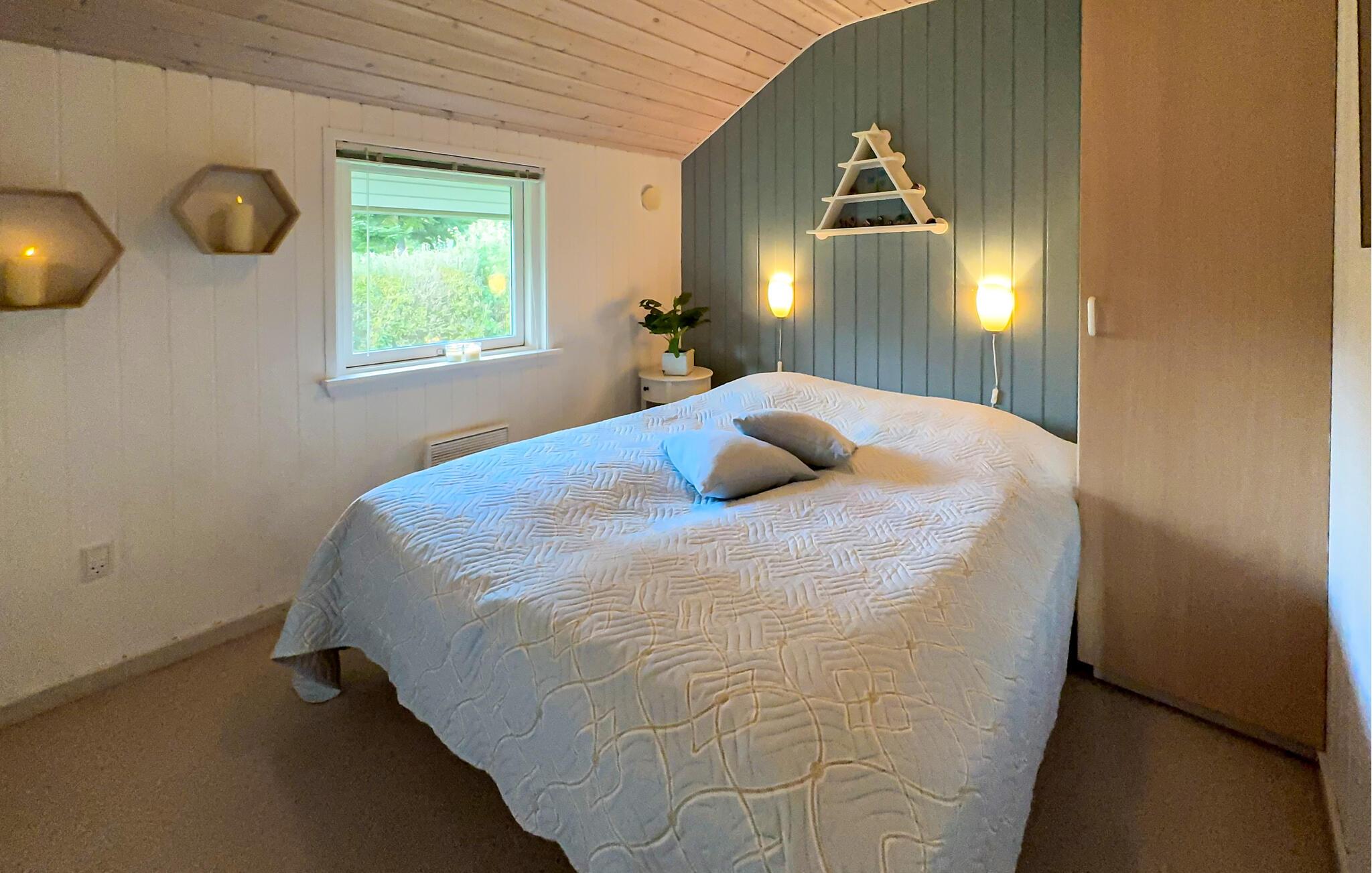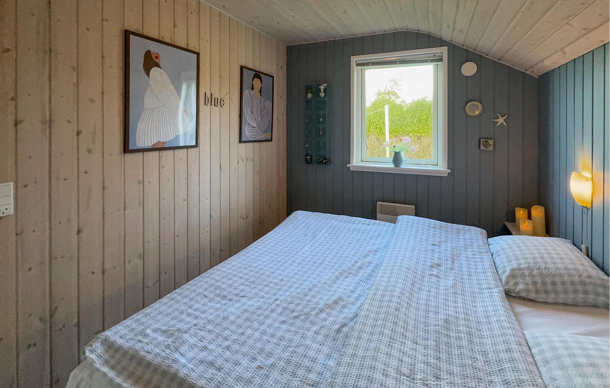 Både indenfor og udenfor er der rigtig skruet op for hyggen i dette lyst indrettede feriehus, hvor der også er leget med farverne, så det emmer af sommerhusstemning. Feriehuset ligger skønt placeret for enden af en stille lukket vej. Så snart I træder ind, vil I mærke den meget personlige og hyggelige atmosfære, der vil gøre jeres ophold til noget ganske særligt. Nyd varmen fra brændeovnen på de kolde aftener, mens børnene spiller spil, eller der kokkereres i køkkenet.