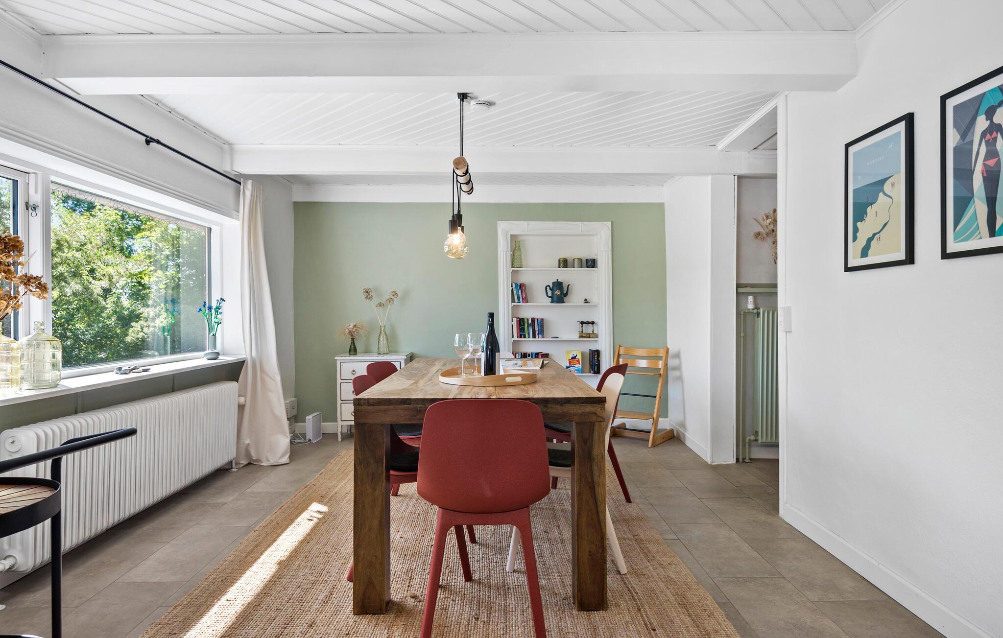 Velkommen til dette komfortable hus, hvorfra I har fjorden og havet på kort afstand. Find jer godt til rette i de smagfulde rum efter dagens udflugter. Den brede sofa lægger op til at slappe af efter en begivenhedsrig dag. Skab en hyggelig atmosfære med ild i brændeovnen og nyd den smukke udsigt over naturen fra stuen.