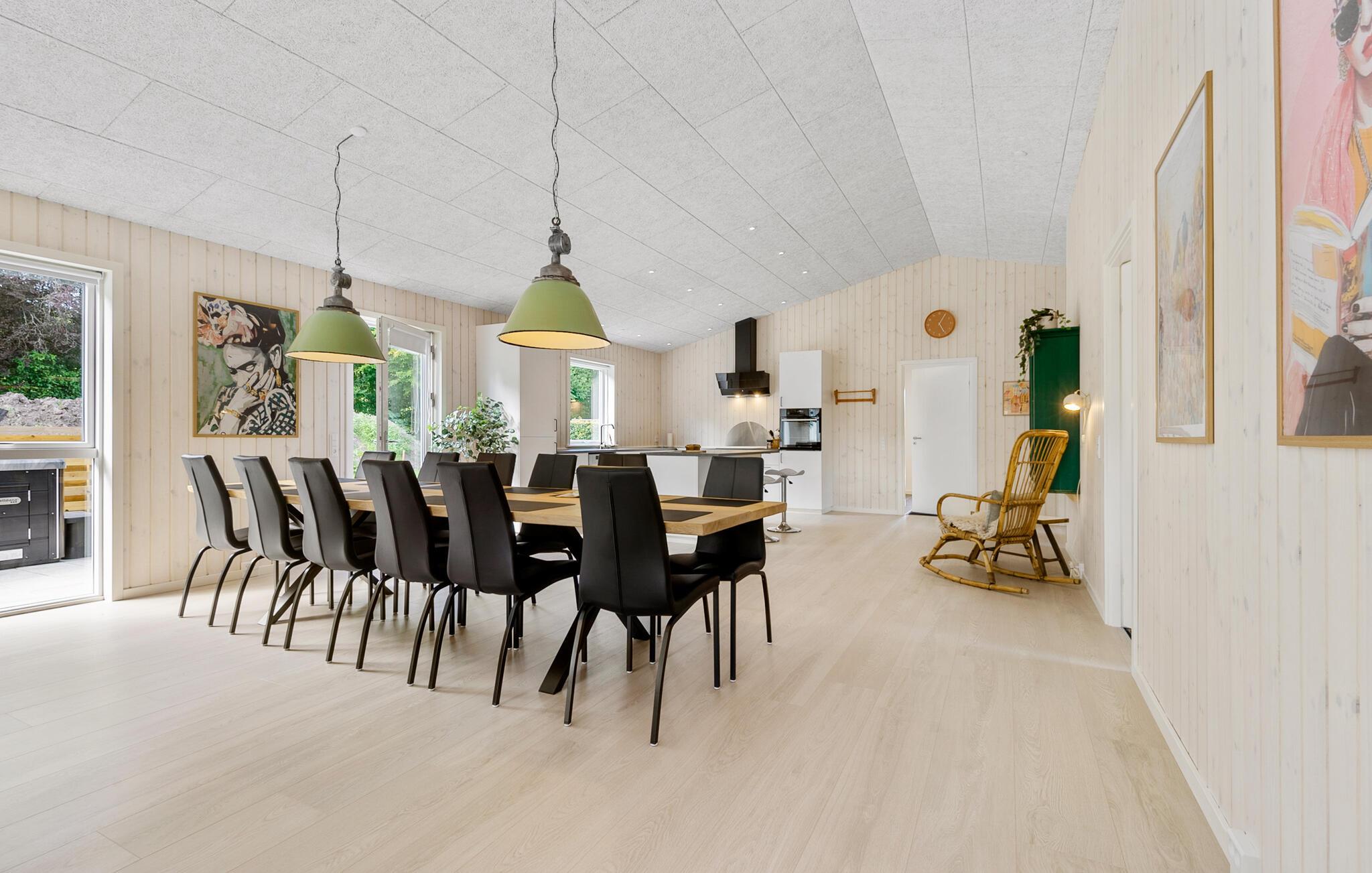 Dette lyse og komfortable feriedomicil byder jer velkommen med masser af plads til fælles leg, måltider og afslapning. Server lækre middage til alle medrejsende, hold hyggelige madlavningsaftener, mens andre hygger sig med airhockey eller dart, og se en spændende film om aftenen i den hyggelige sofagruppe.