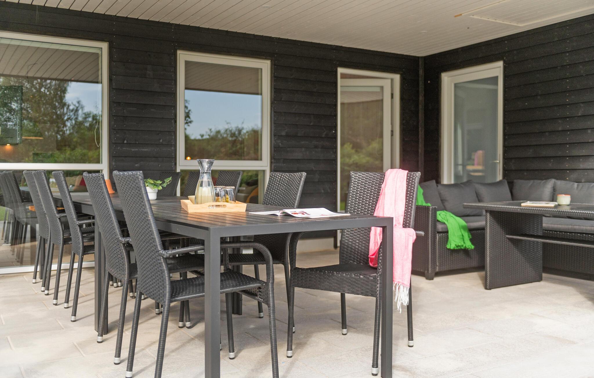 Rummeligt feriehus i Hemmet med spabad, aktivitetsrum og indhegnet have for afslapning og leg.
