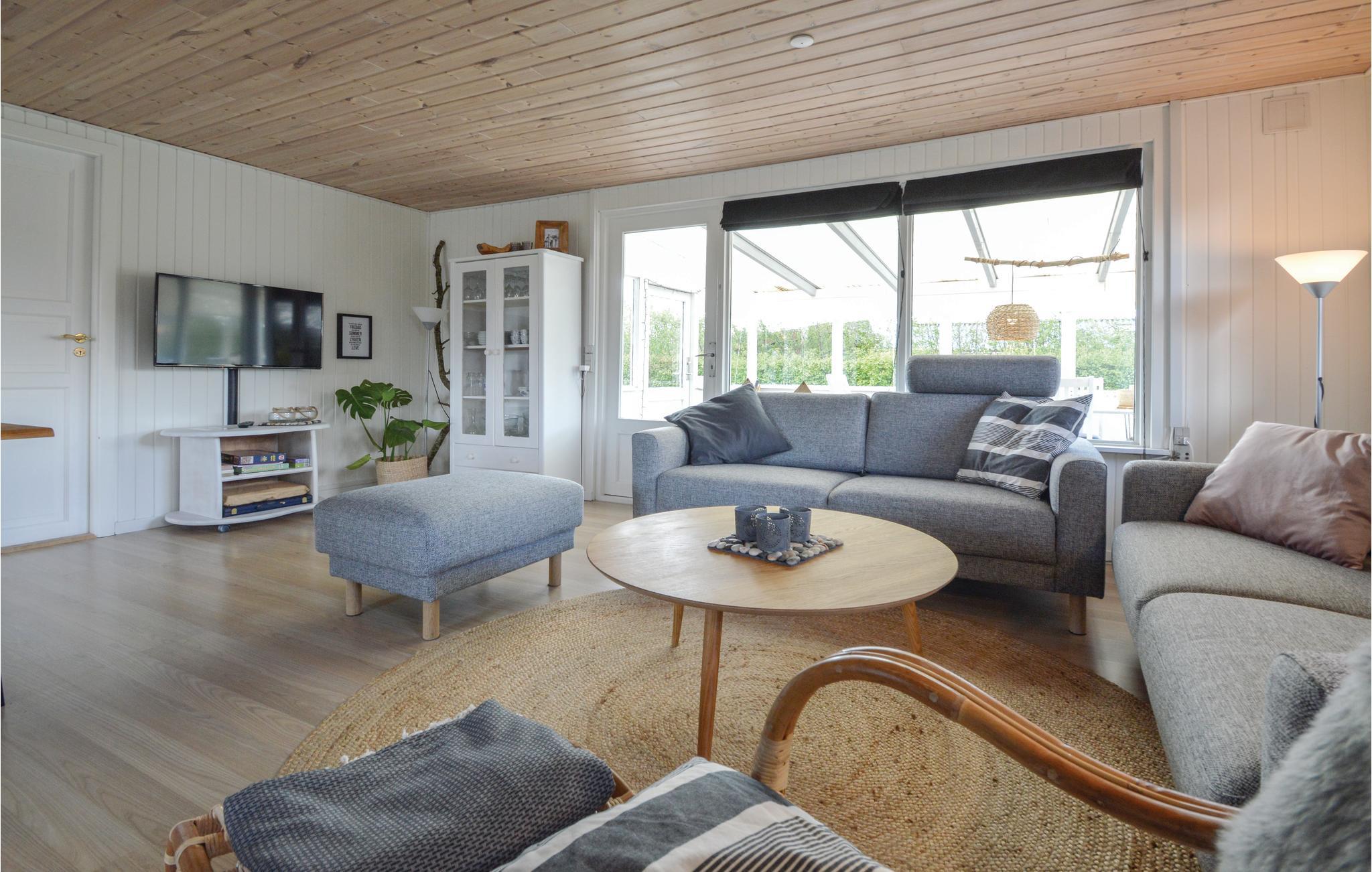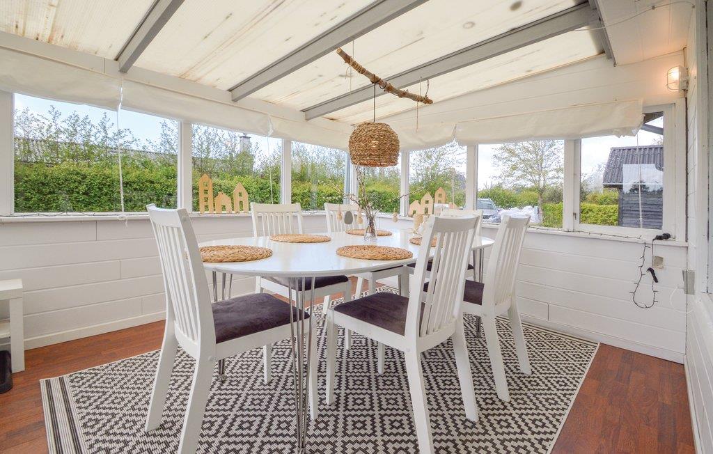 Hyggeligt sommerhus med brændeovn, havestue og bålplads tæt på børnevenlig strand i Bork Havn.